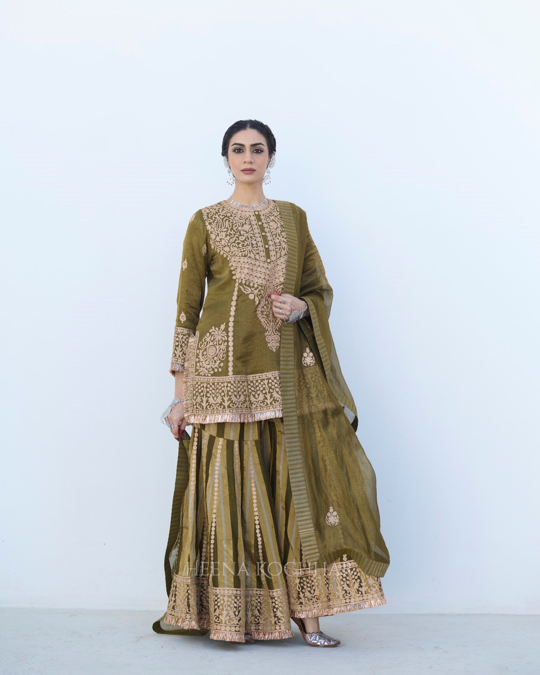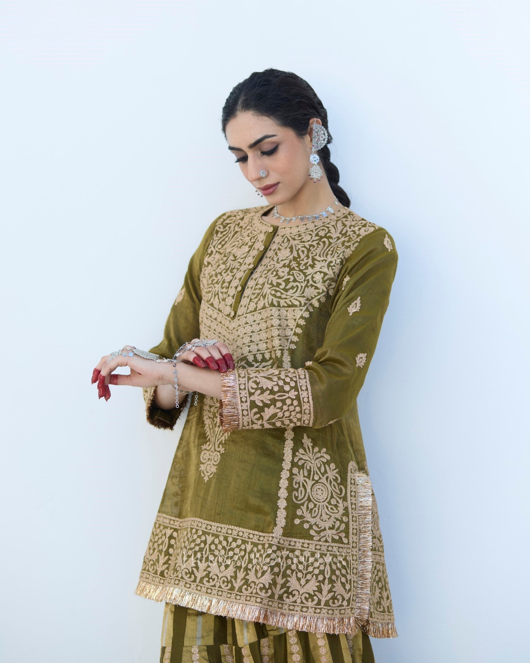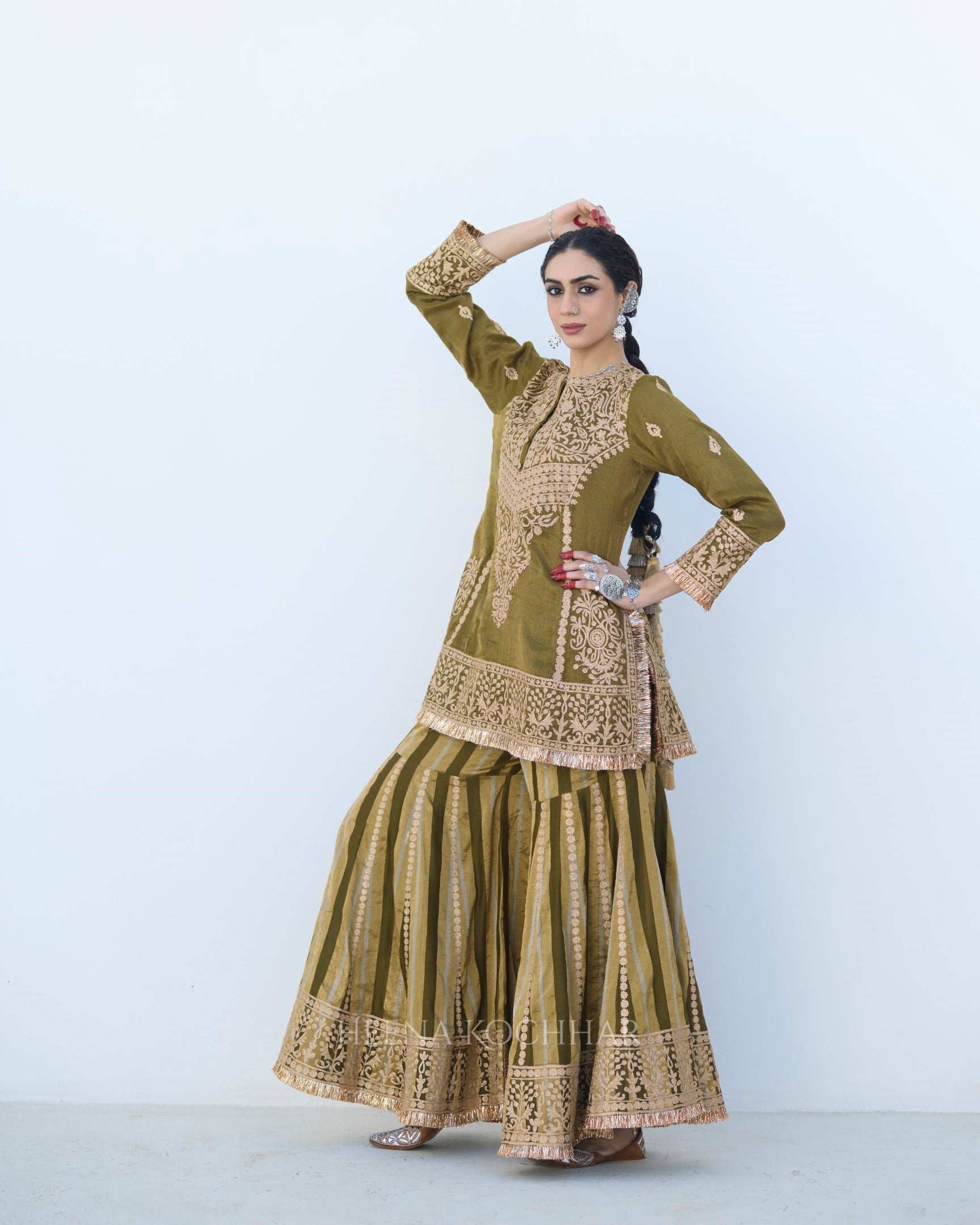 BOTTOM- OLIVE GREEN STRIPE TISSUE GARARA