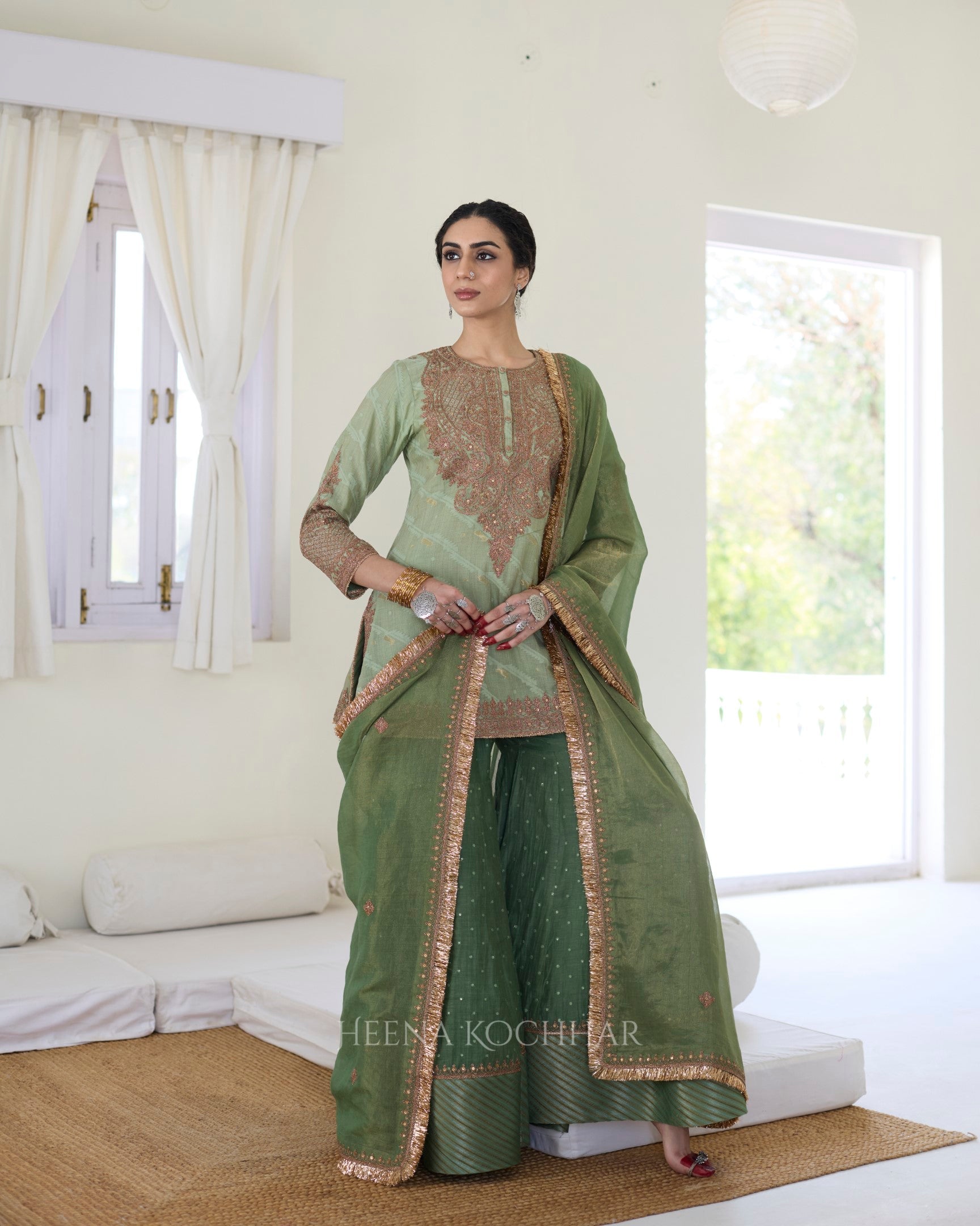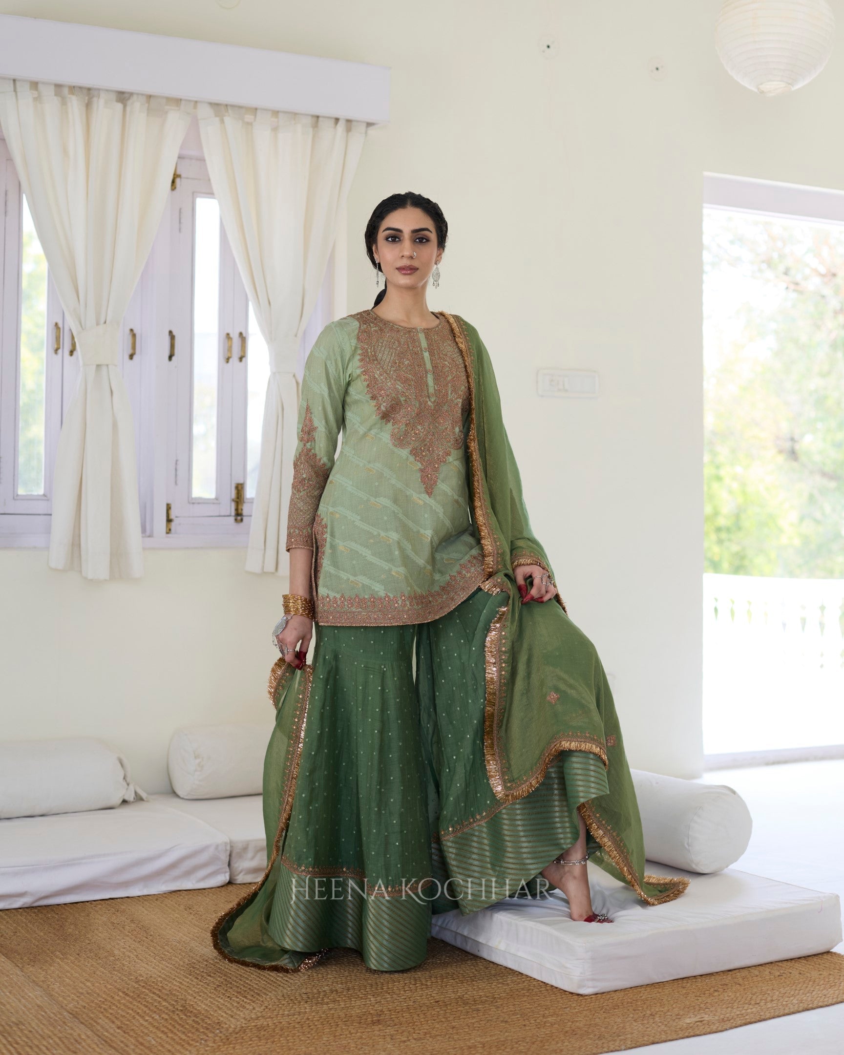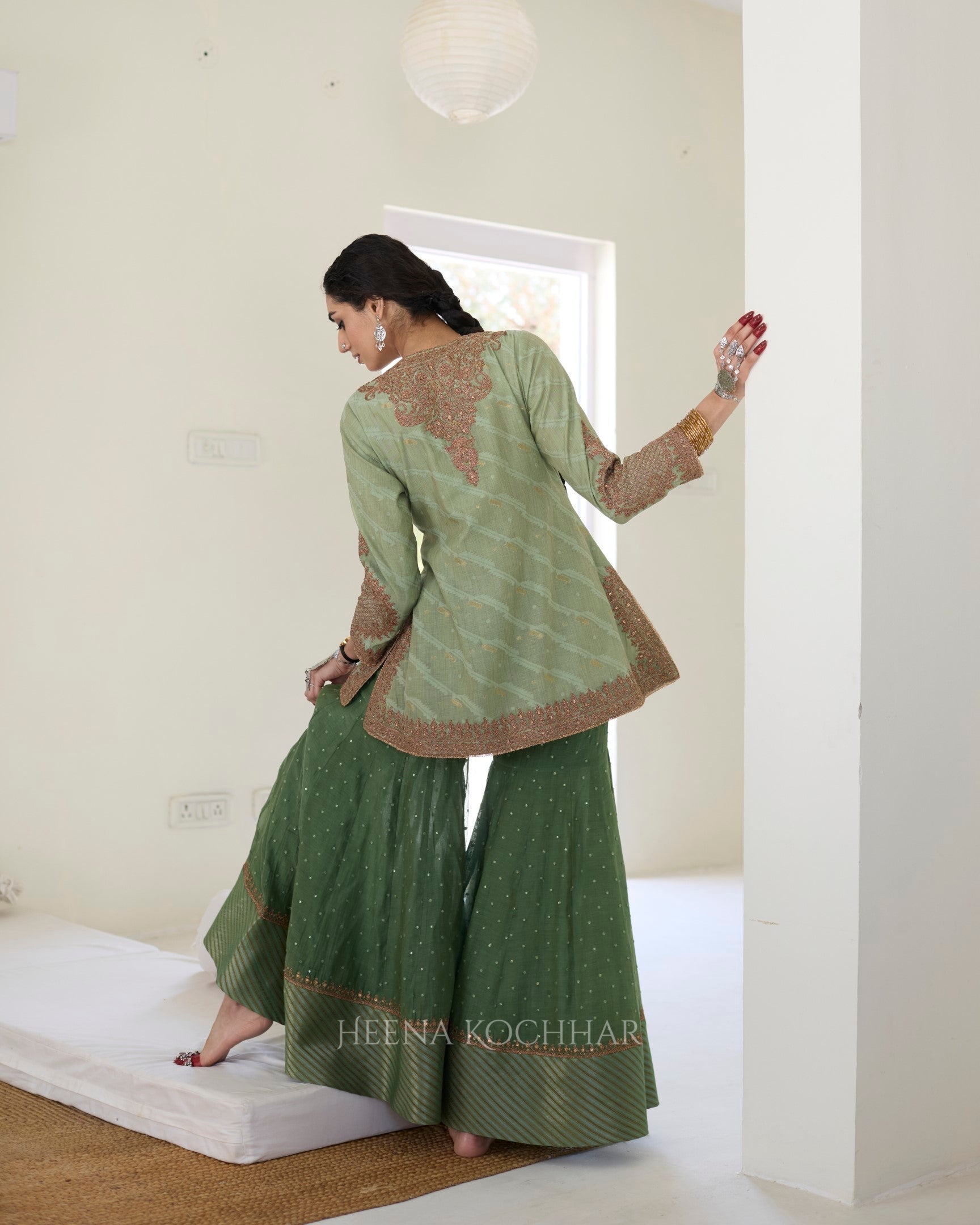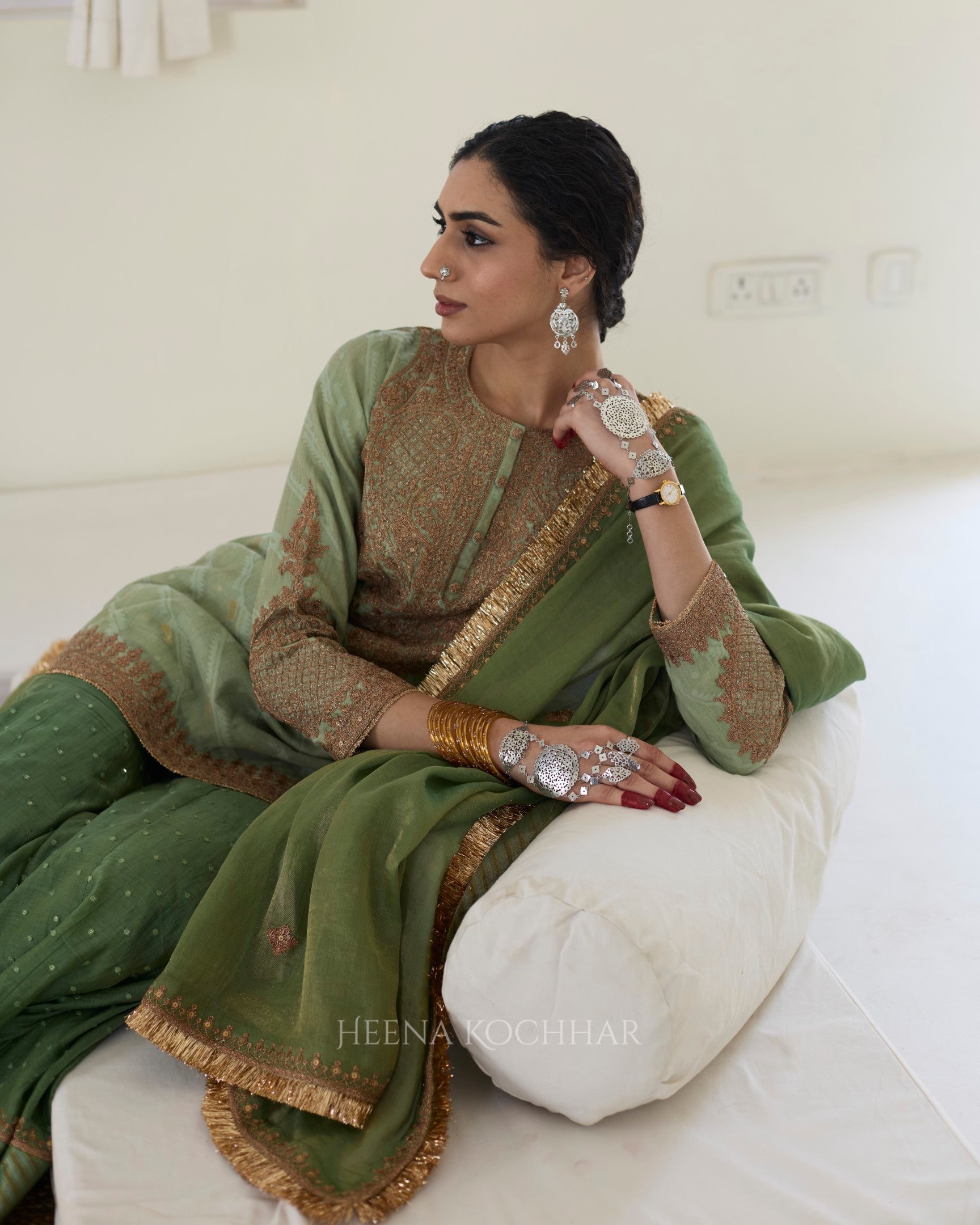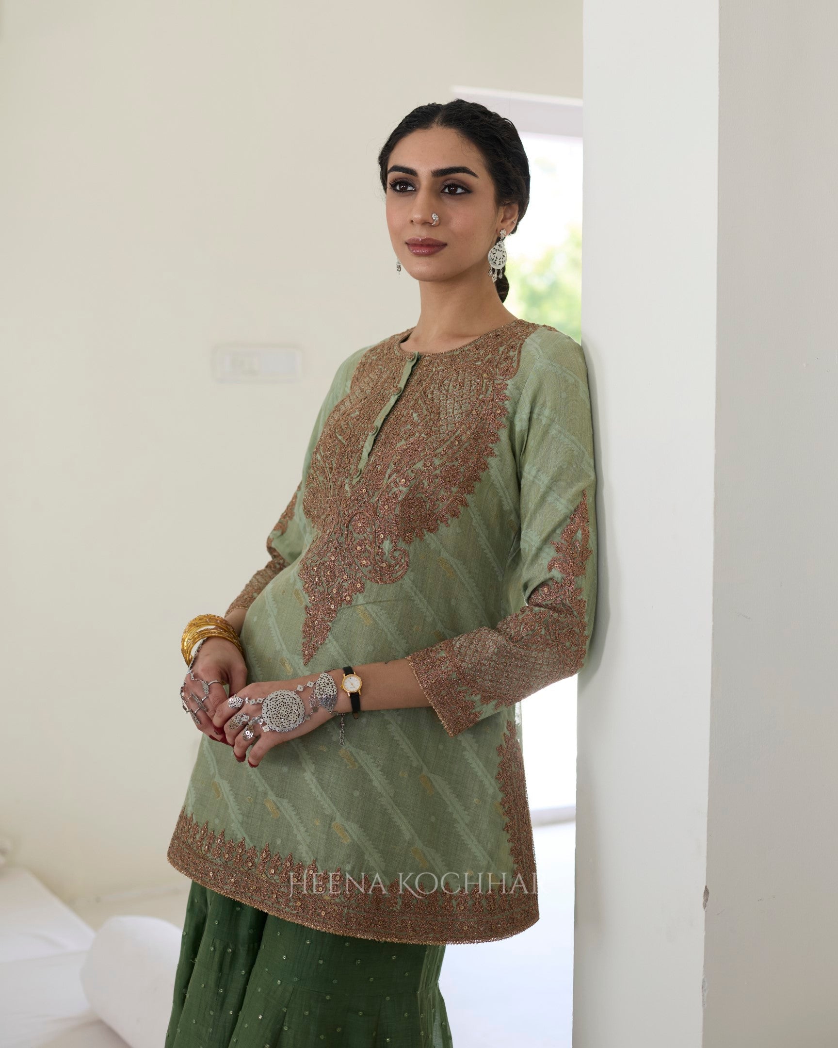KURTA- LIGHT GREEN JAMDANI CHANDERI KURTA