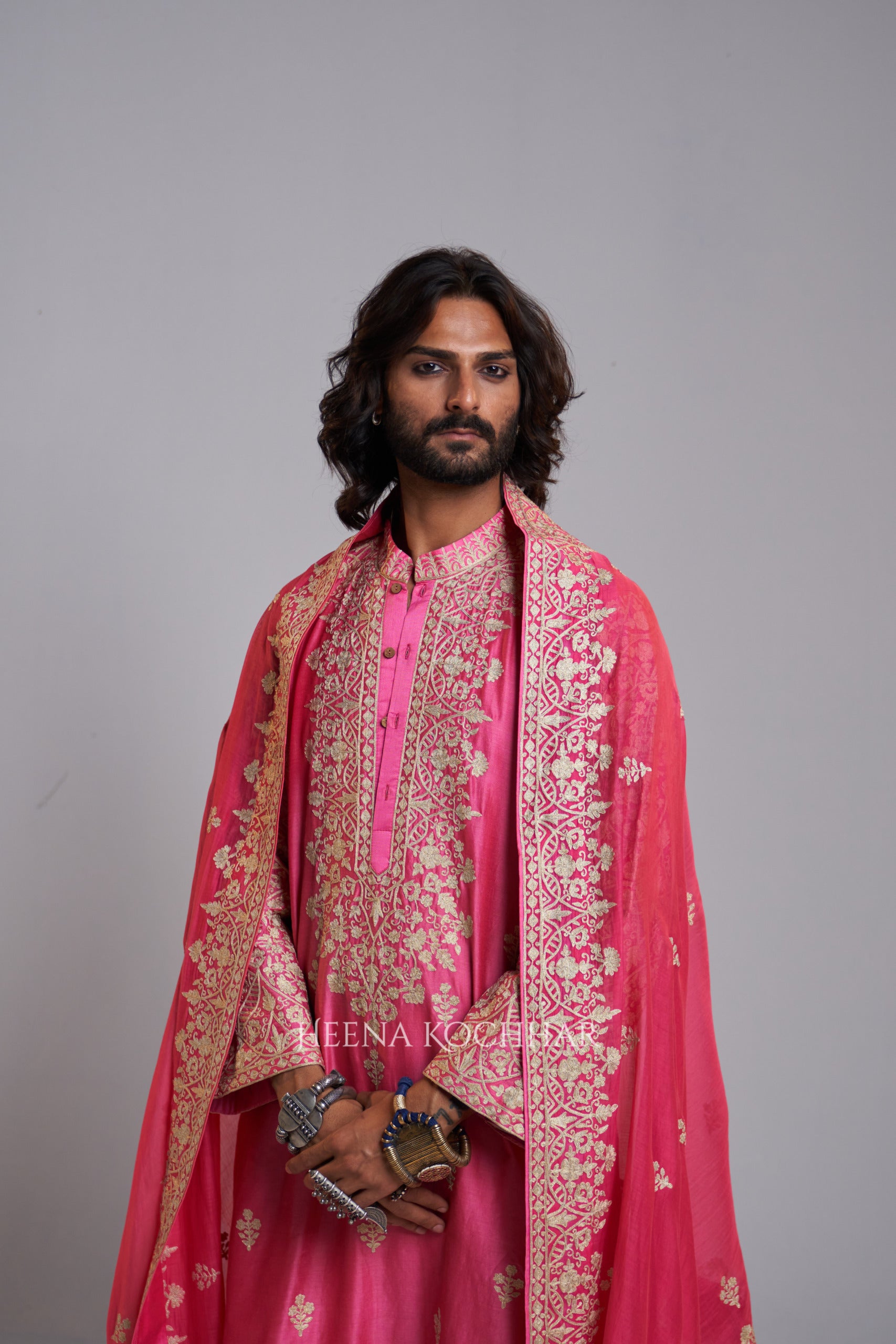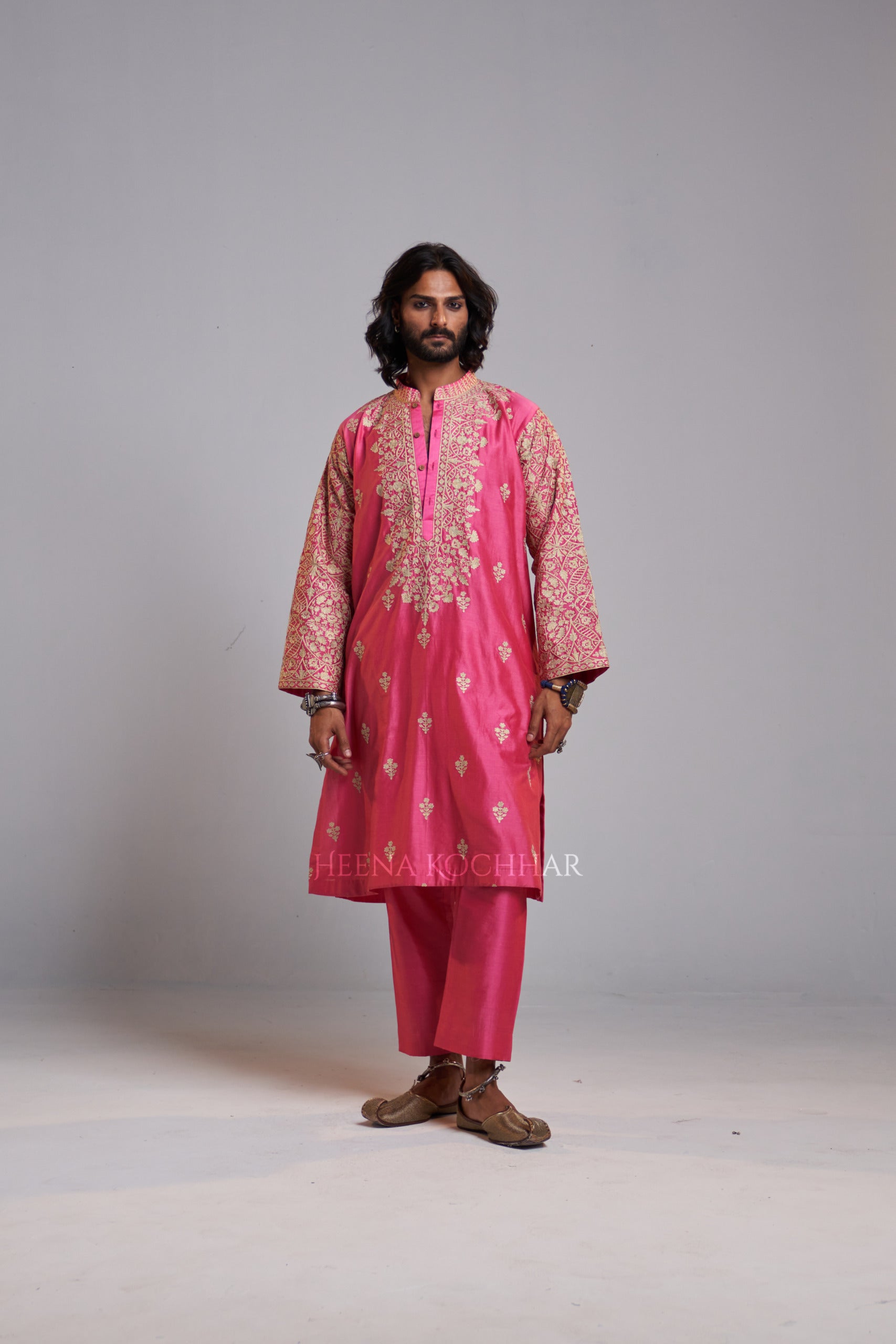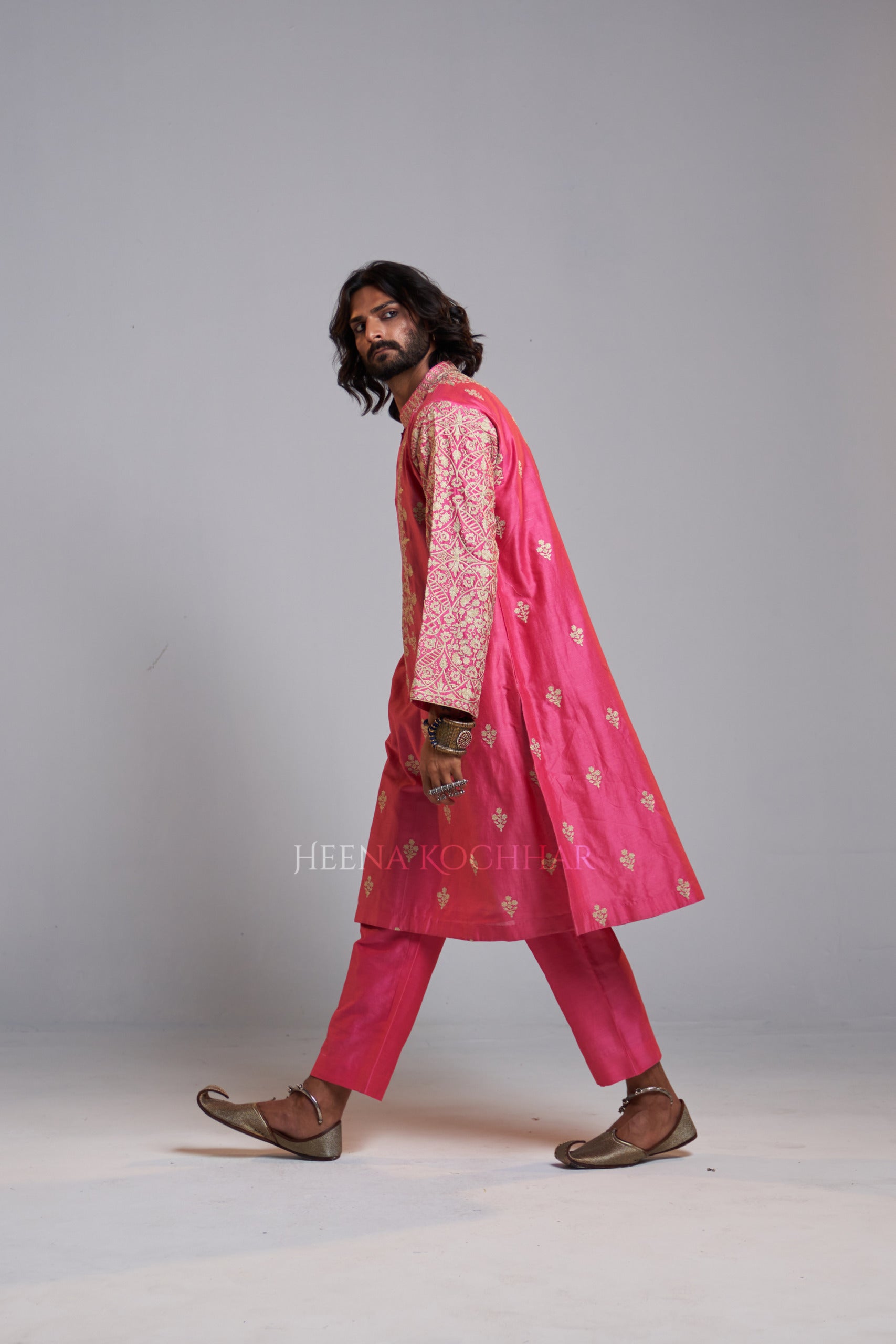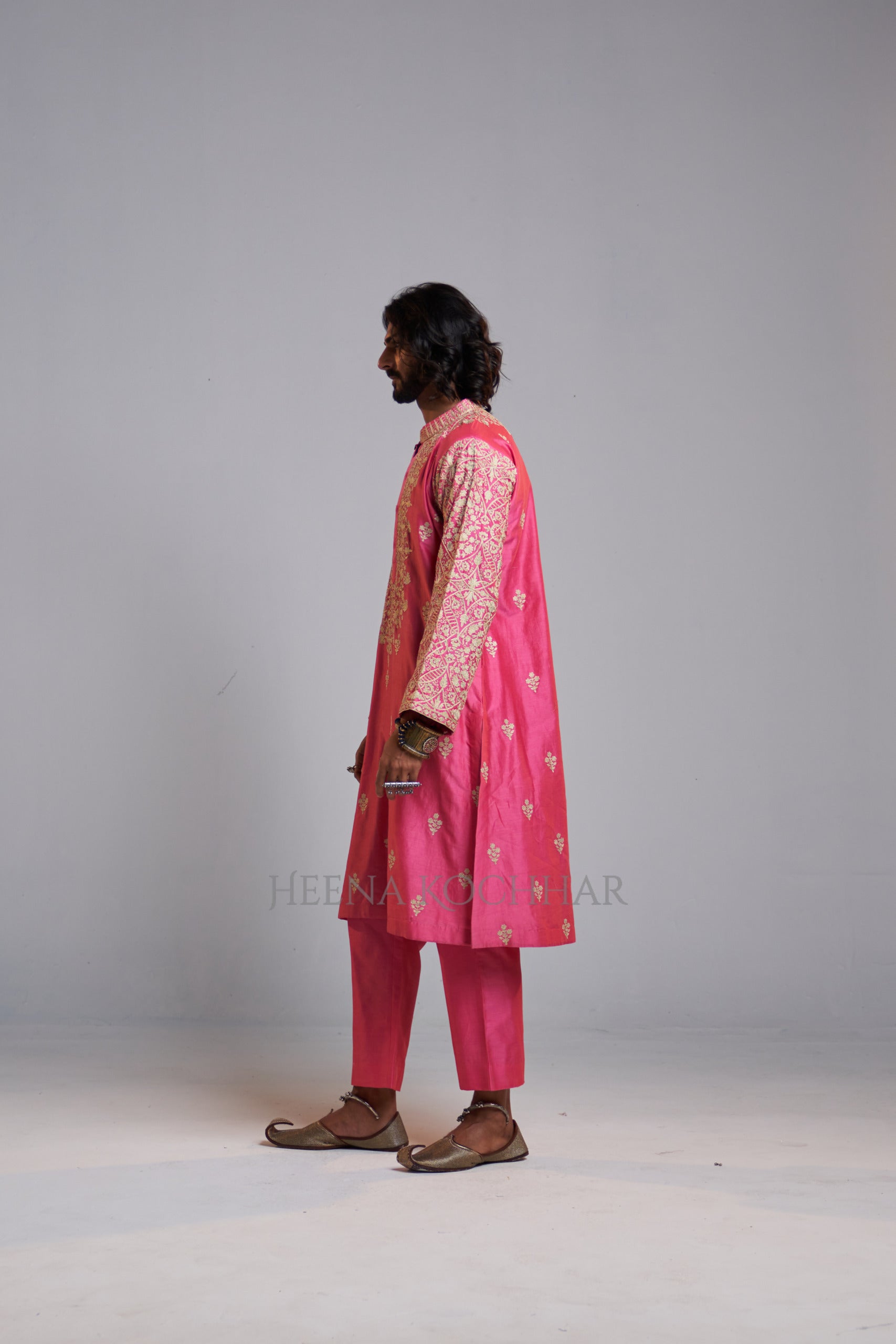 KURTA: Pink Chanderi Choga Kurta