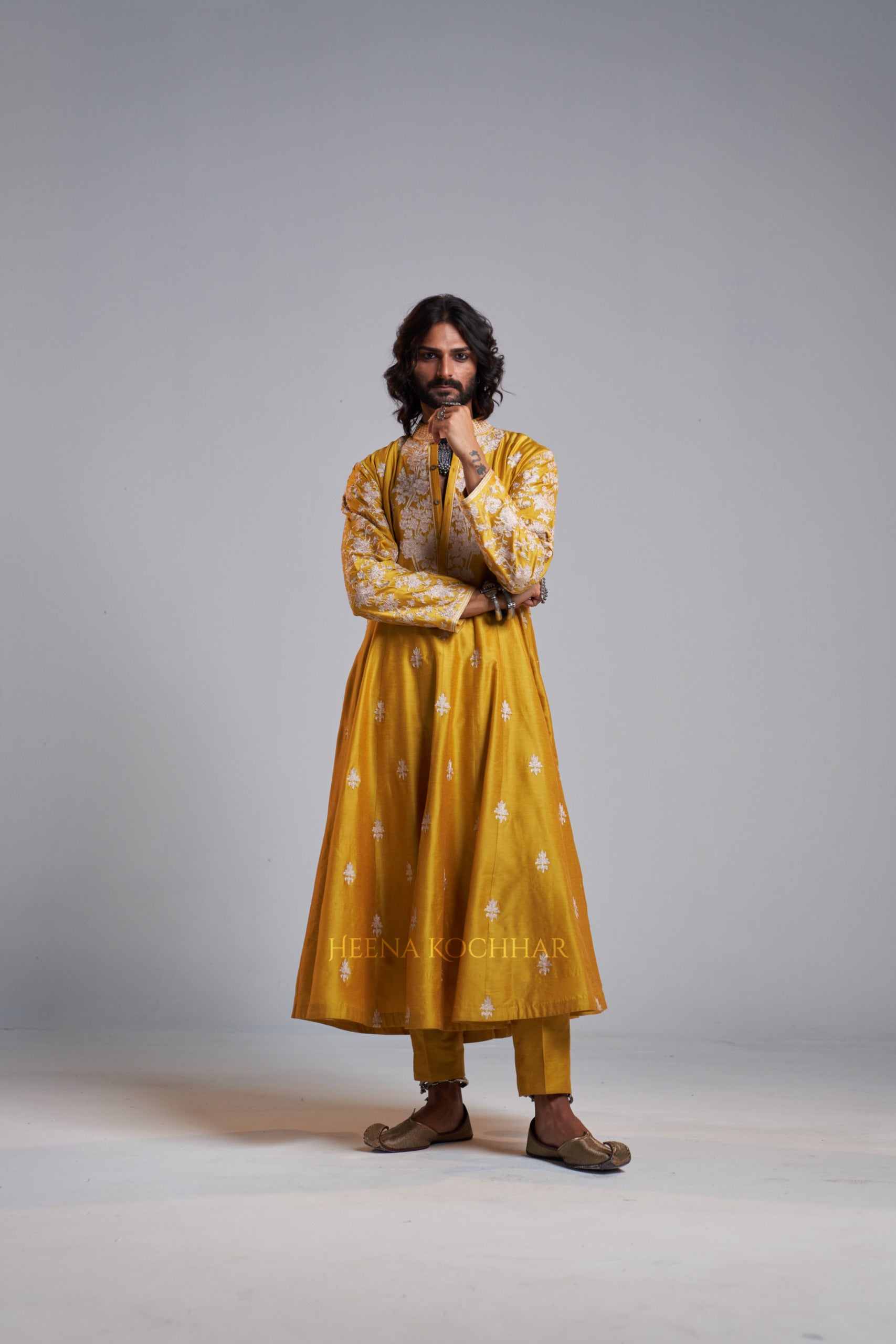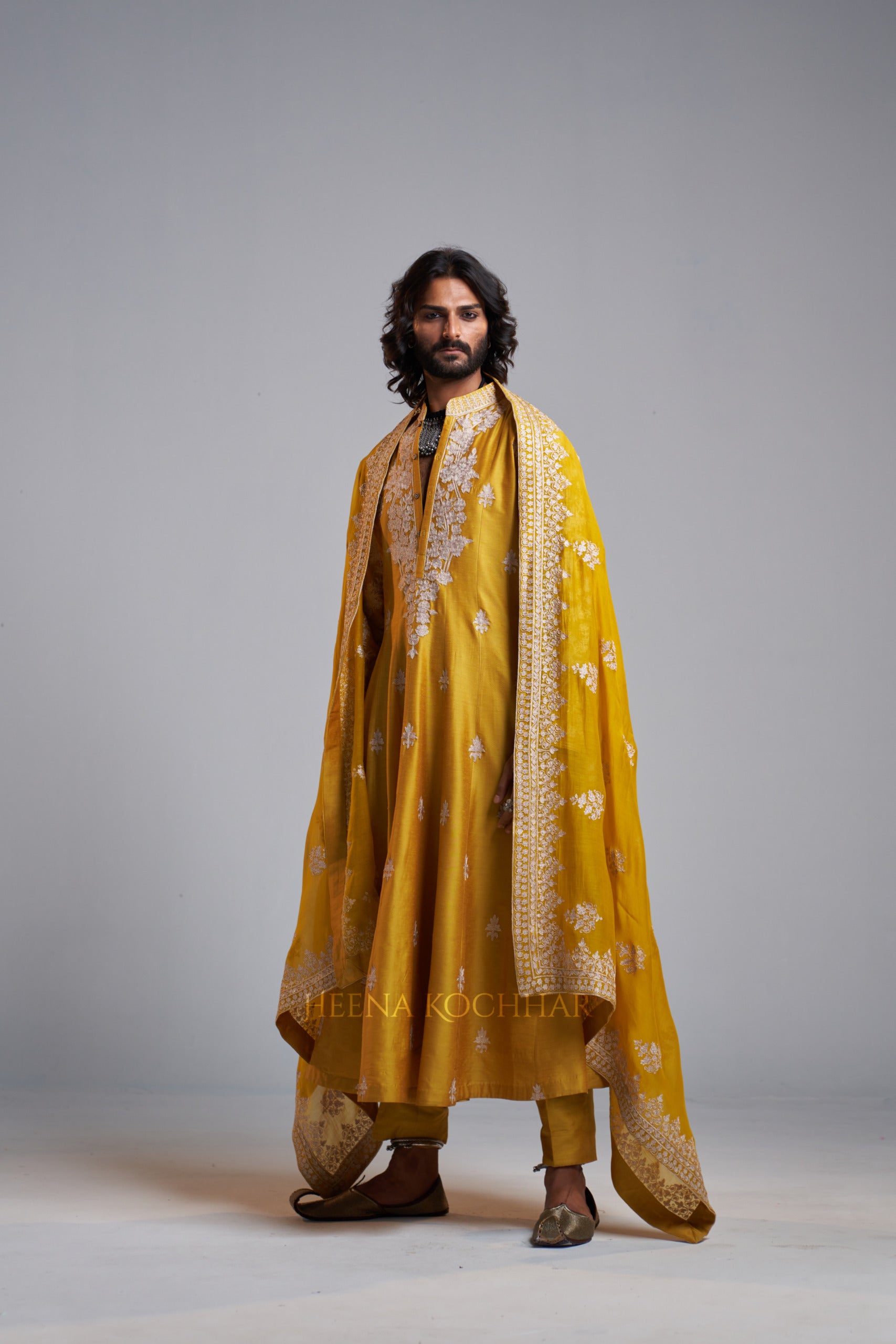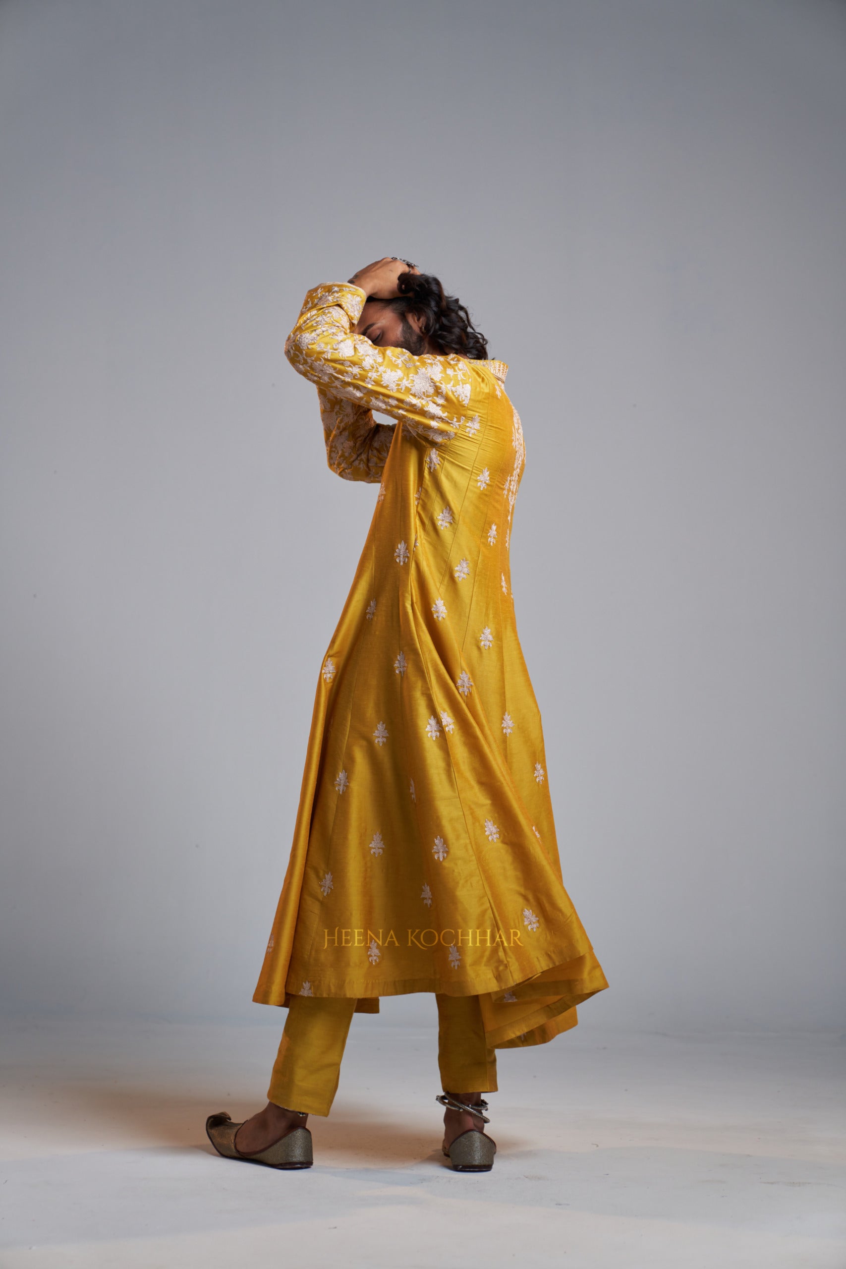 KURTA: Yellow Chanderi Kali Kurta