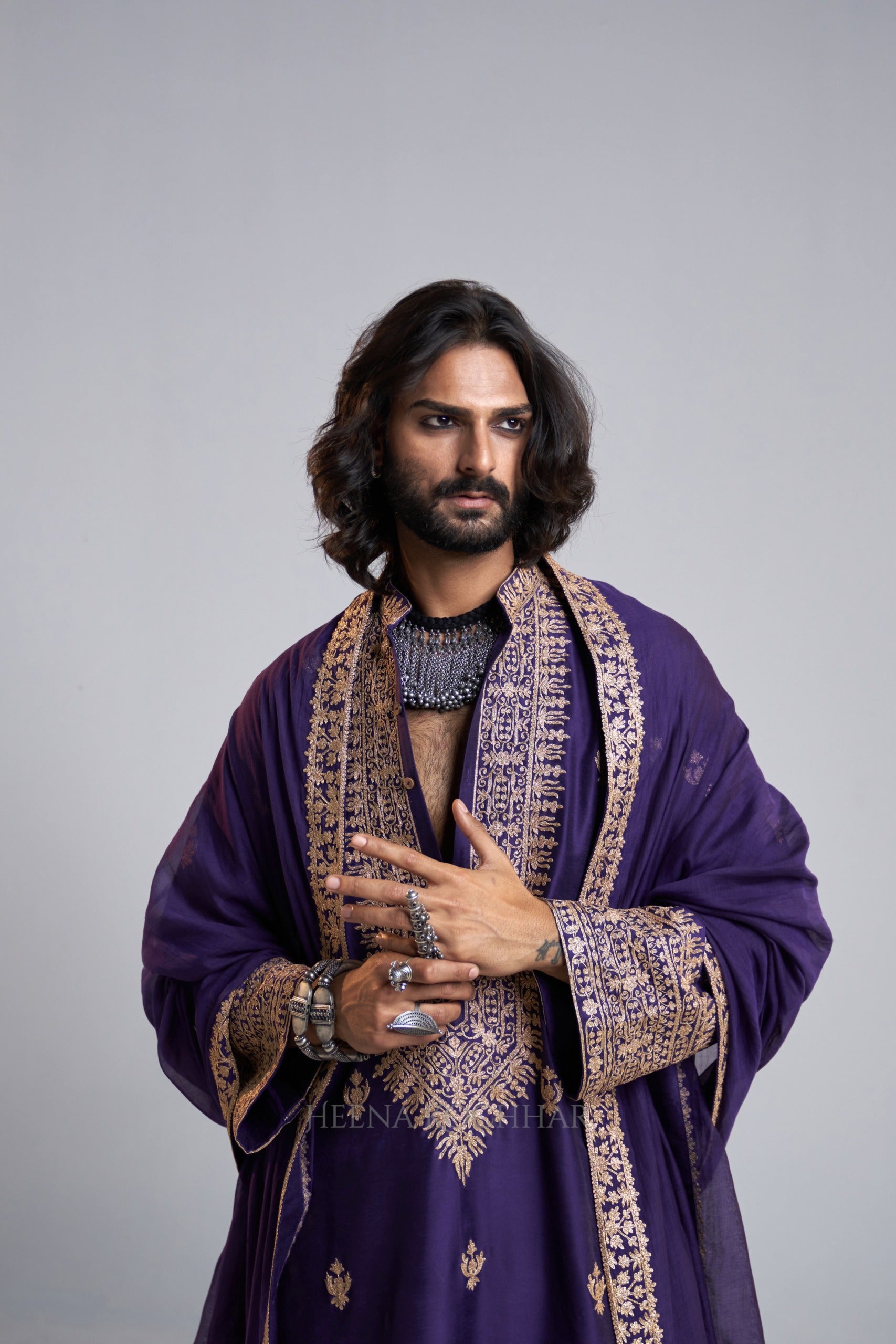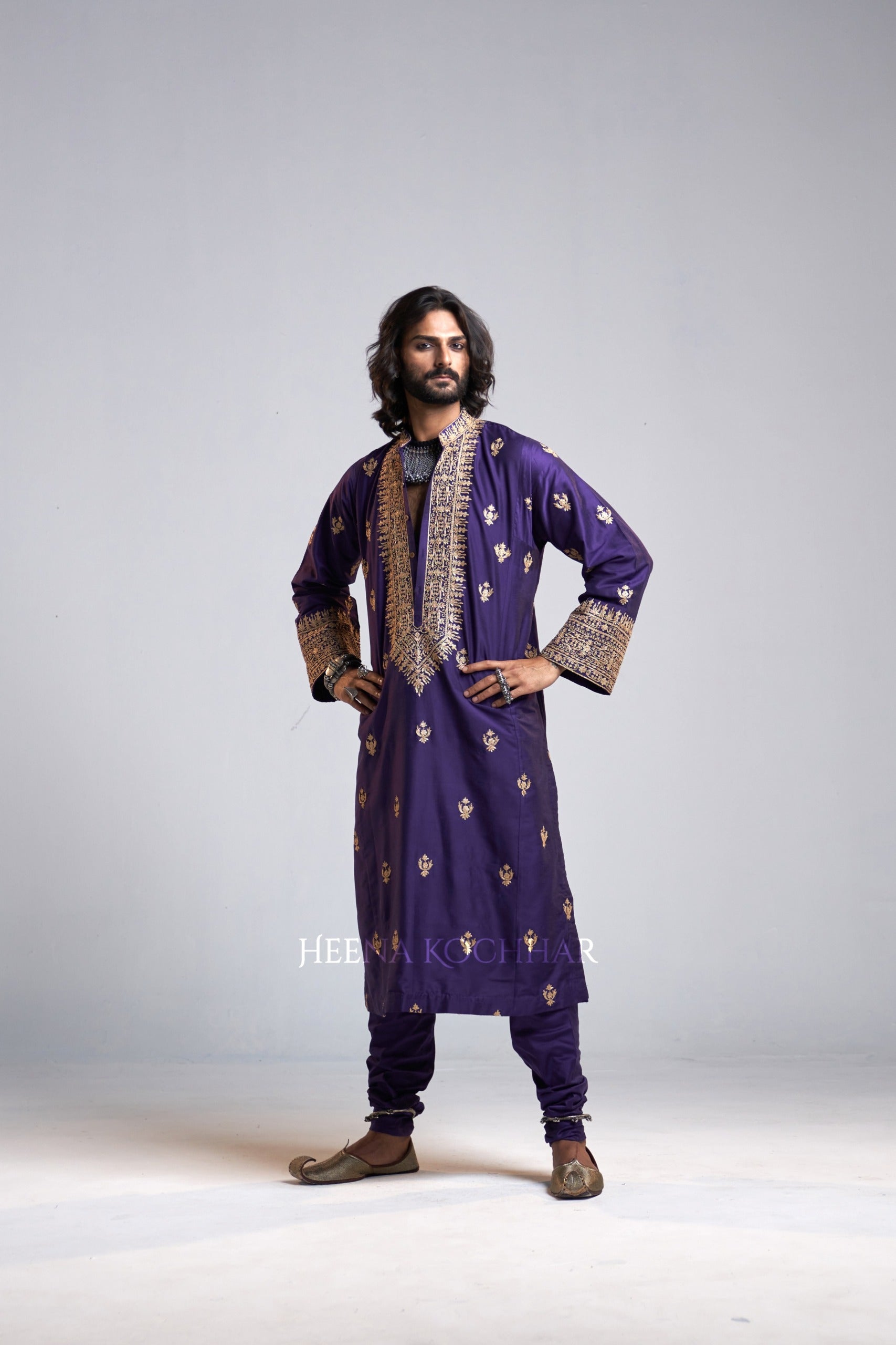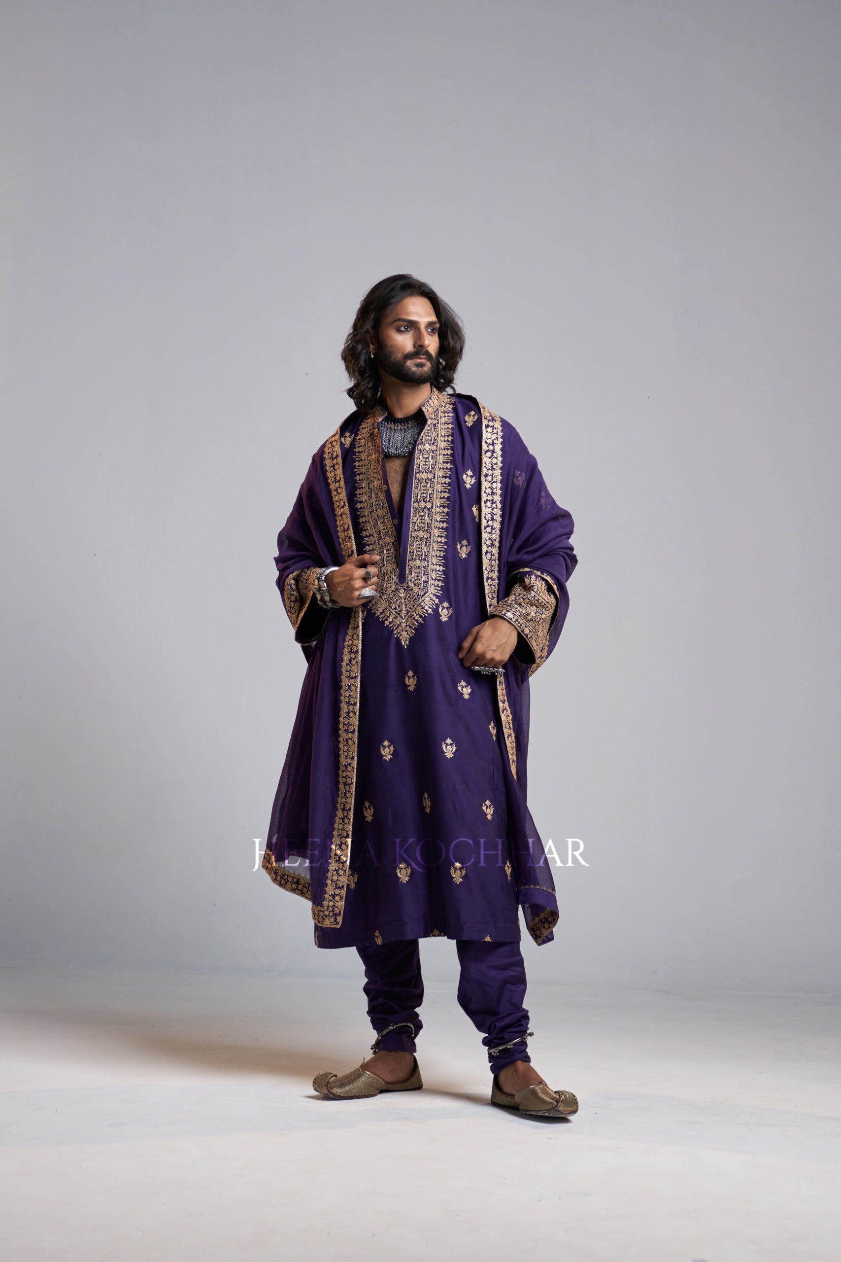 KURTA: Purple Kataan Choga Kurta