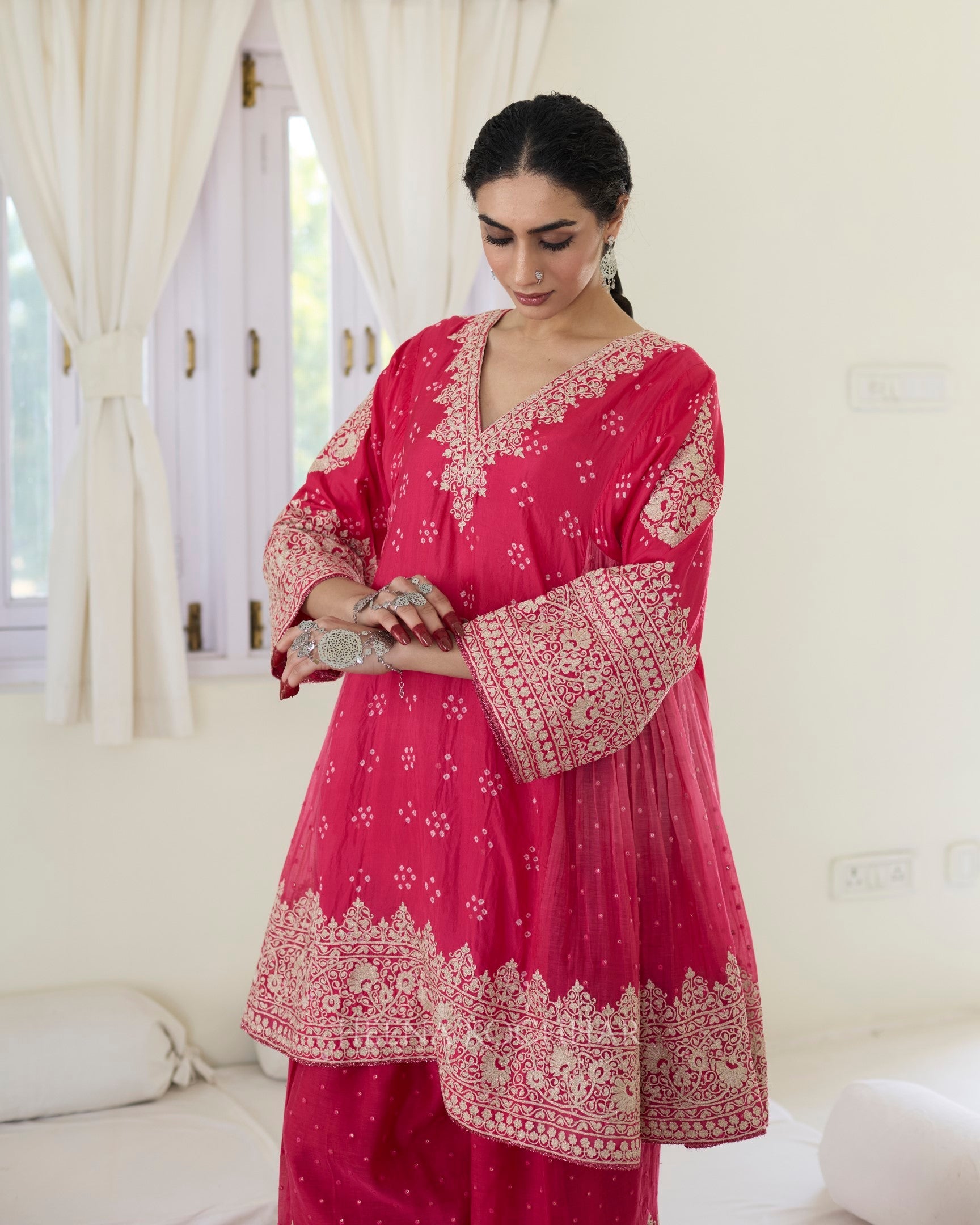 KURTA- PINK SILK BANDHANI CHOGA
