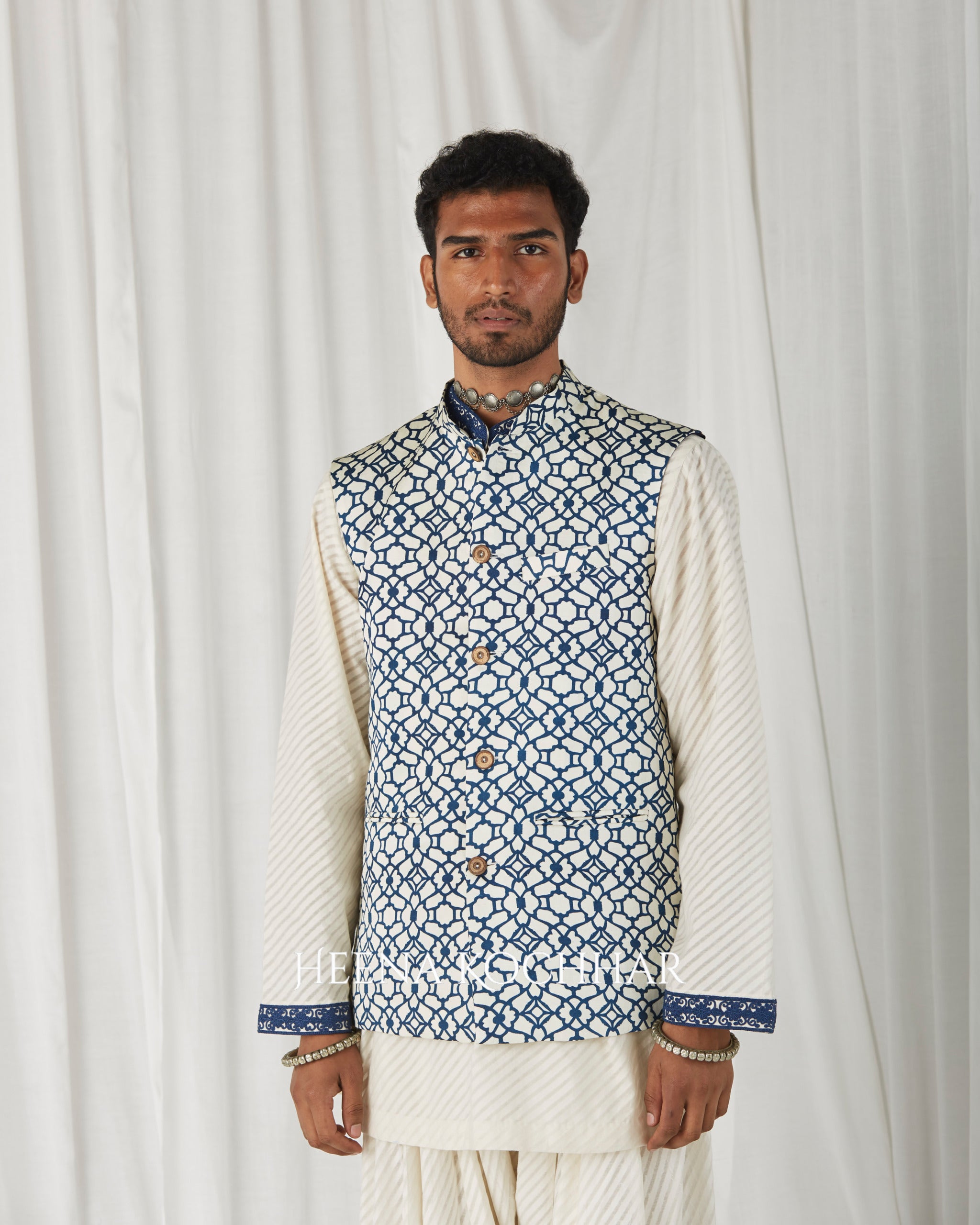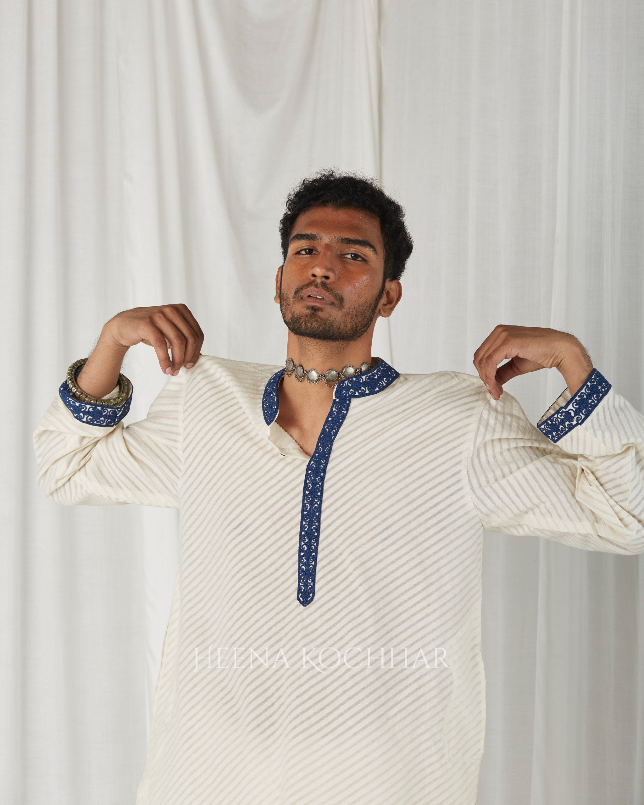KURTA: Cream Handloom Chanderi (Comfort Fit Kurta)