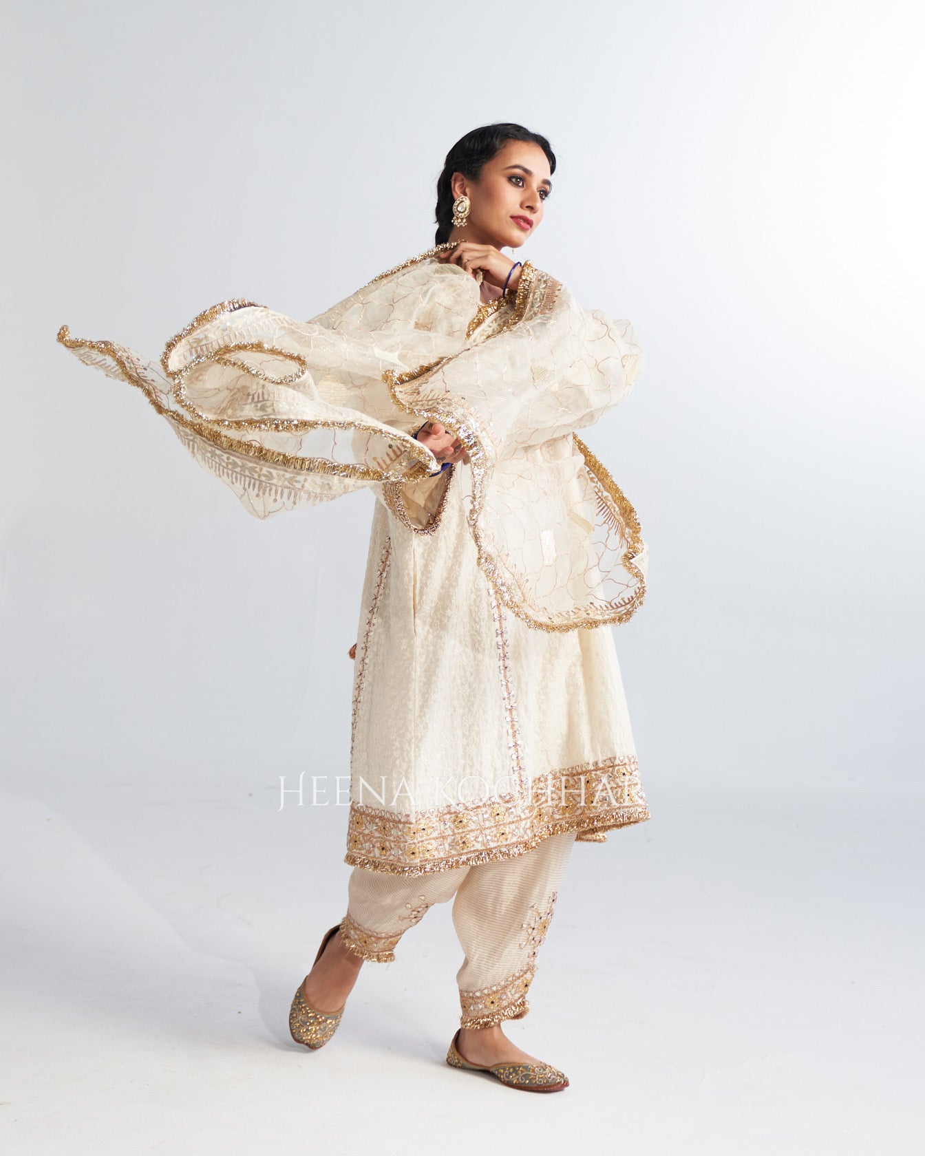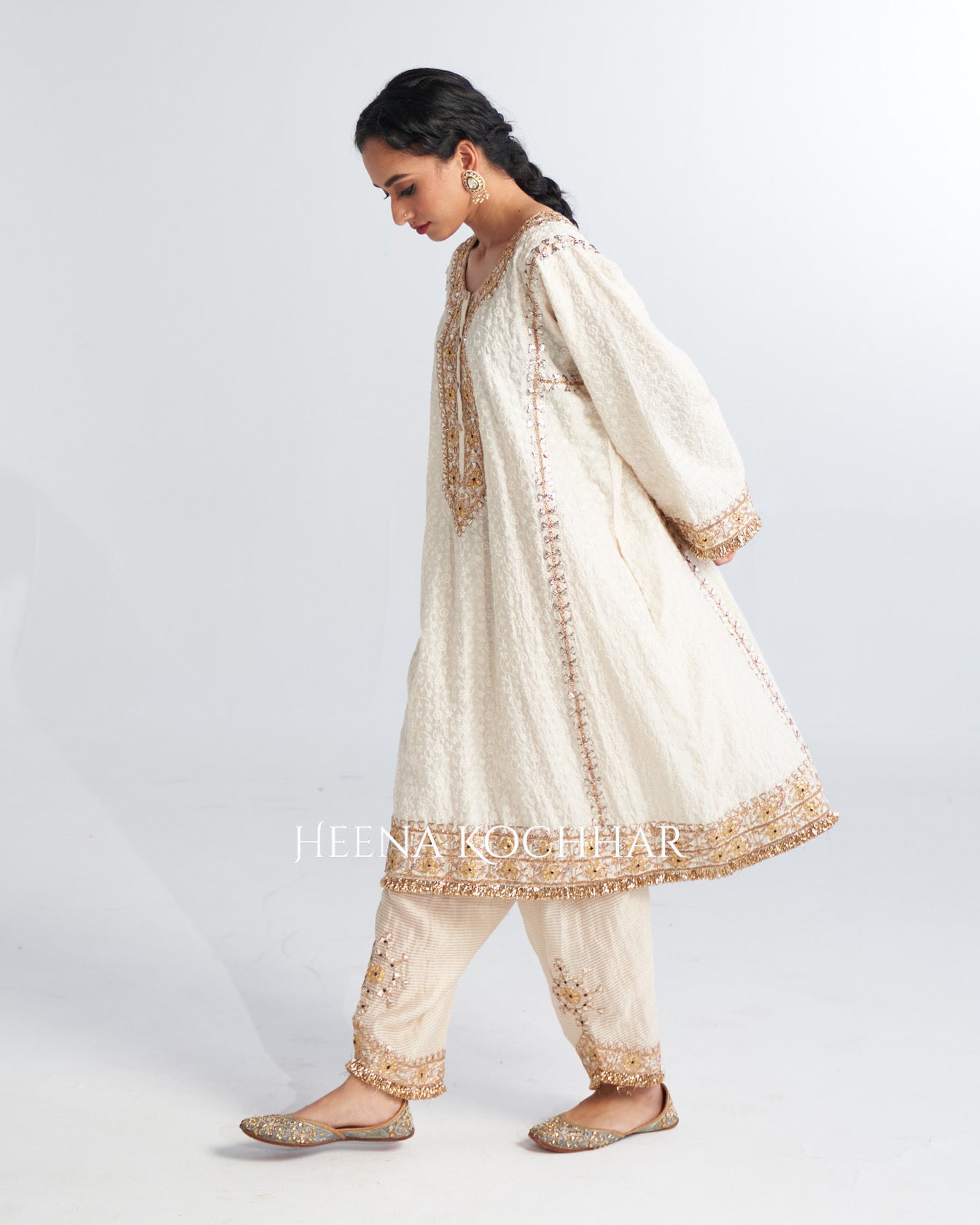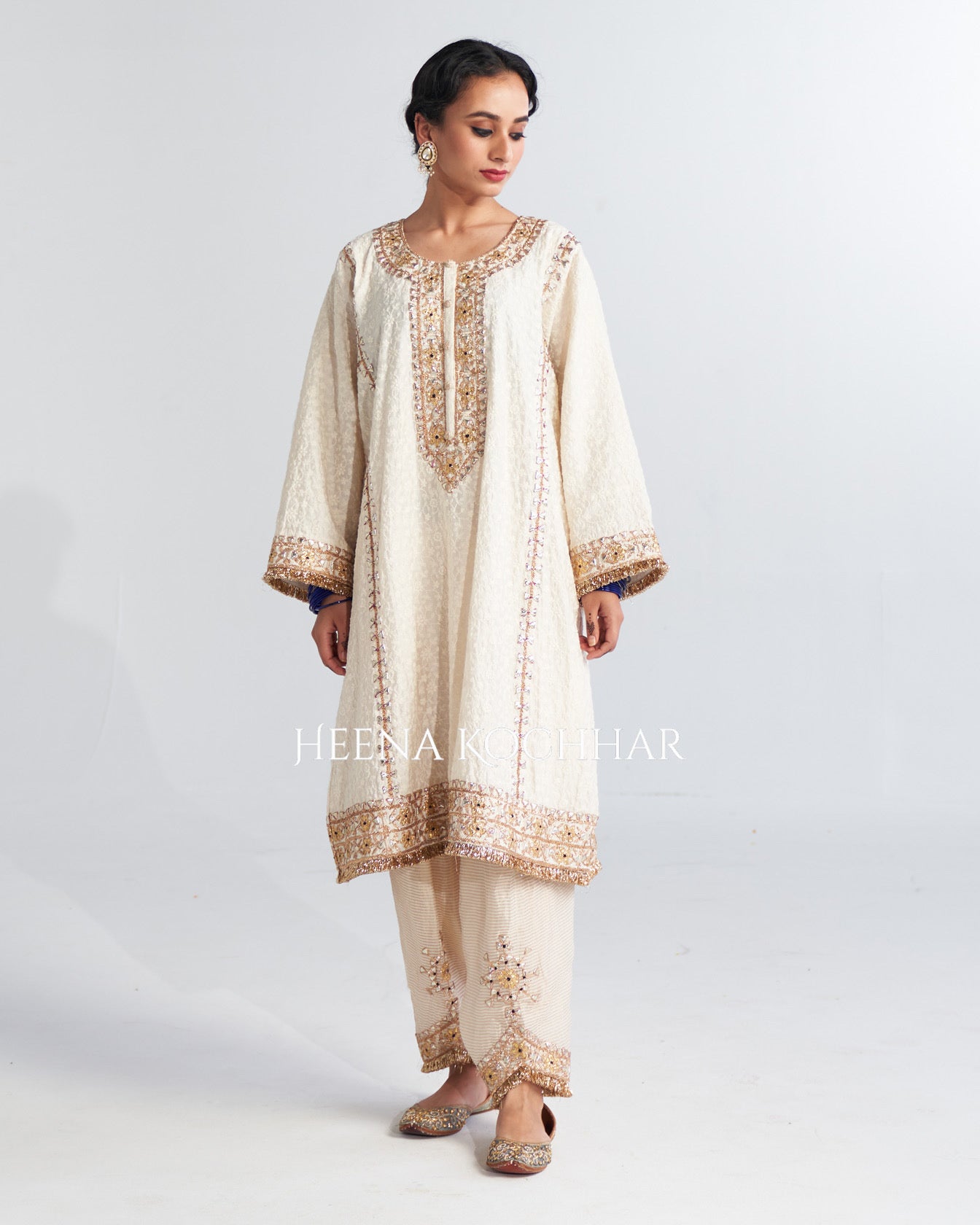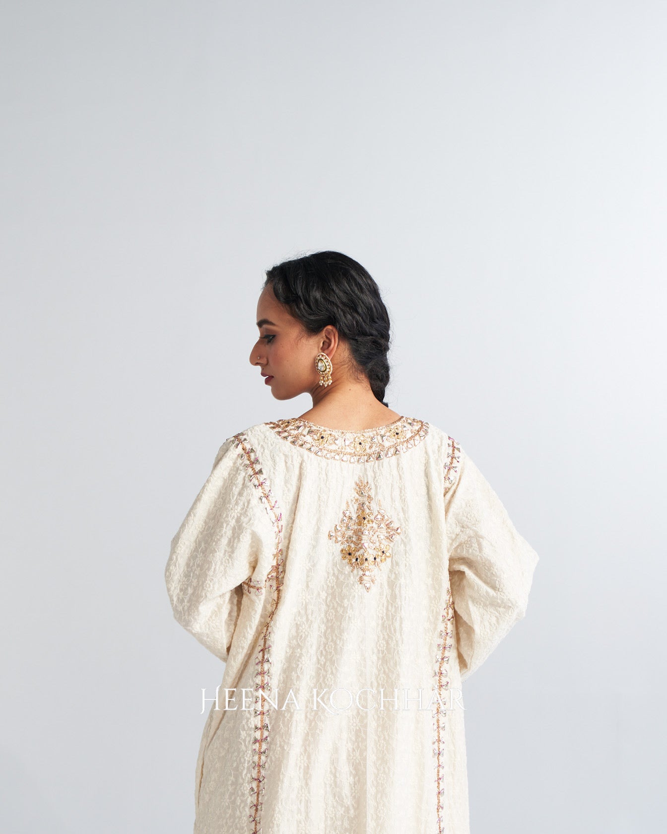 FIT : This is a loose antifit kurta/choga. The model is wearing it 7-� loose on body. You can specify at checkout how loose you want it to be on body. Please note, our size guide mentions body measurements.