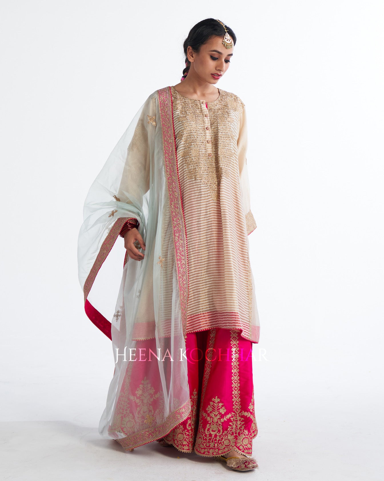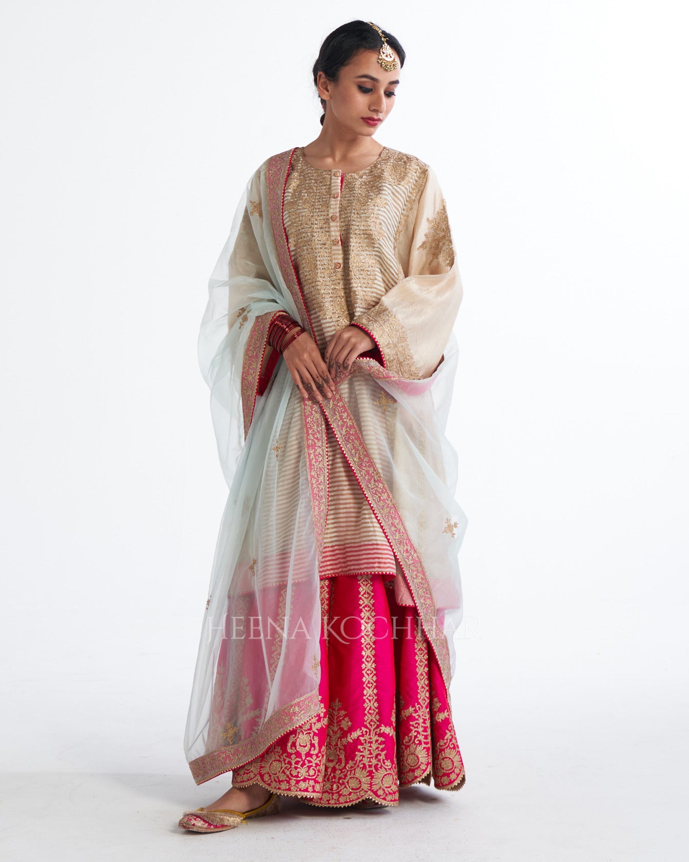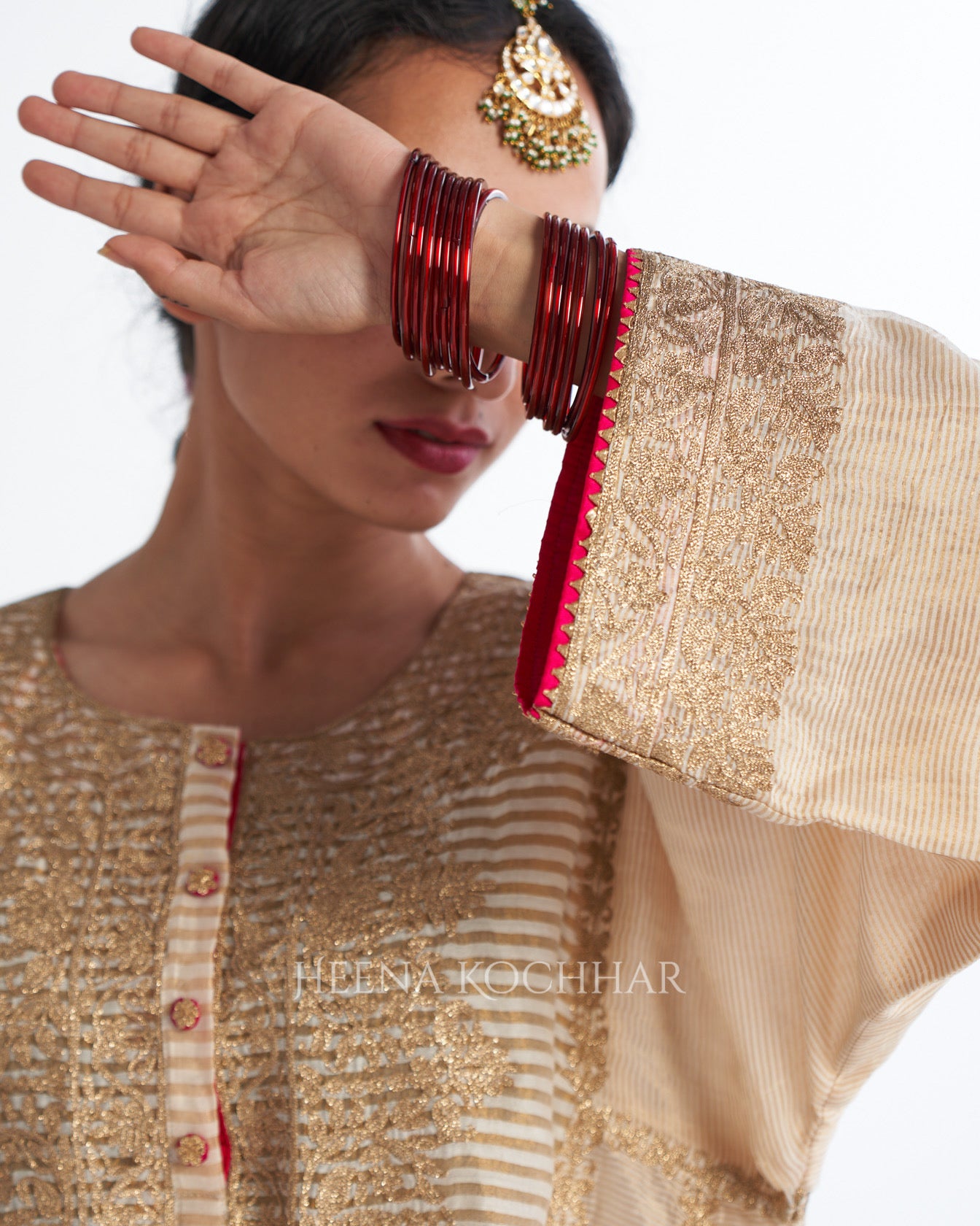 FIT : This is a loose antifit kurta/choga. The model is wearing it 7-� loose on body. You can specify at checkout how loose you want it to be on body. Please note, our size guide mentions body measurements.