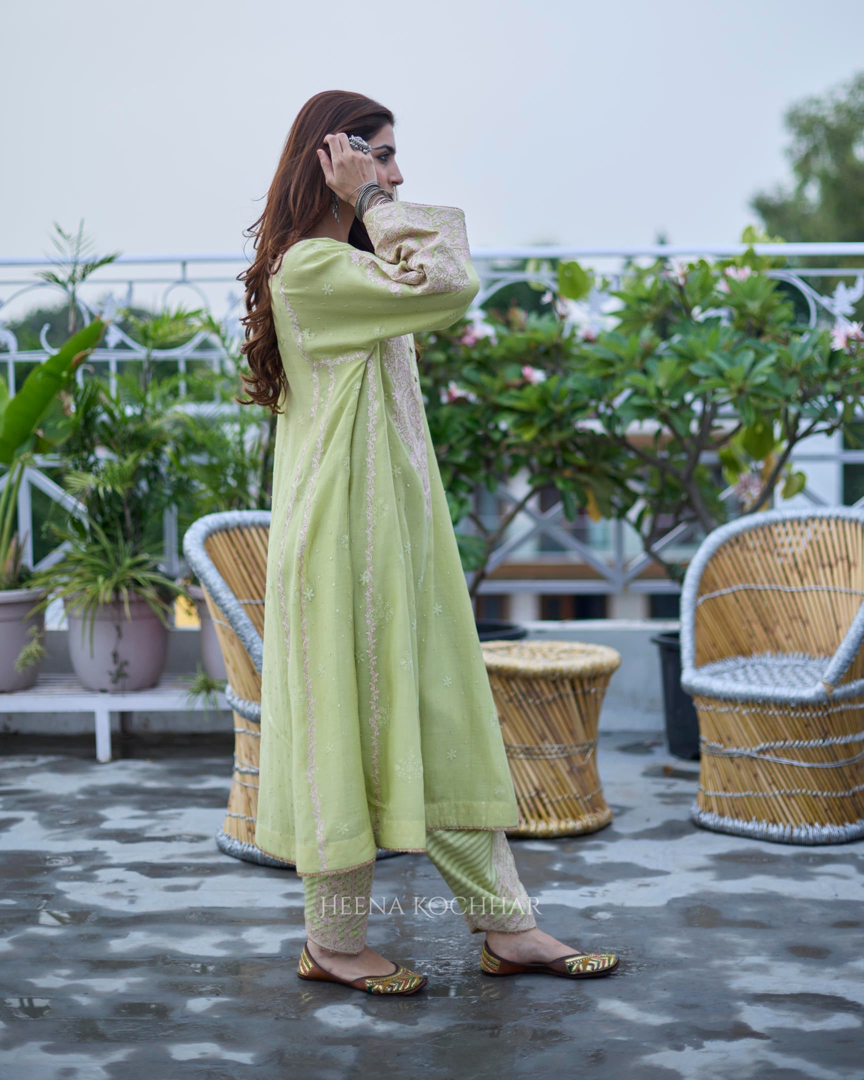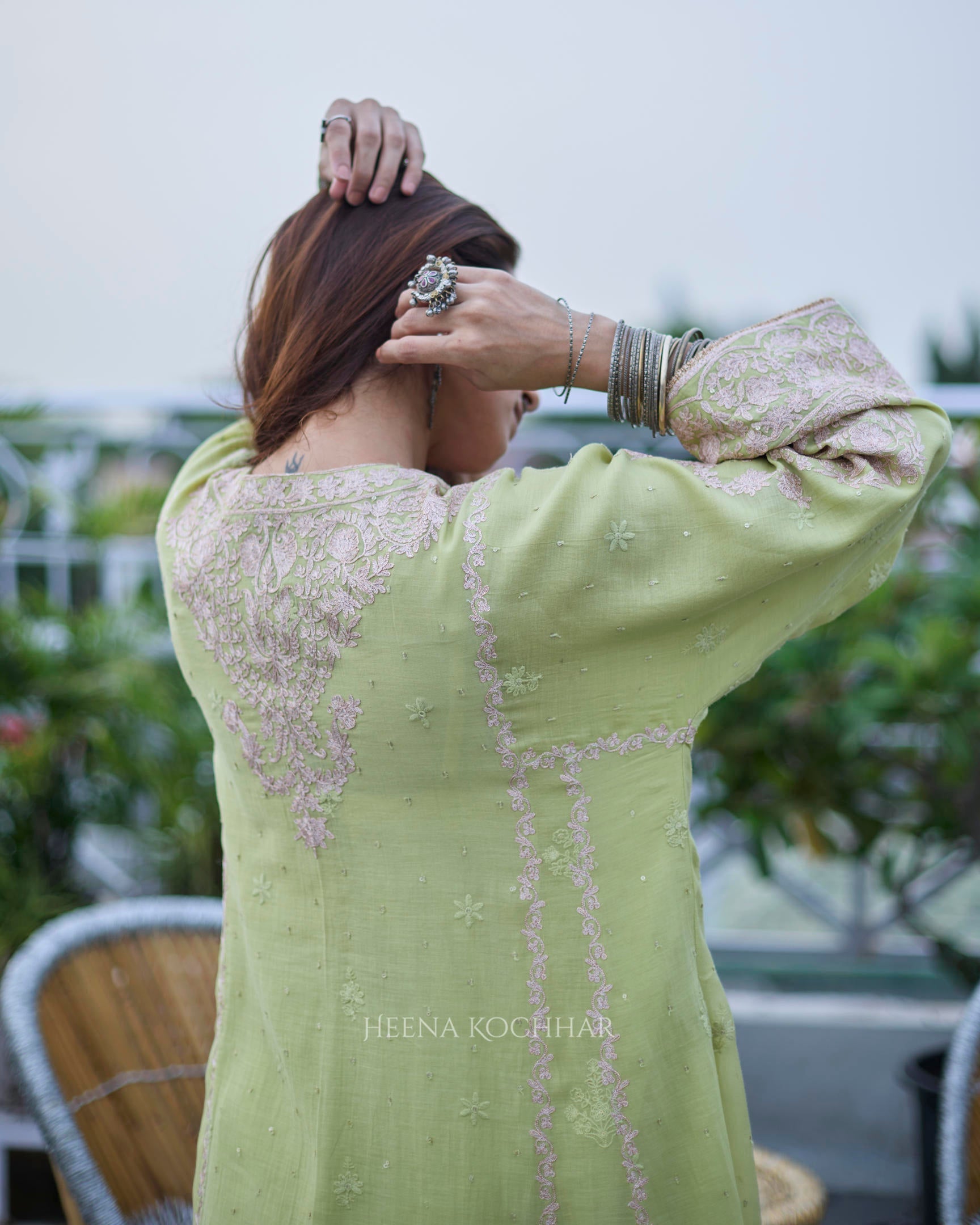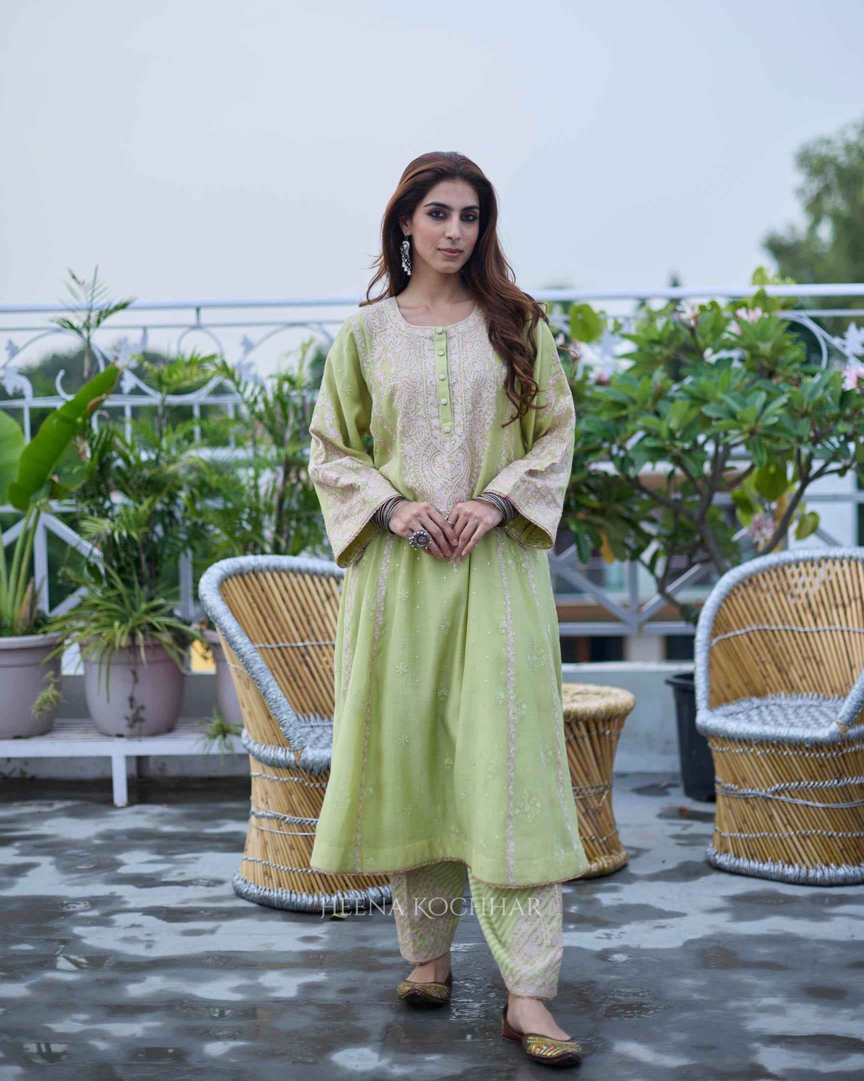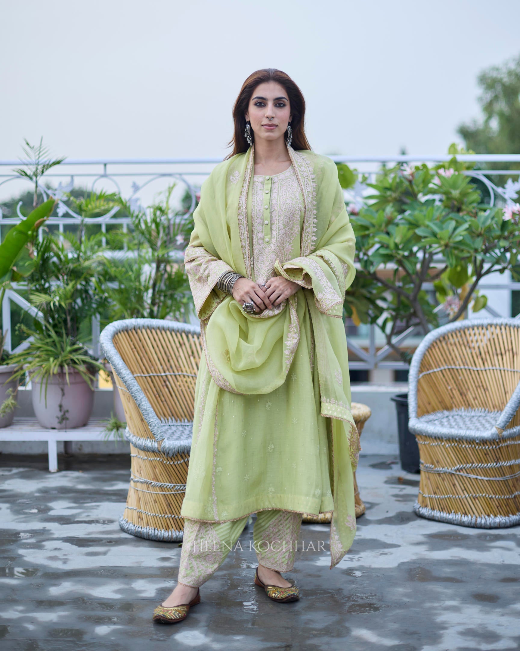 BOTTOM - Soft Lime Handloom Chanderi Salwar