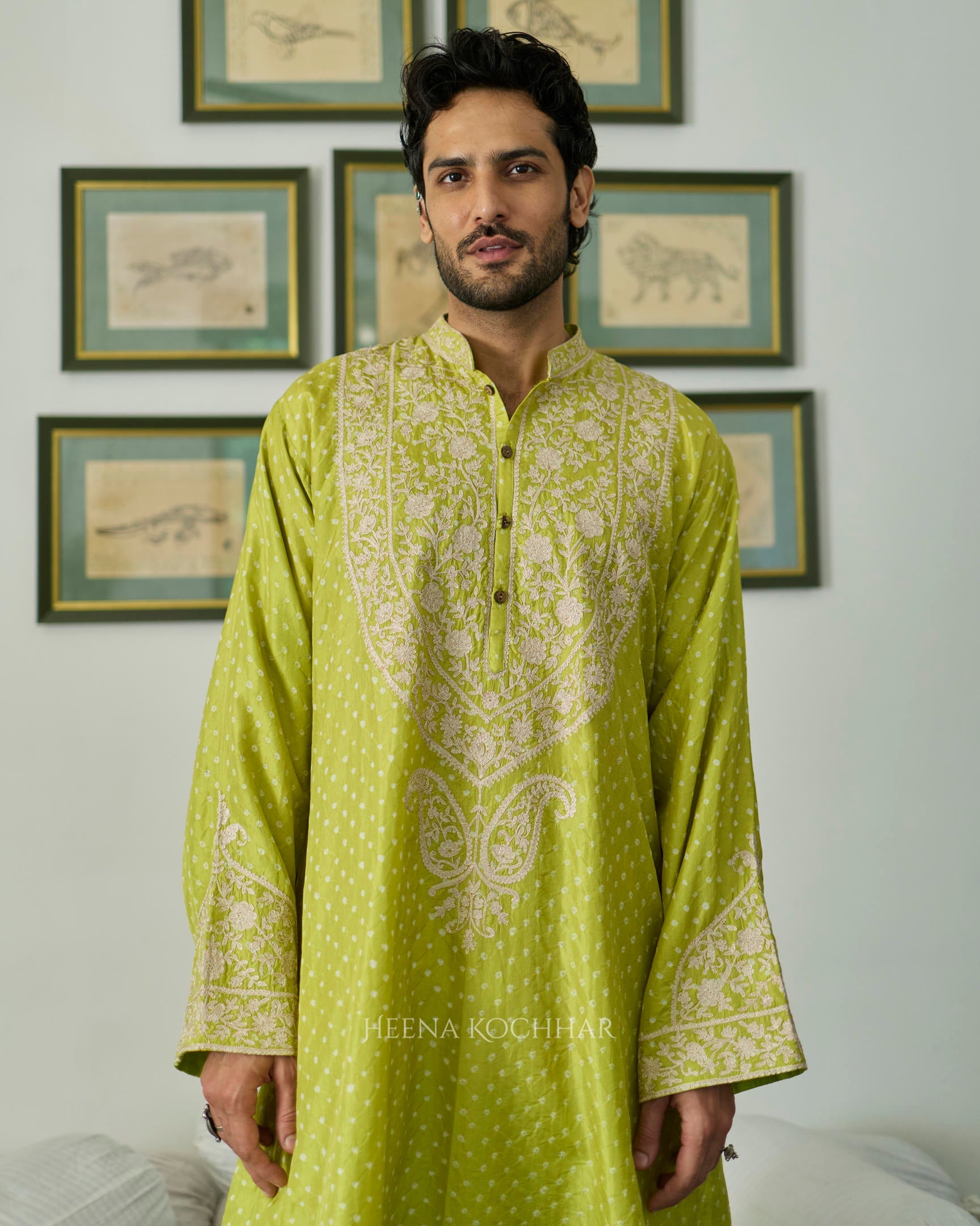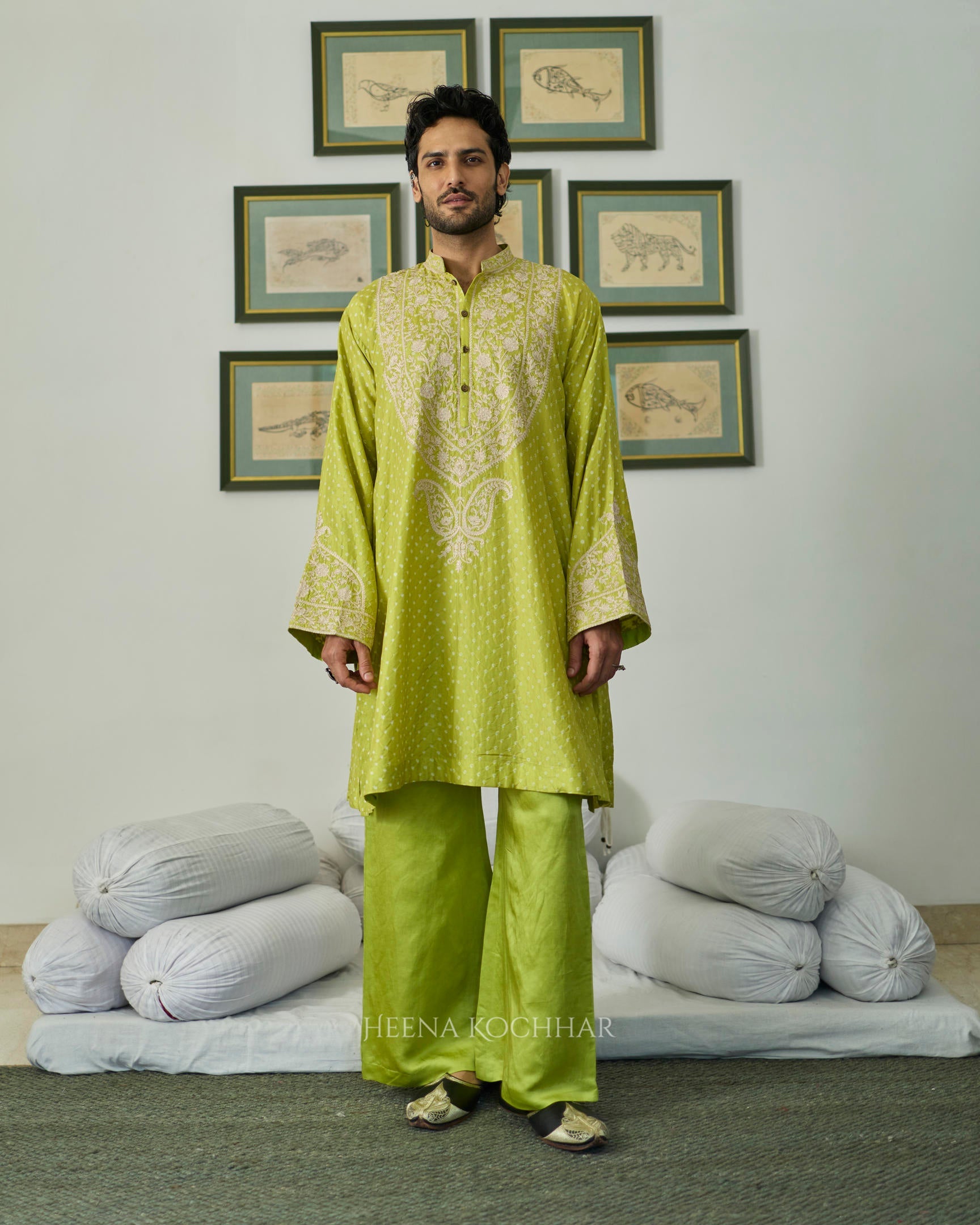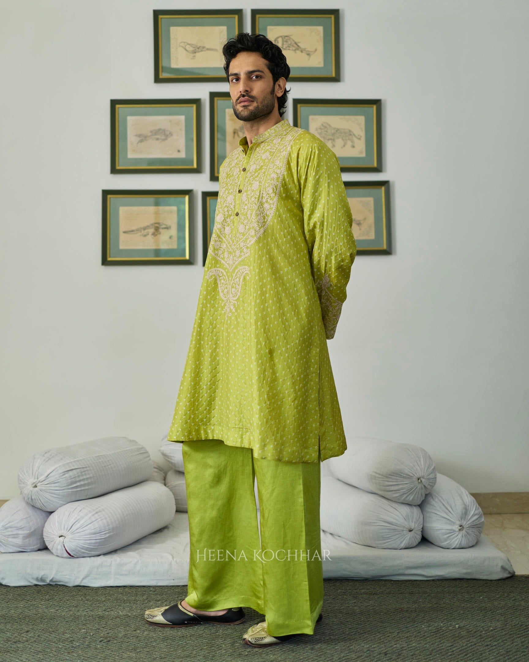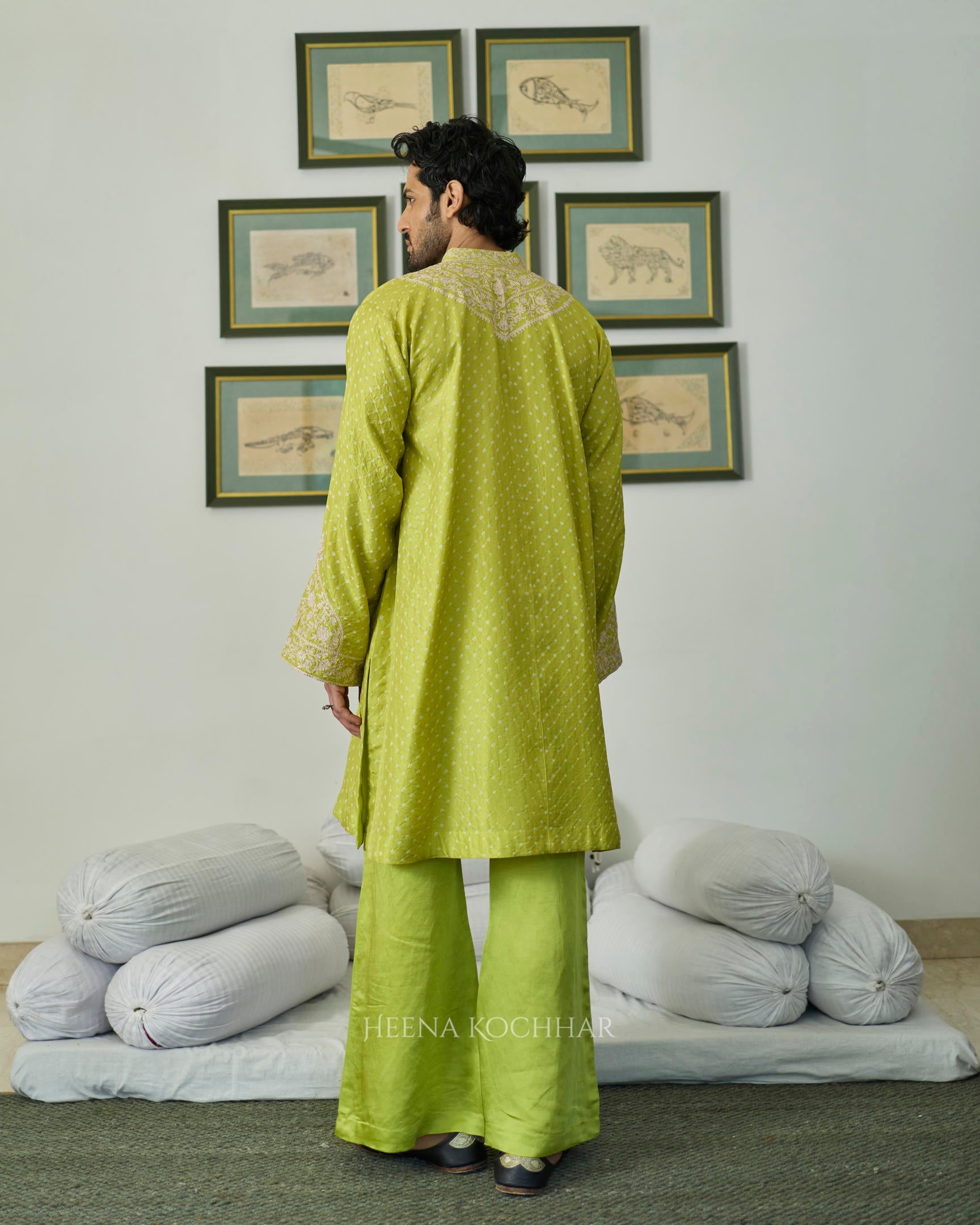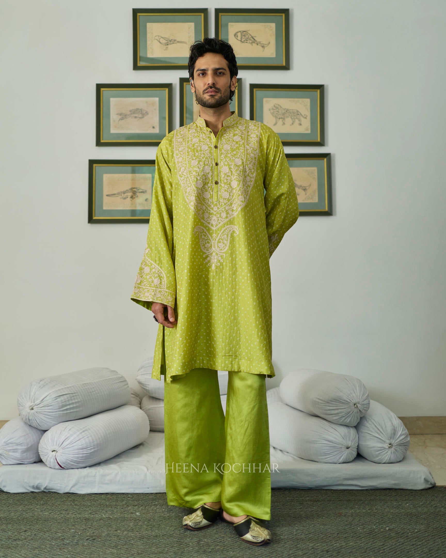 BOTTOM - Lime Green Silk Linen Faata Pajama