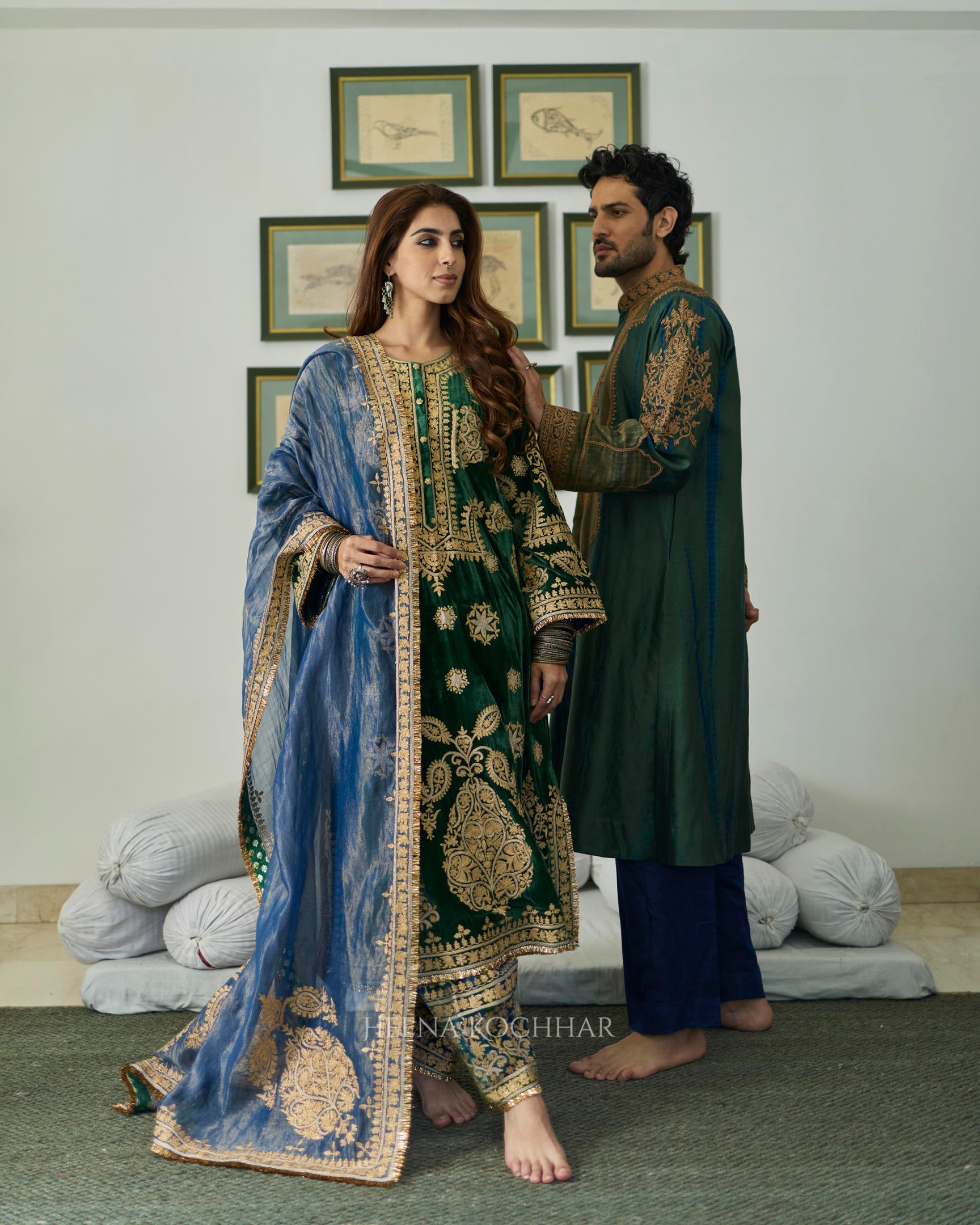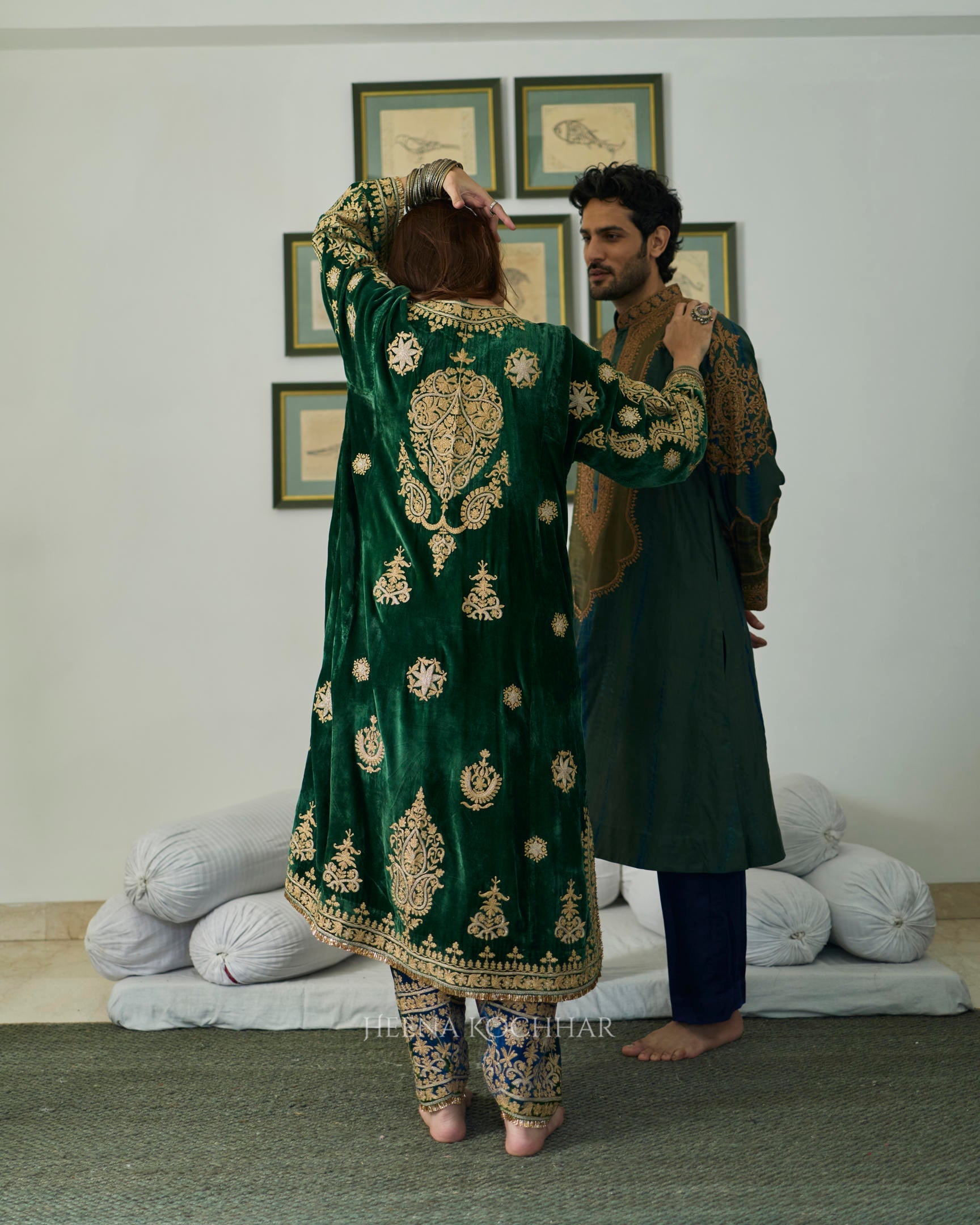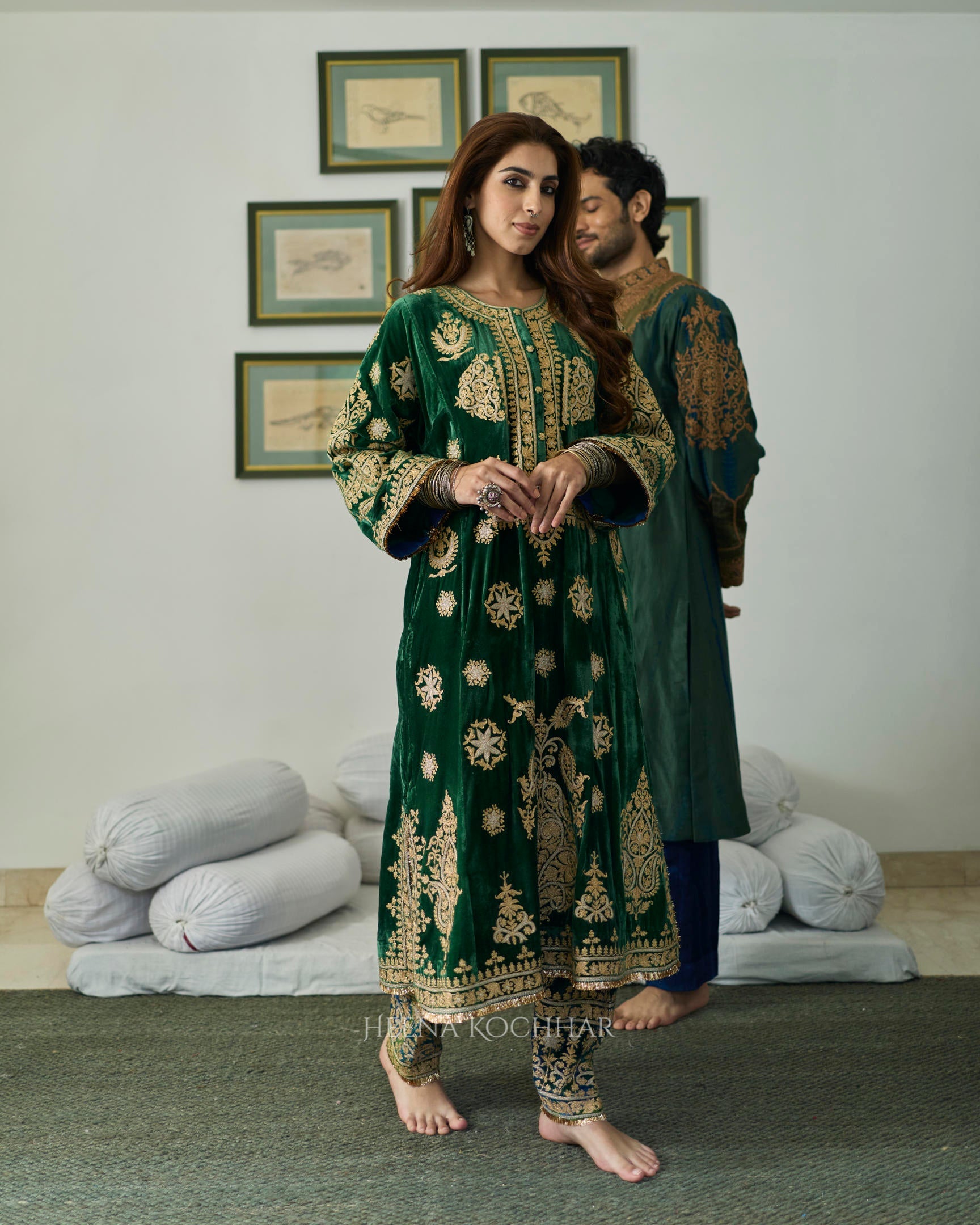 KURTA - Green Silk Velvet Choga