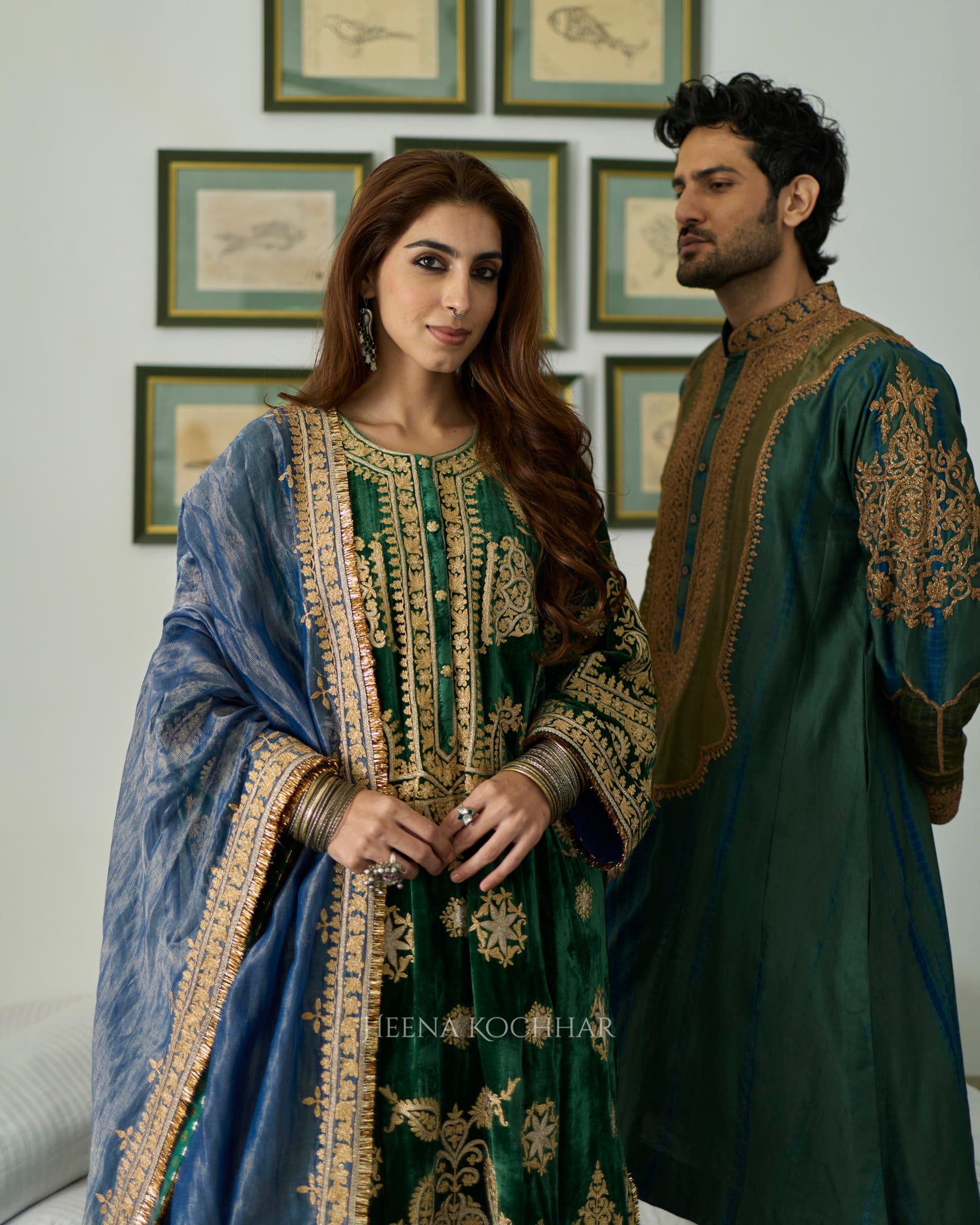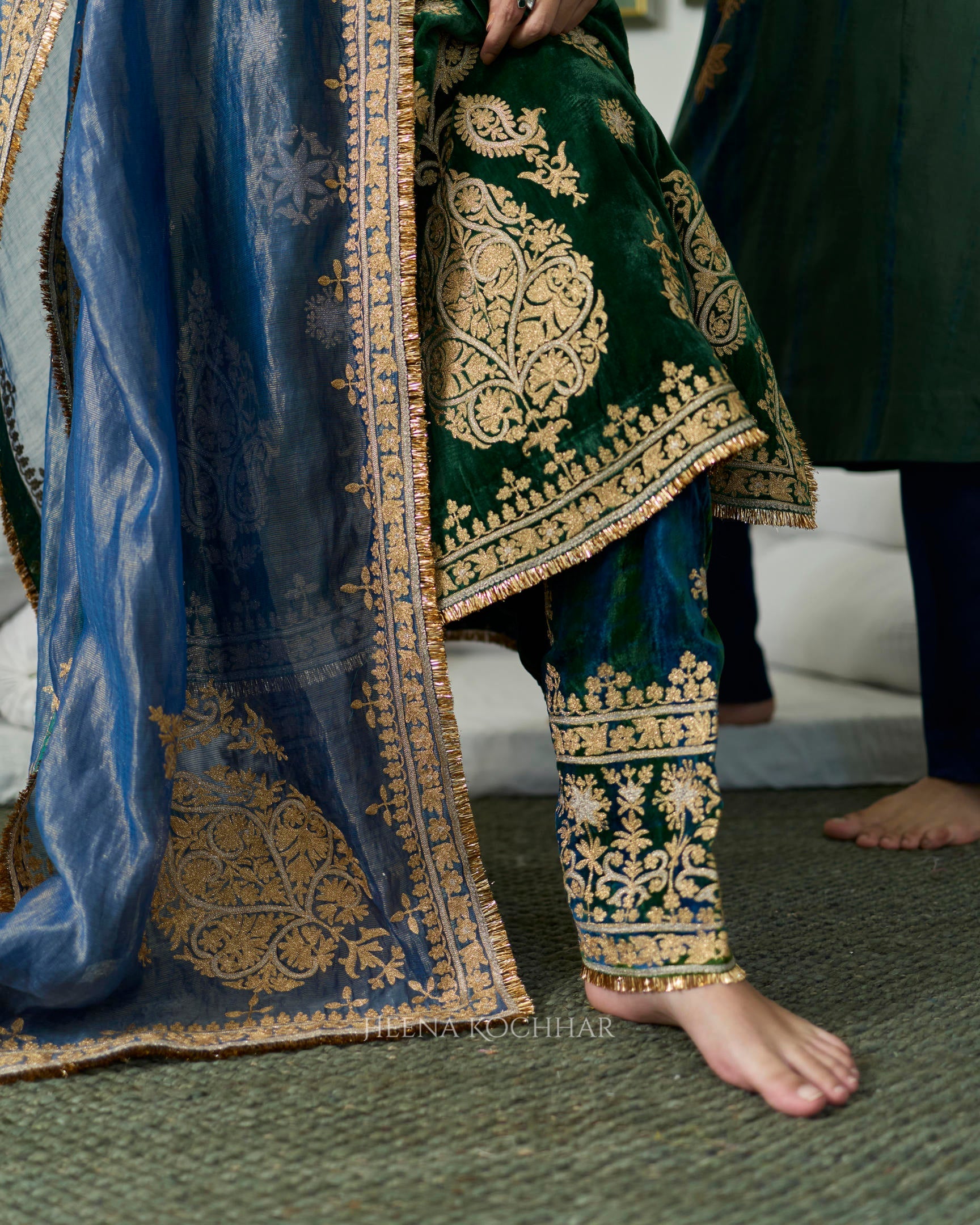BOTTOM - Green And Blue Silk Velvet Salwar
