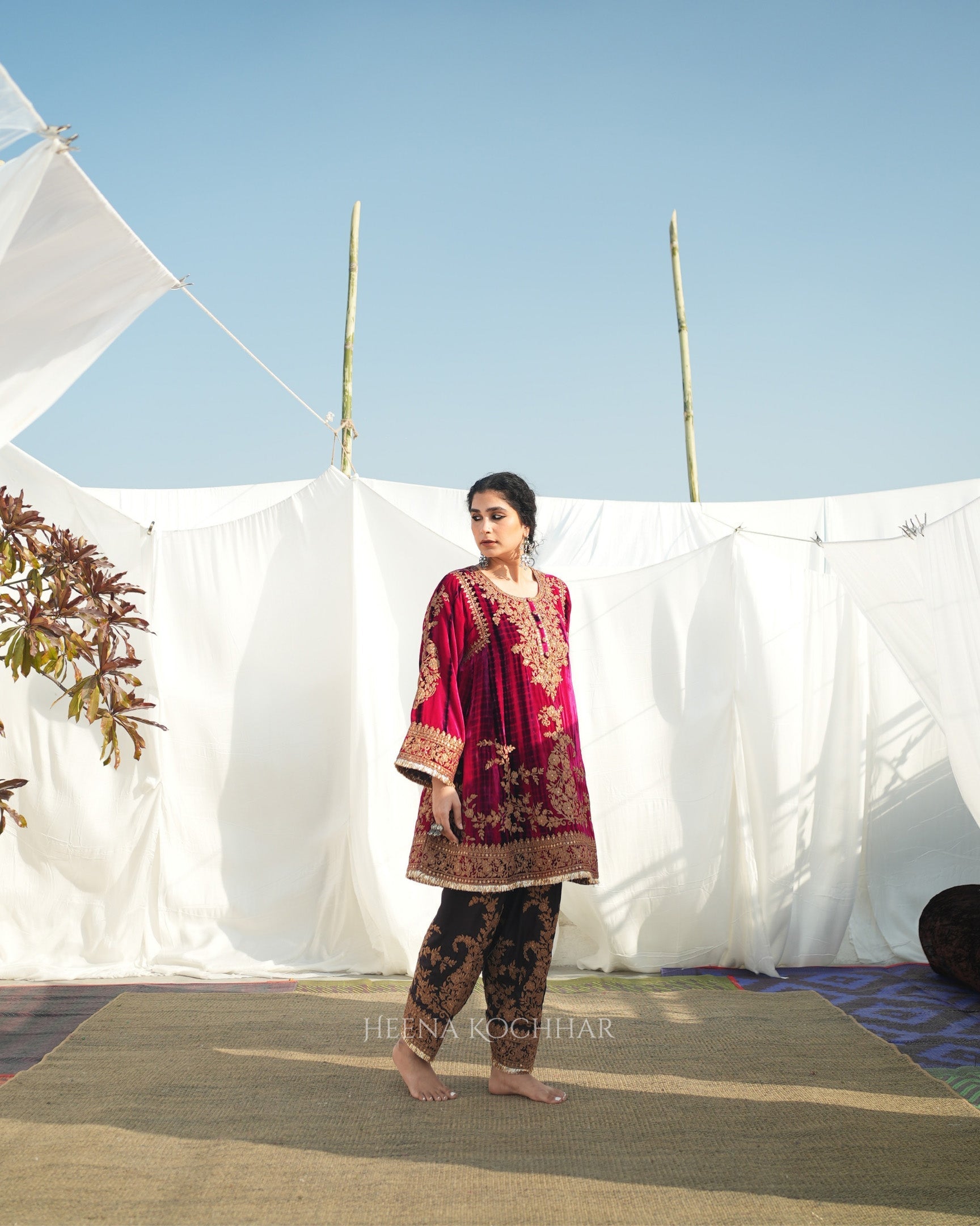KURTA - Pink Purple Tie-dye Silk Velvet Choga