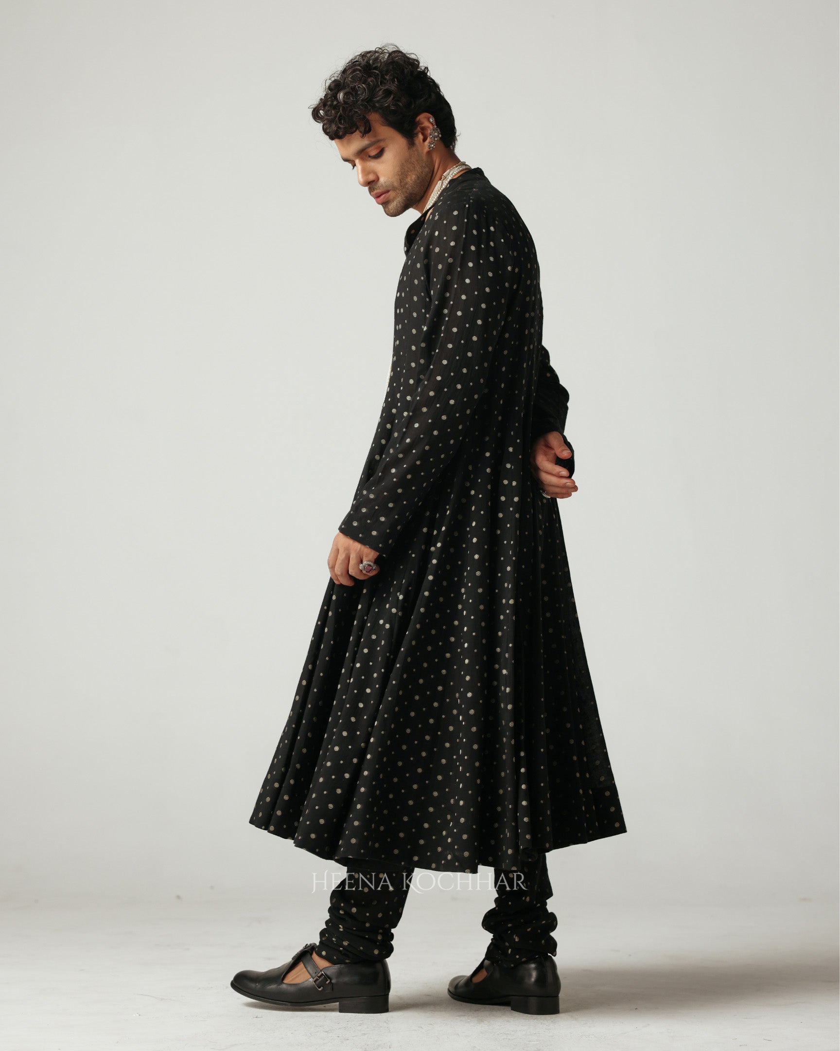 KURTA - Black Cotton Jacquard Anarkali