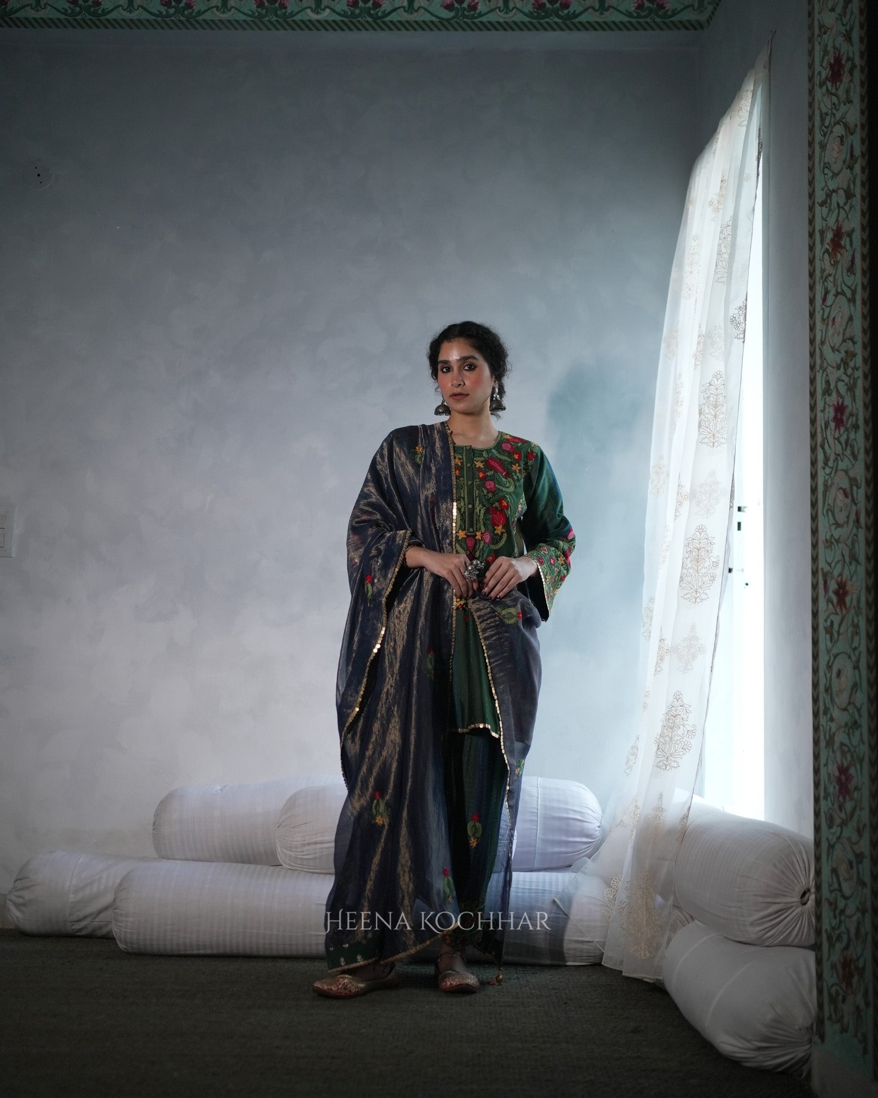 BOTTOM - Green and Blue Tie-Dye Chanderi salwar
