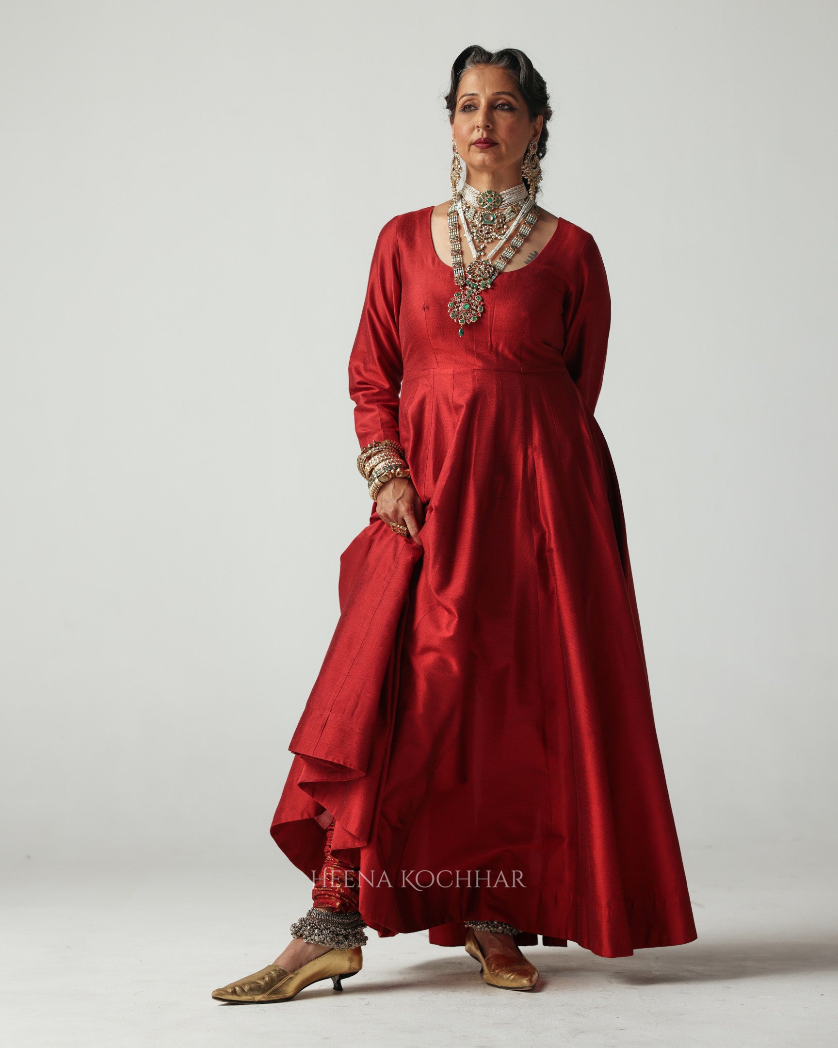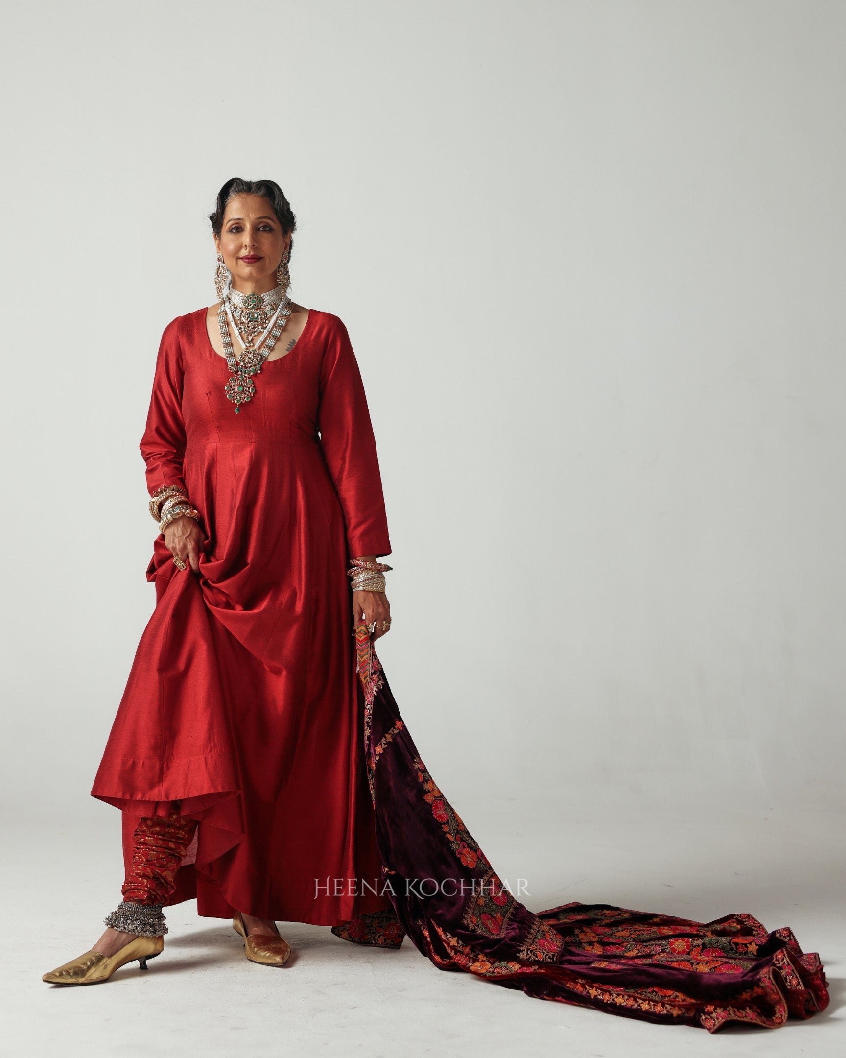 KURTA - Maroon Chanderi Anarkali