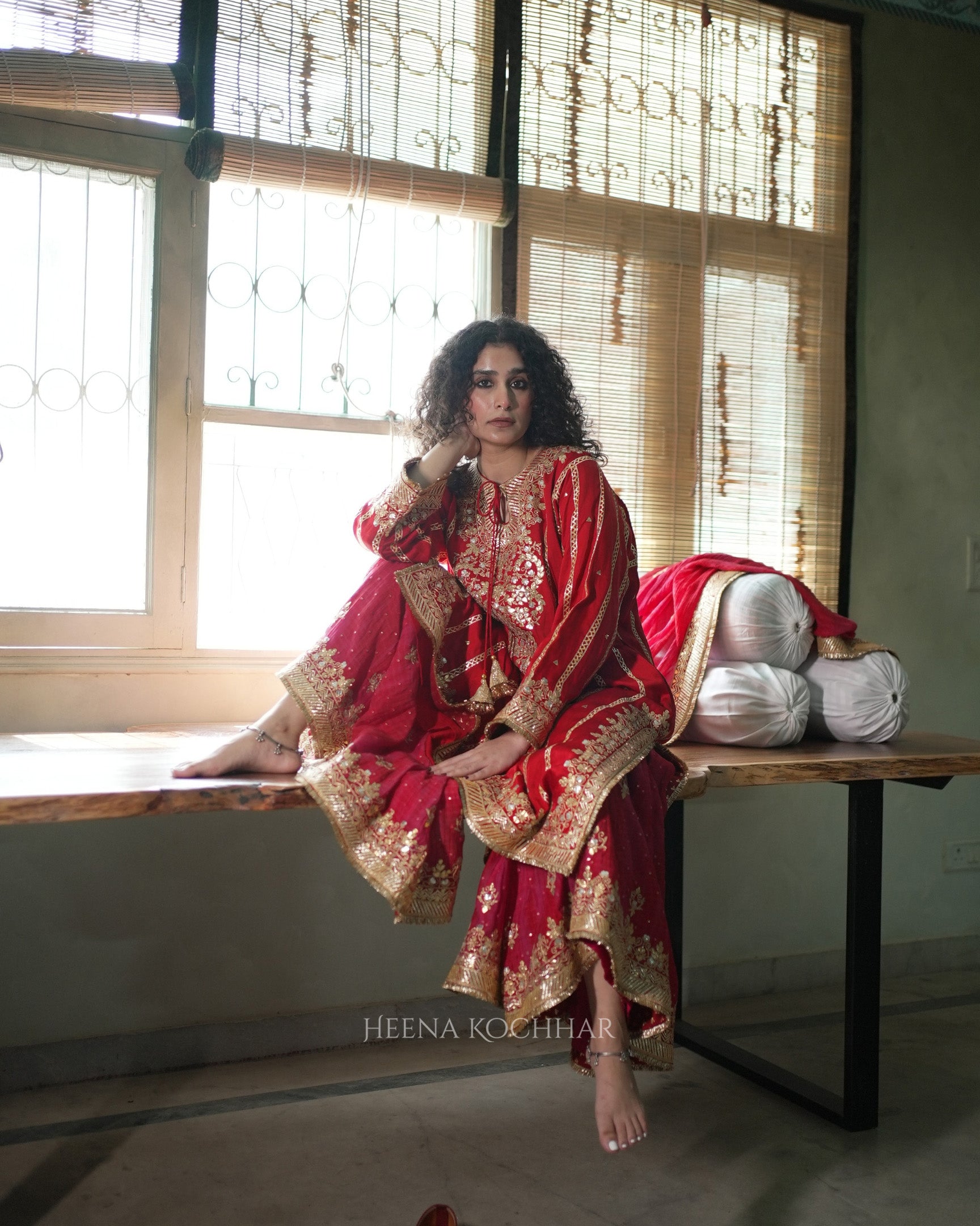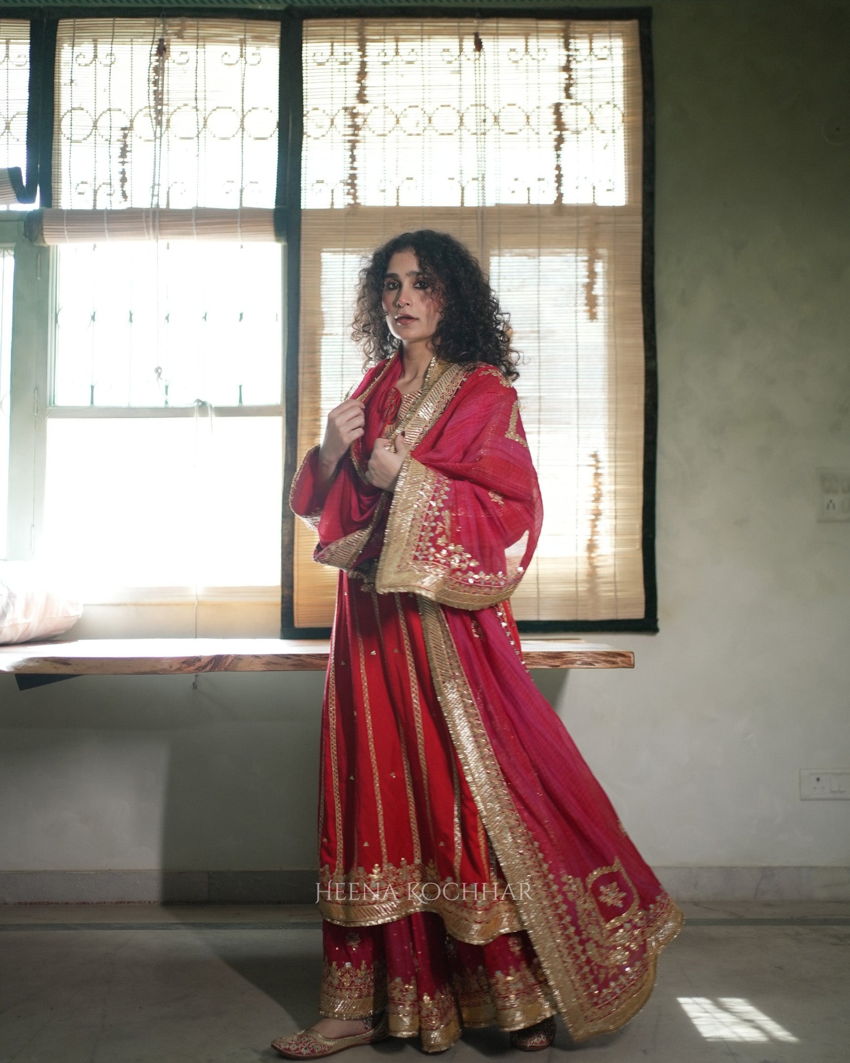 BOTTOM - Red Rani Tie-Dye Sitara Chanderi Garara