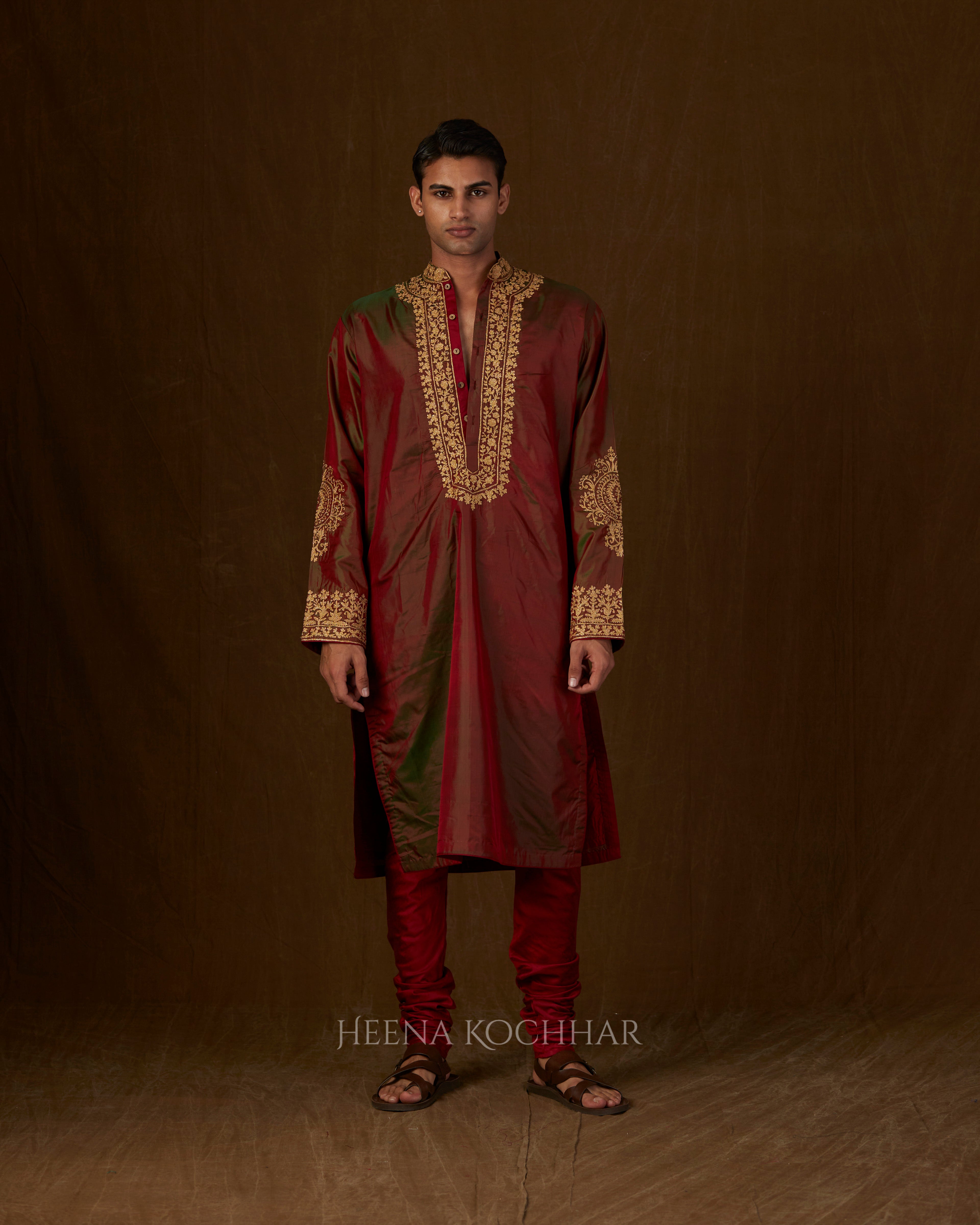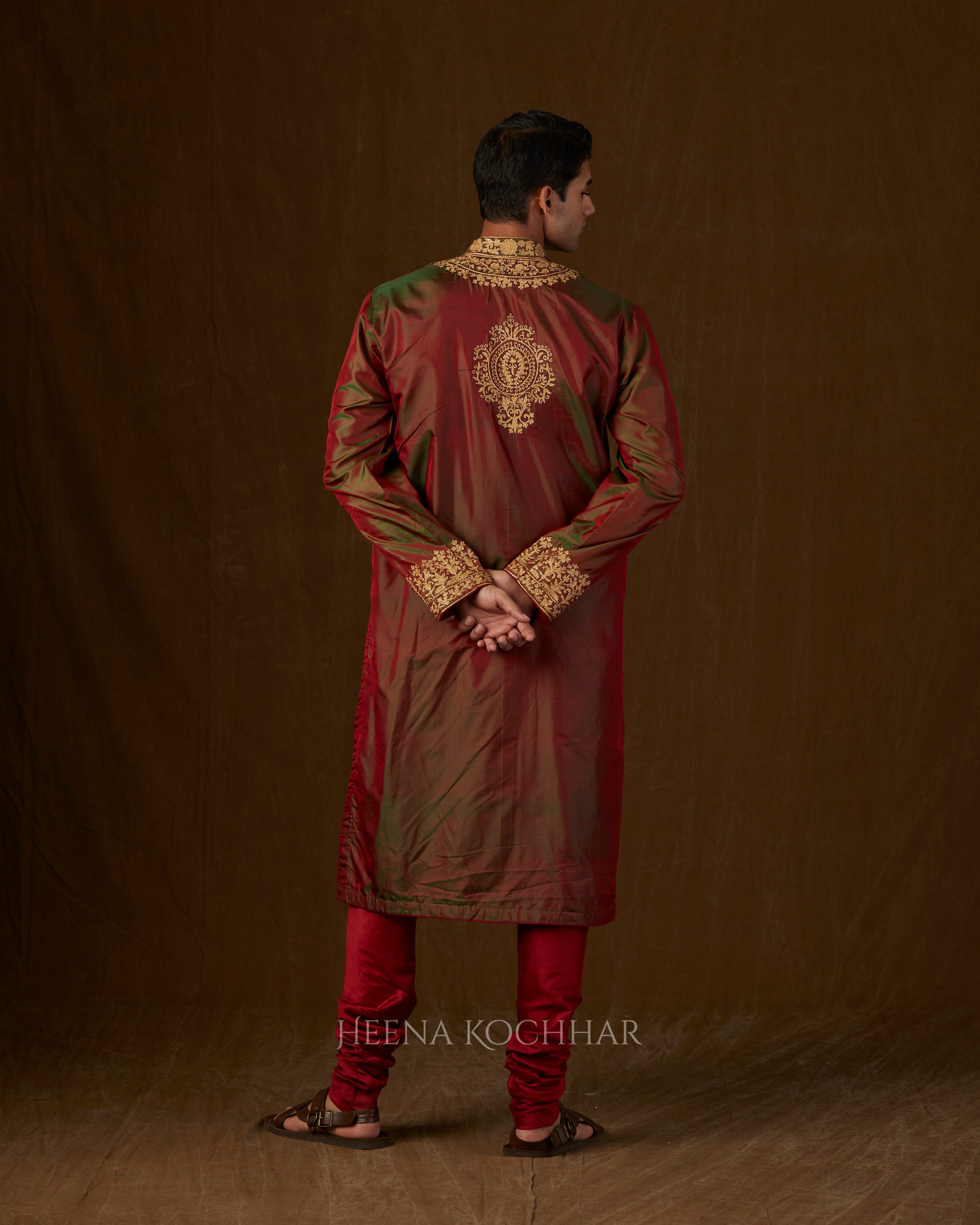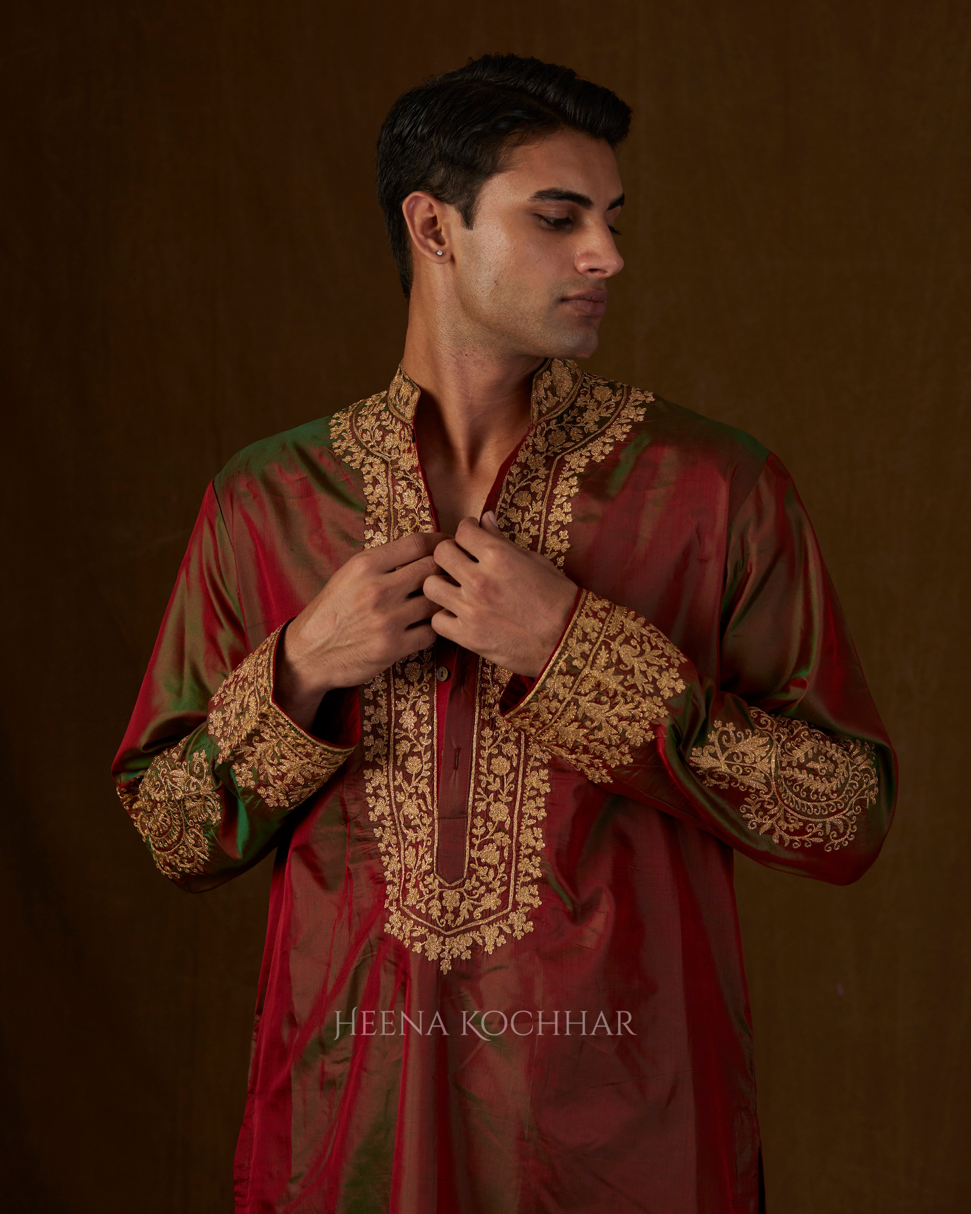 KURTA - Maroon Two Tone Pure Silk Kurta