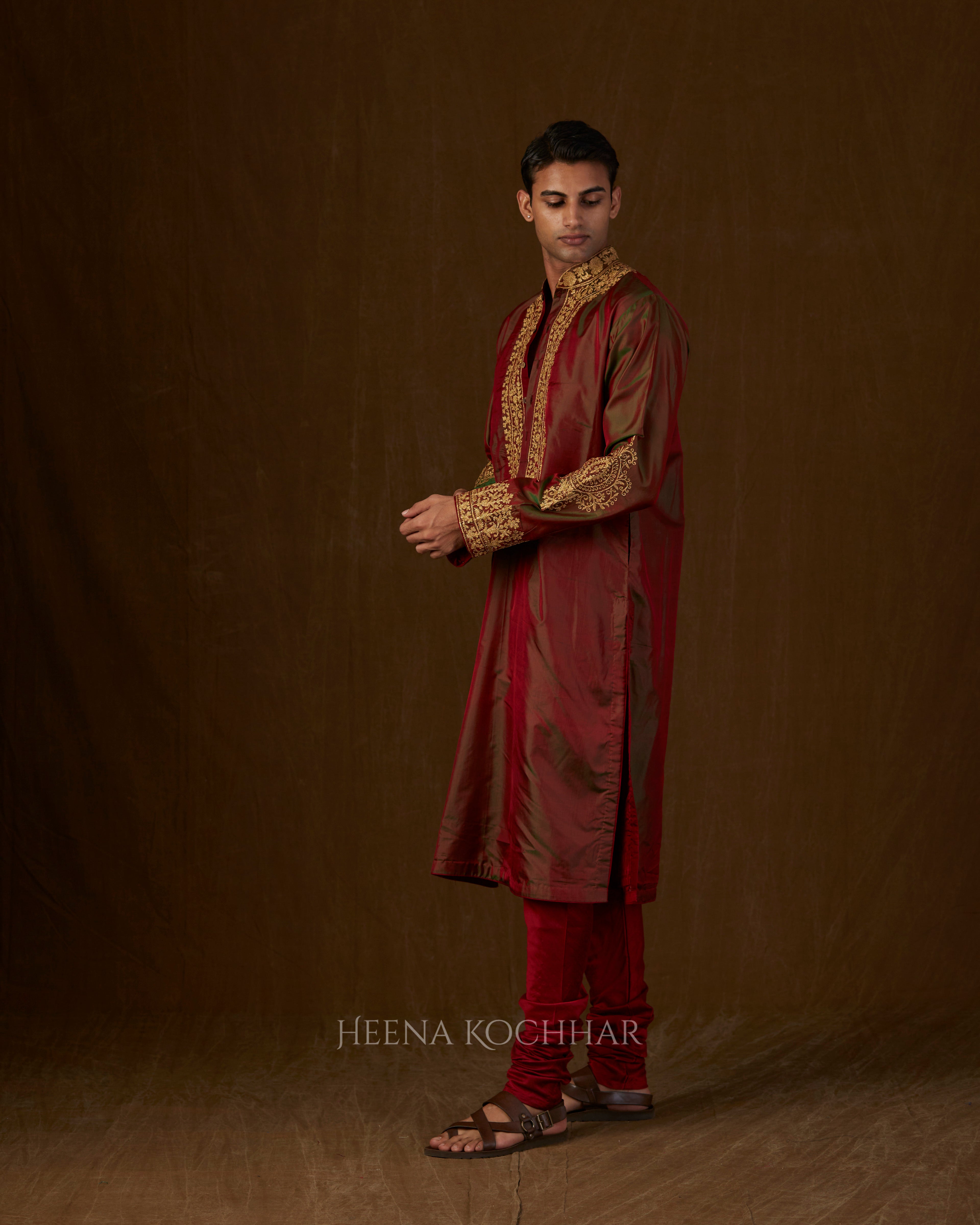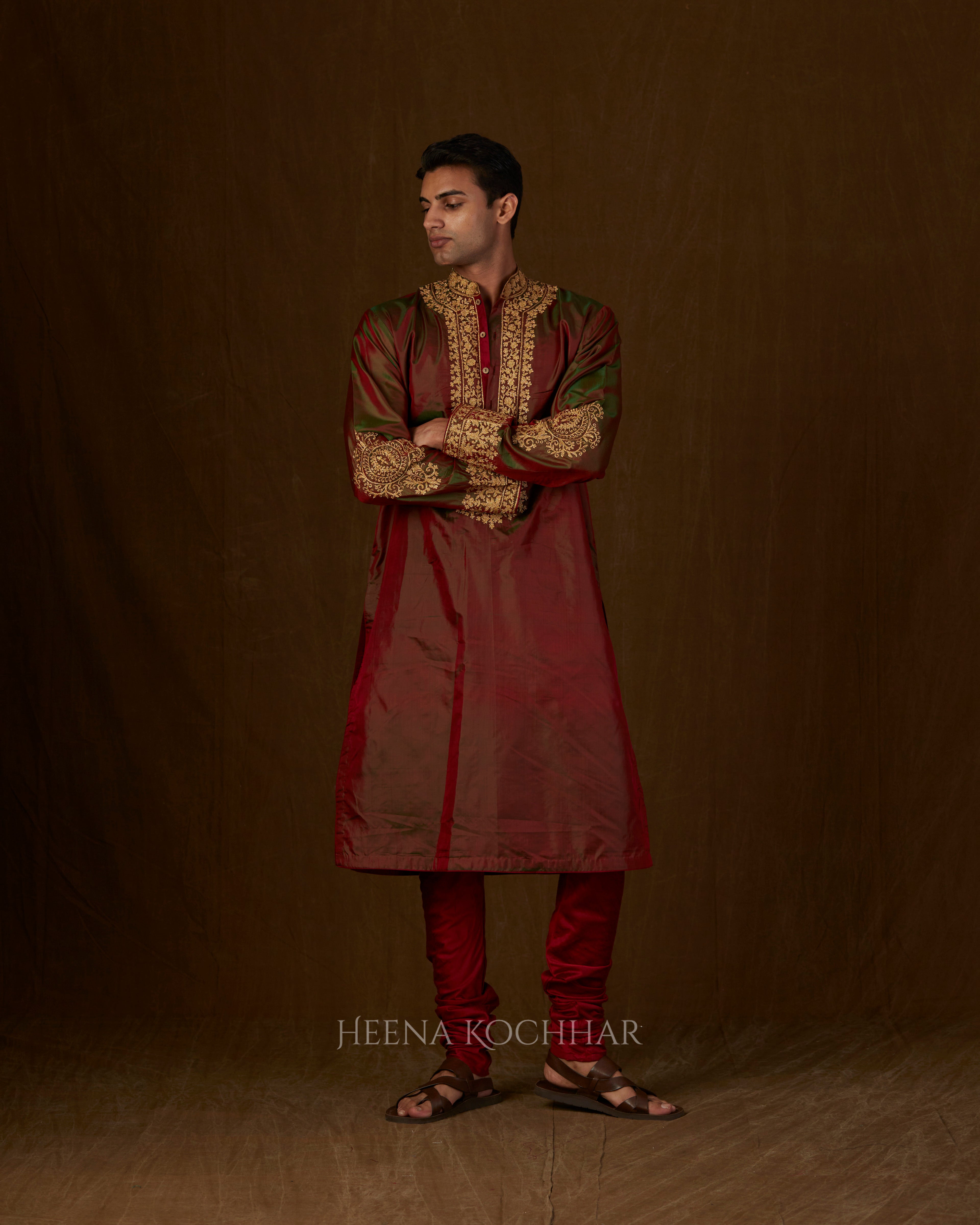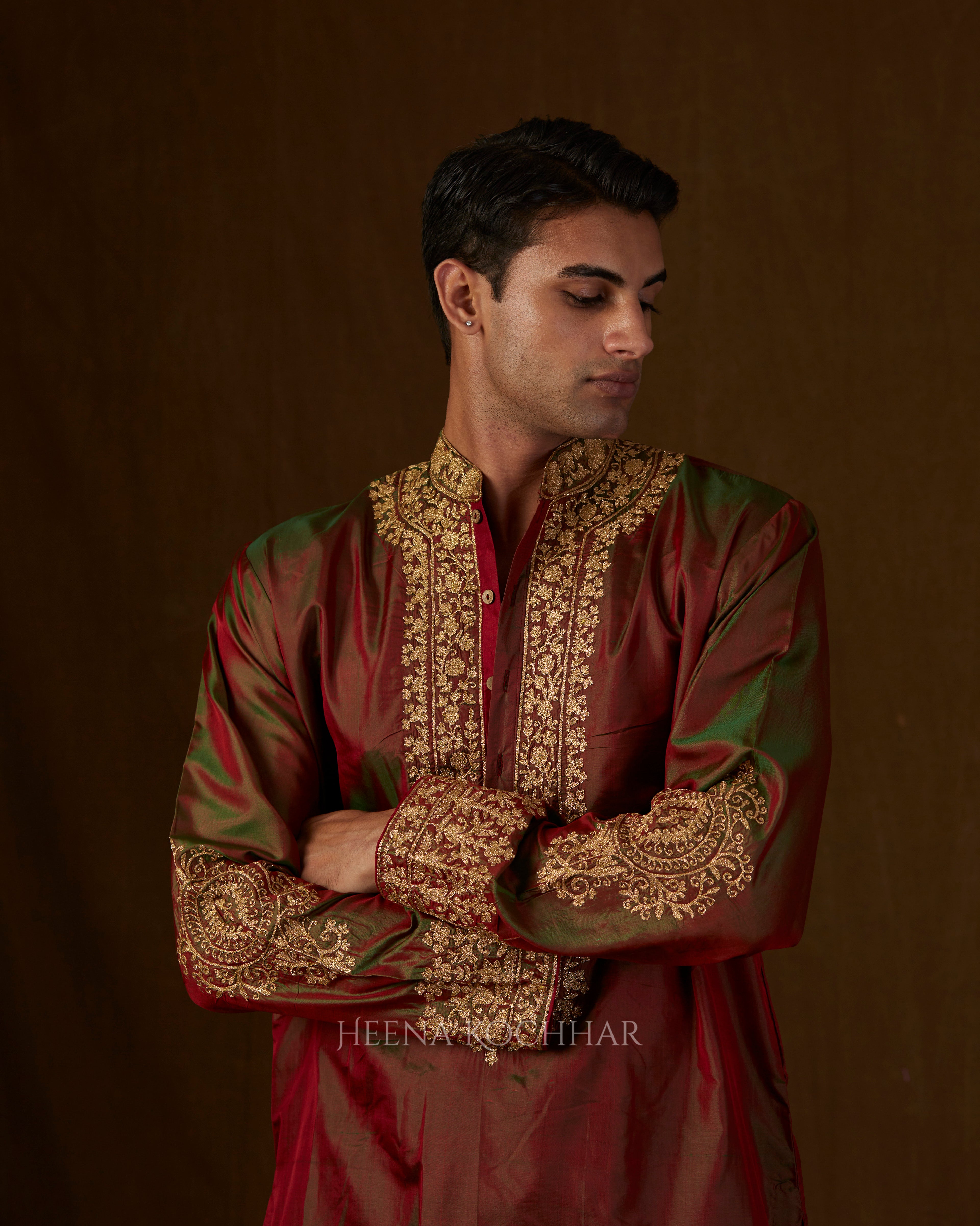 KURTA - Maroon Two Tone Pure Silk Kurta