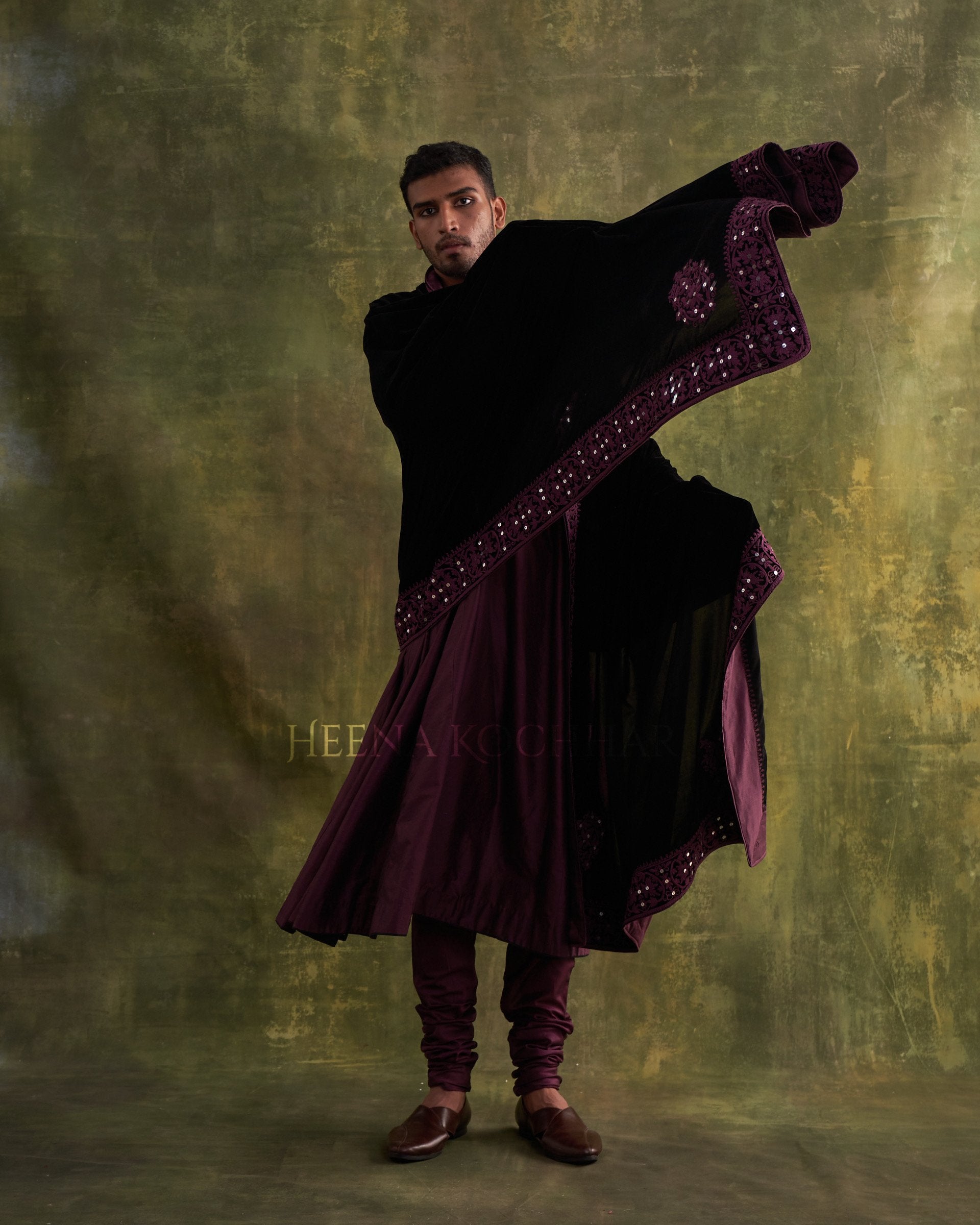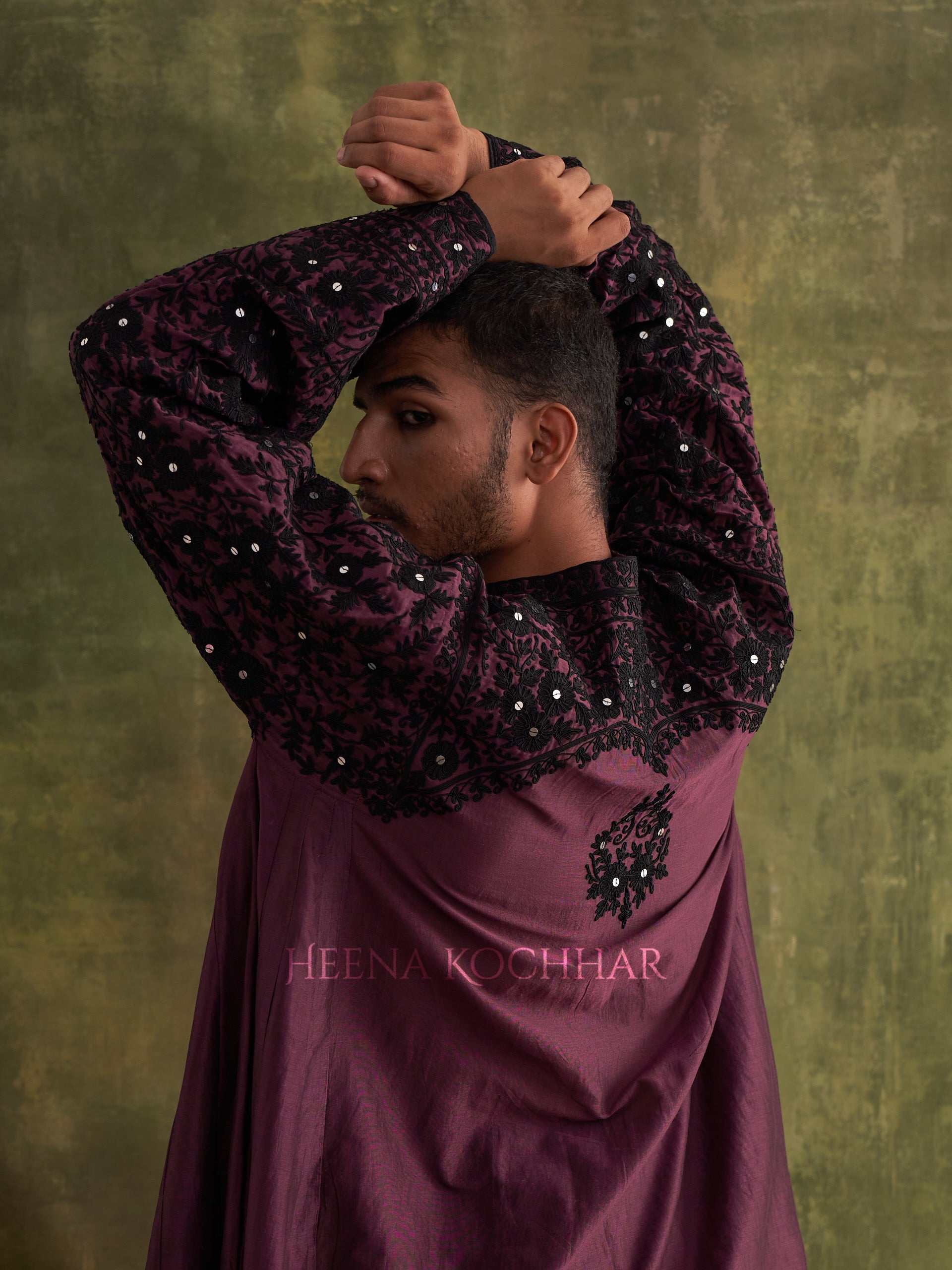 KURTA: Wine Chanderi (Comfort Fit Choga)