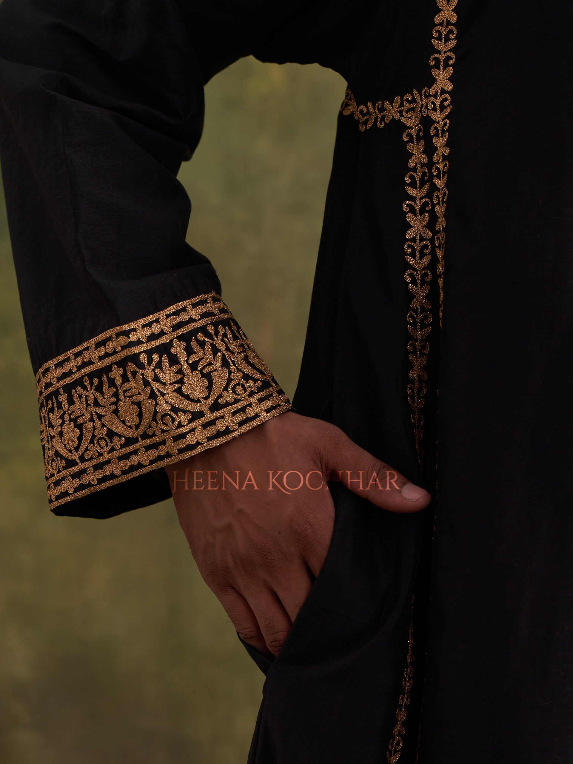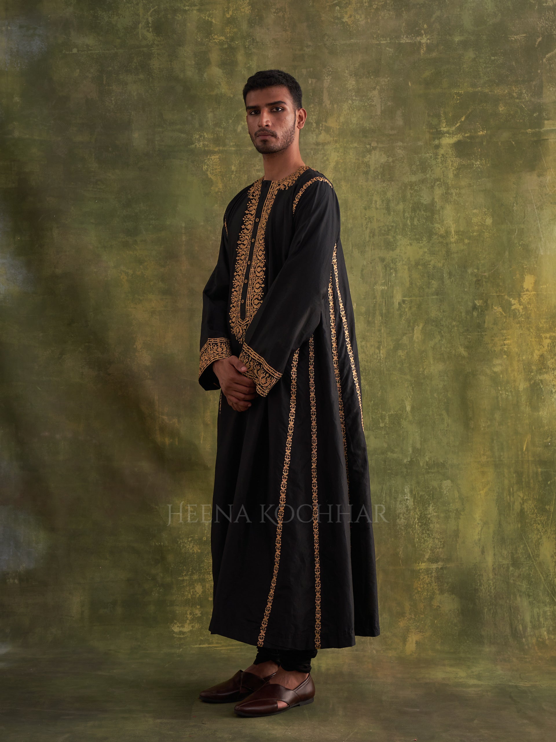 KURTA: Black Chanderi (Comfort Fit Kurta Choga)