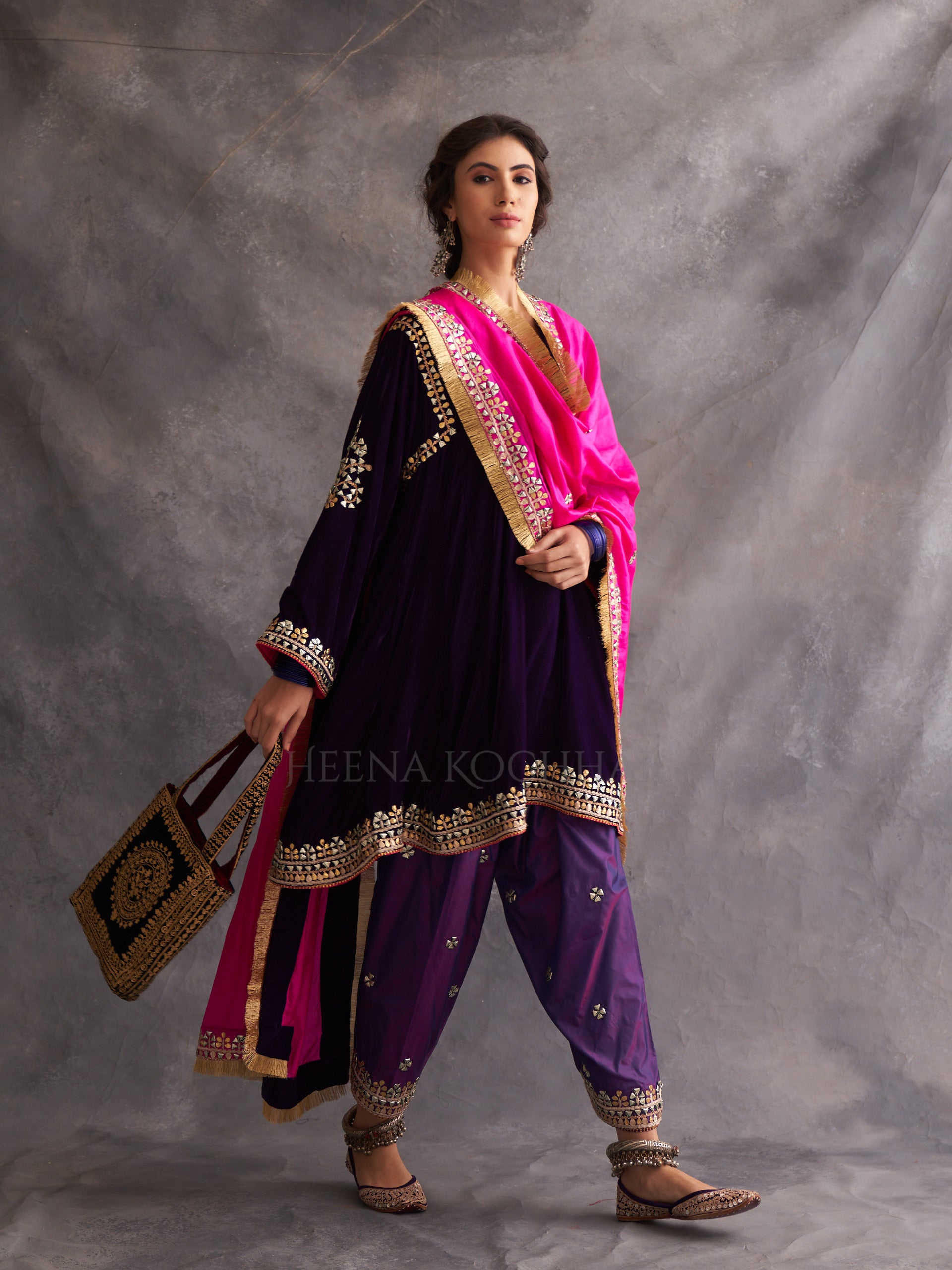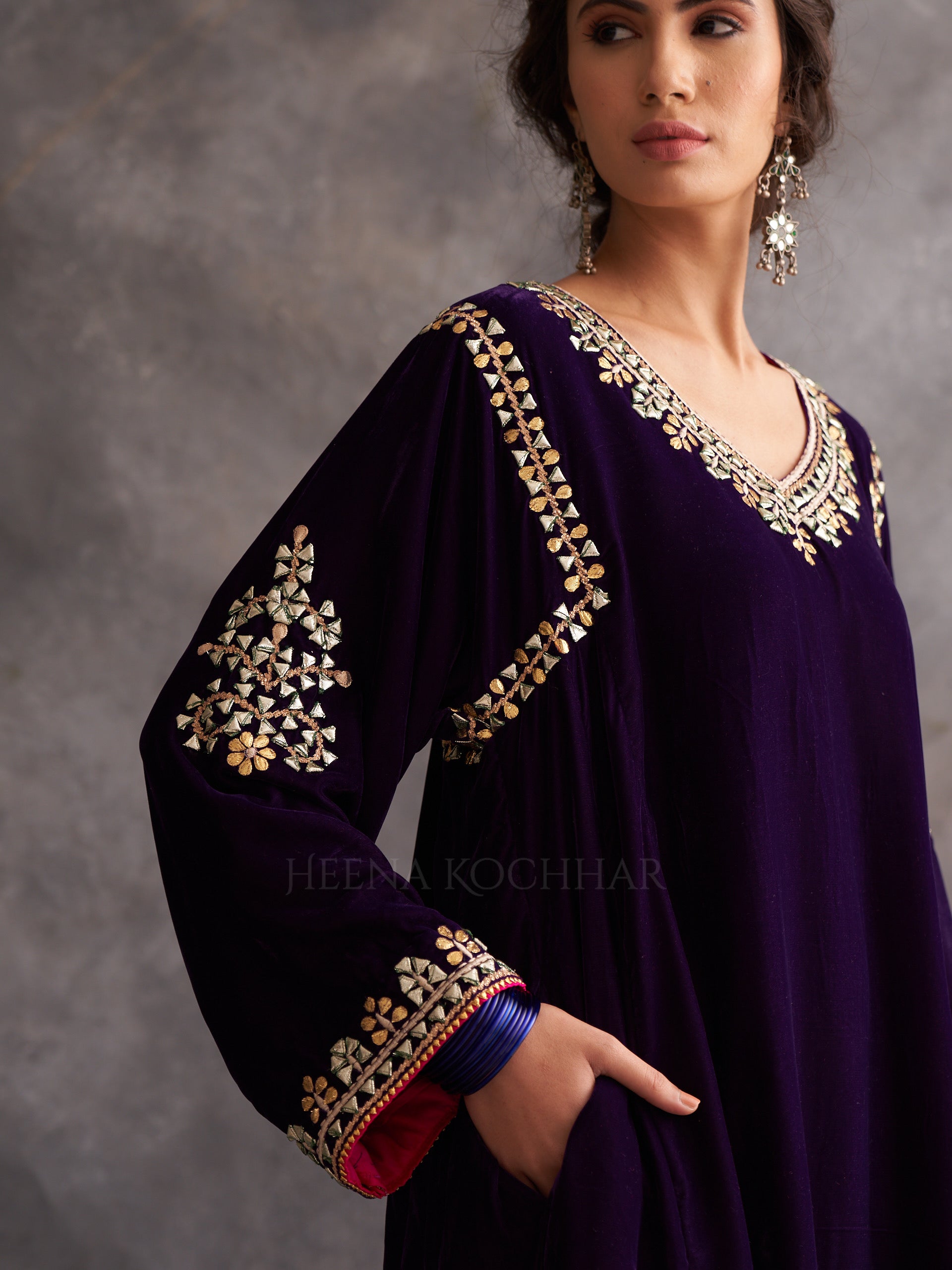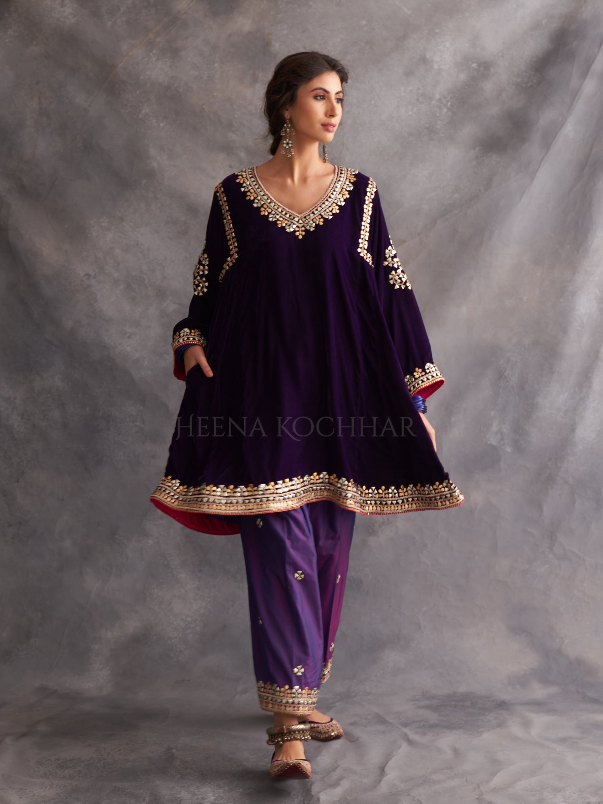 KURTA: Deep Purple Velvet Choga