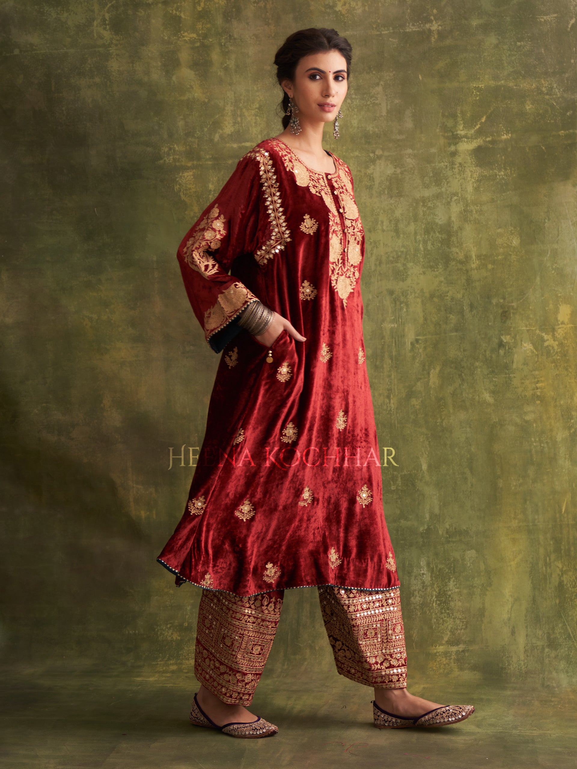 BOTTOM: Maroon Velvet Salwaar (you can specify length at checkout)