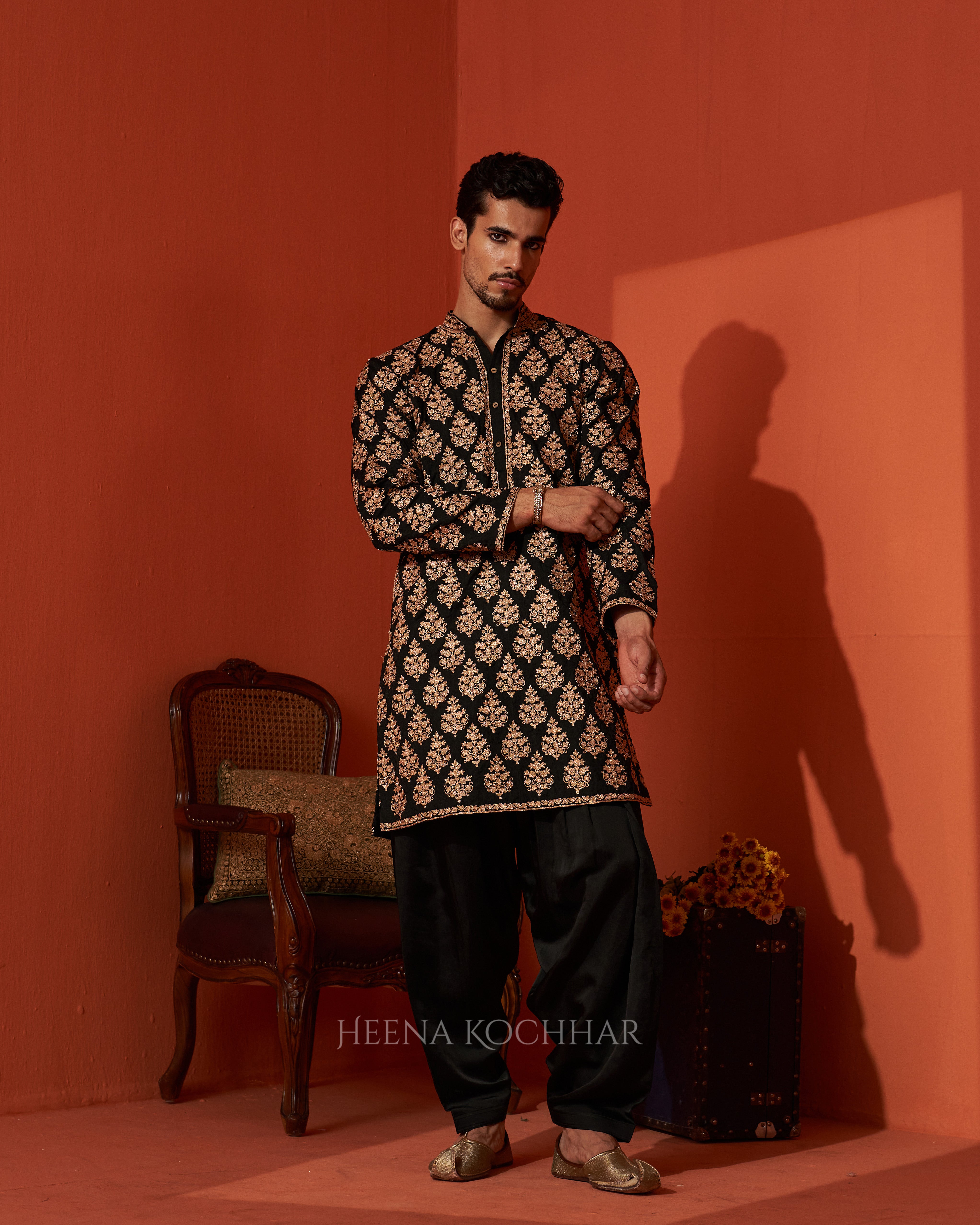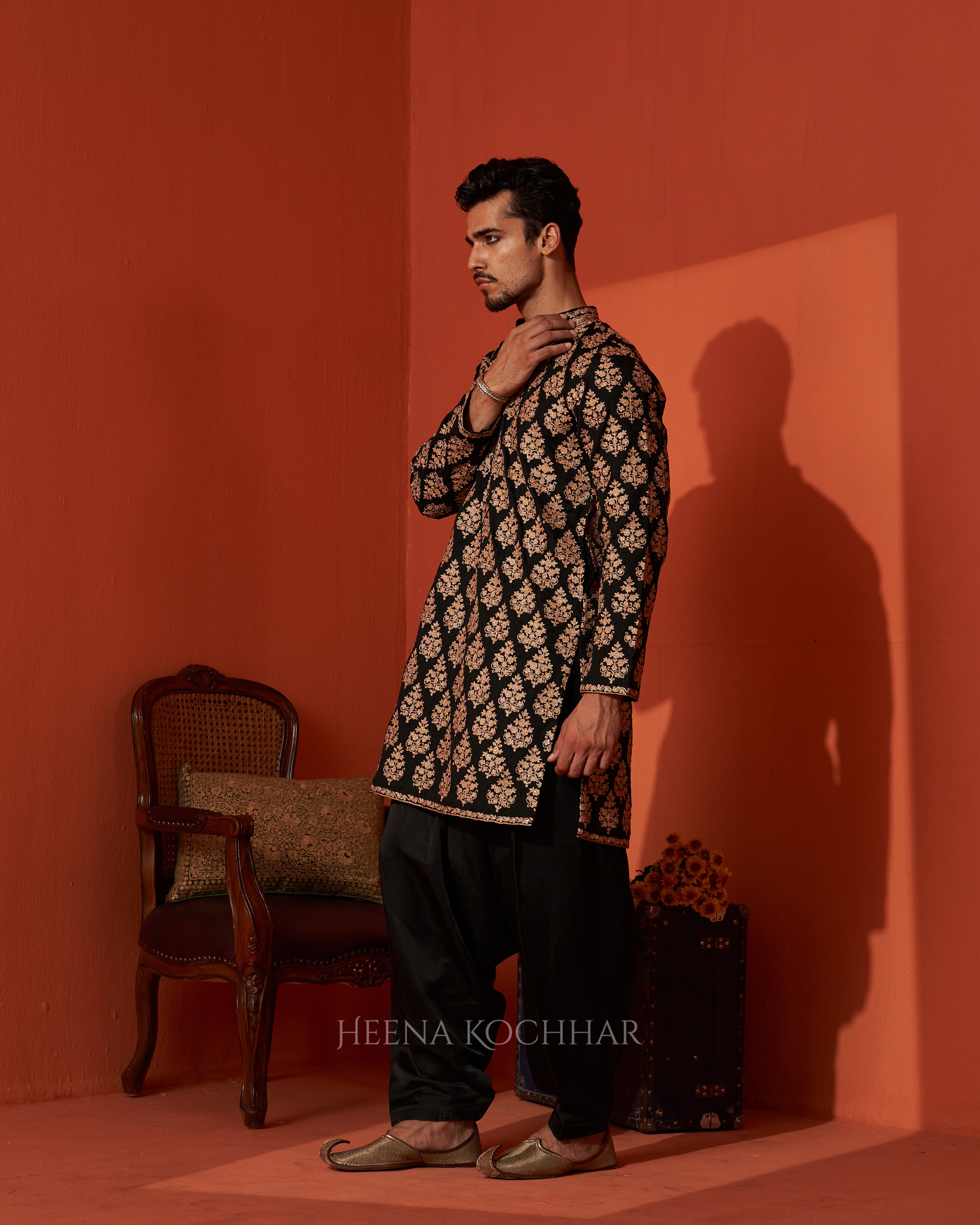 KURTA - Black Handloom Chanderi Kurta