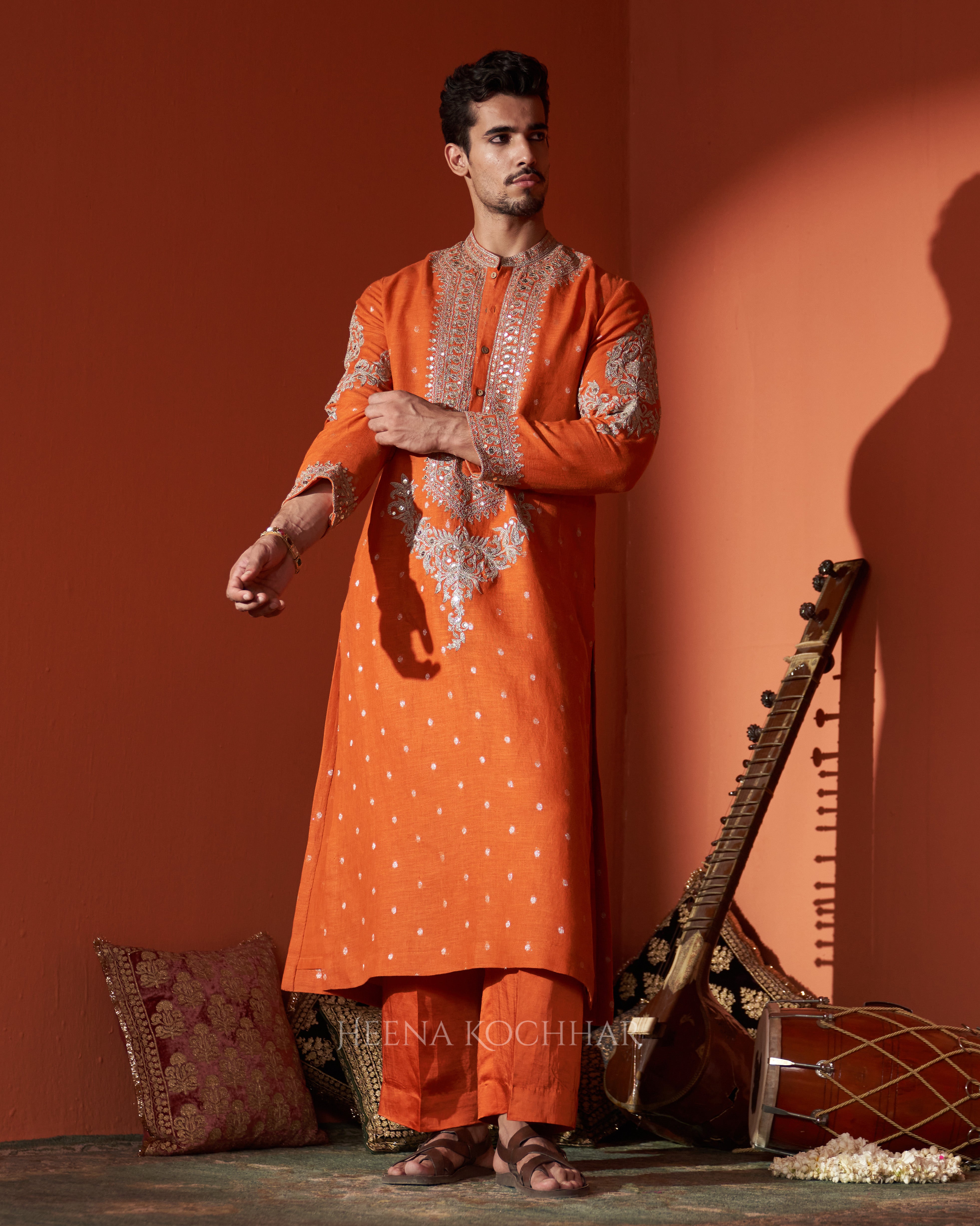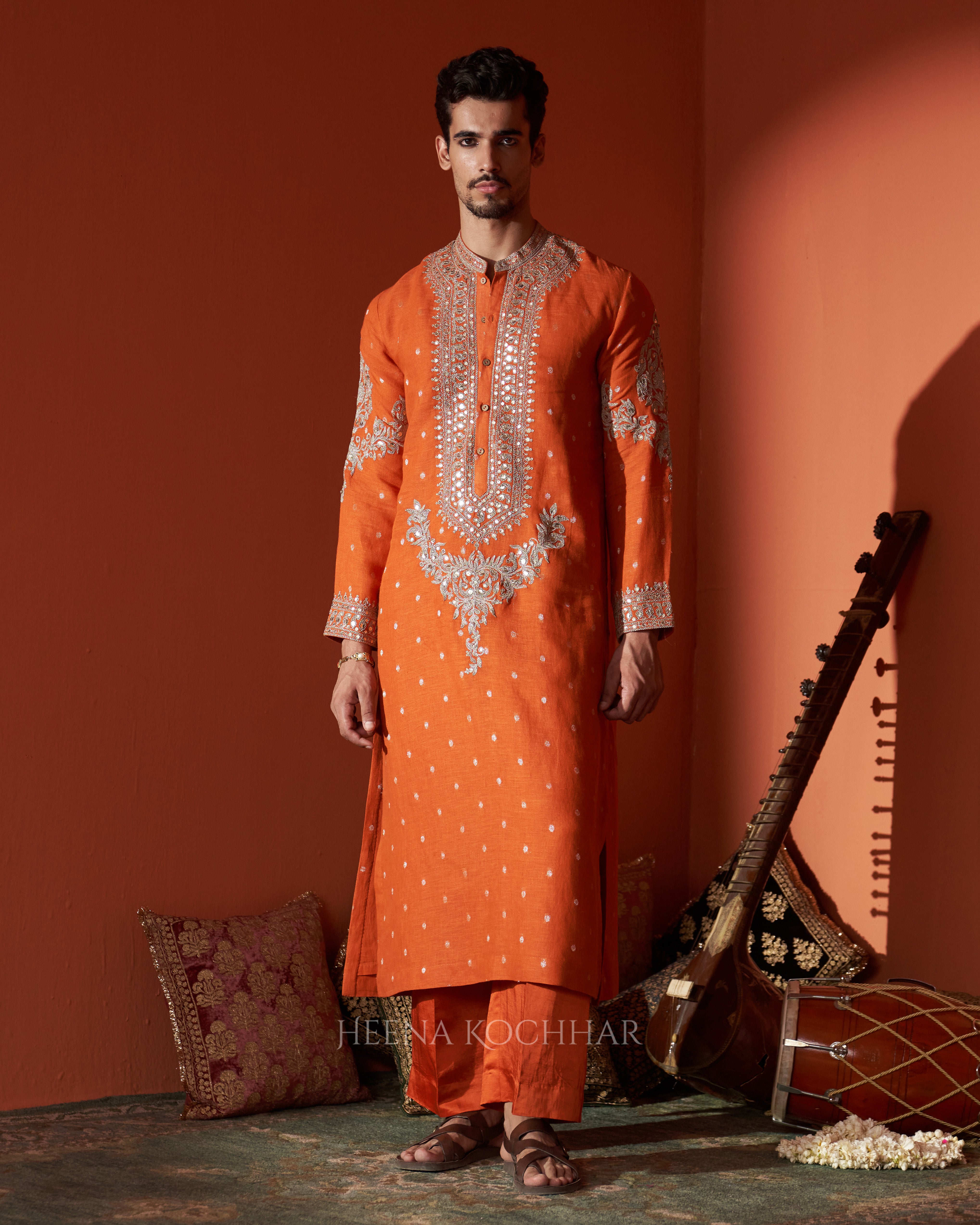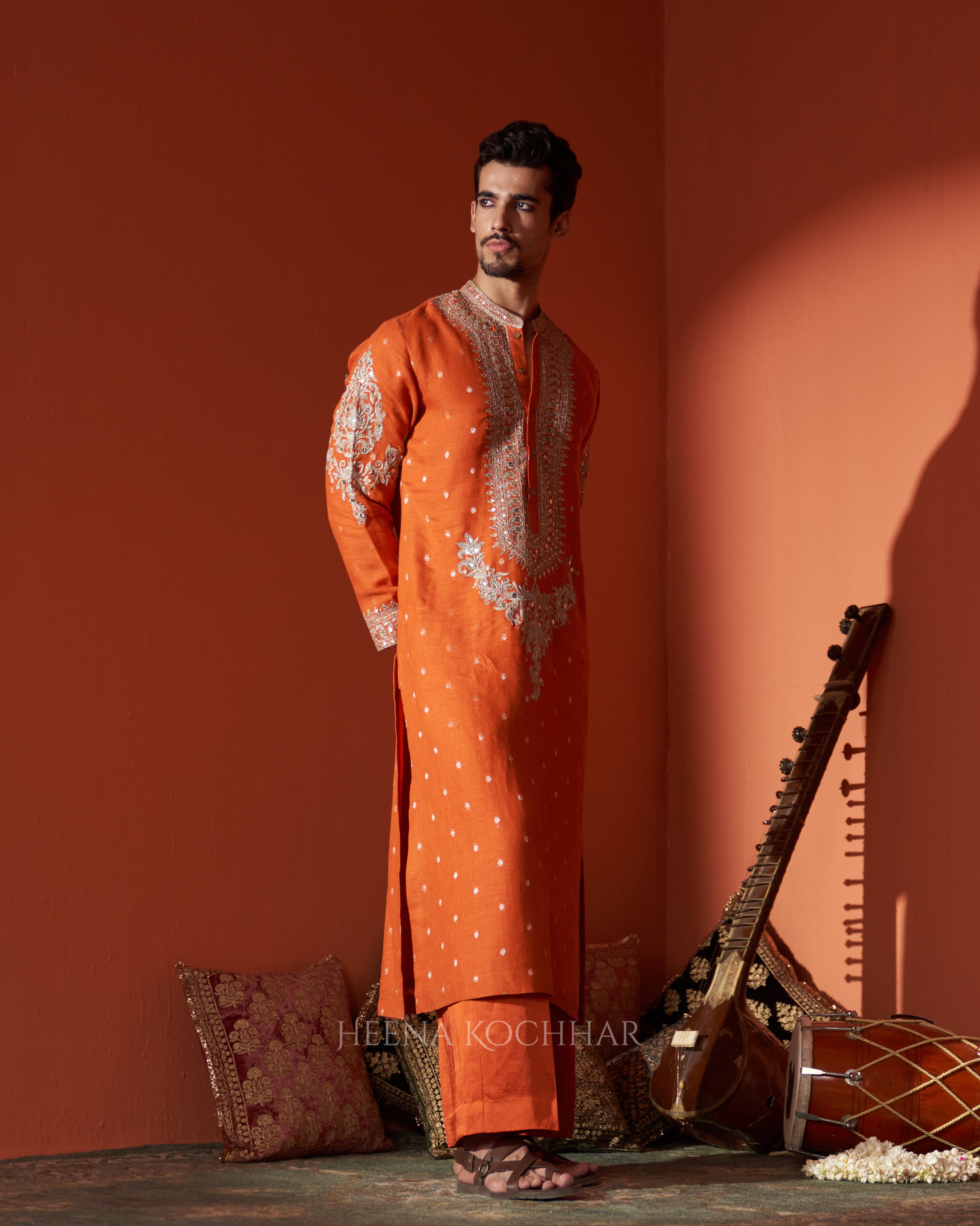 KURTA - Rust Zari Booti Linen