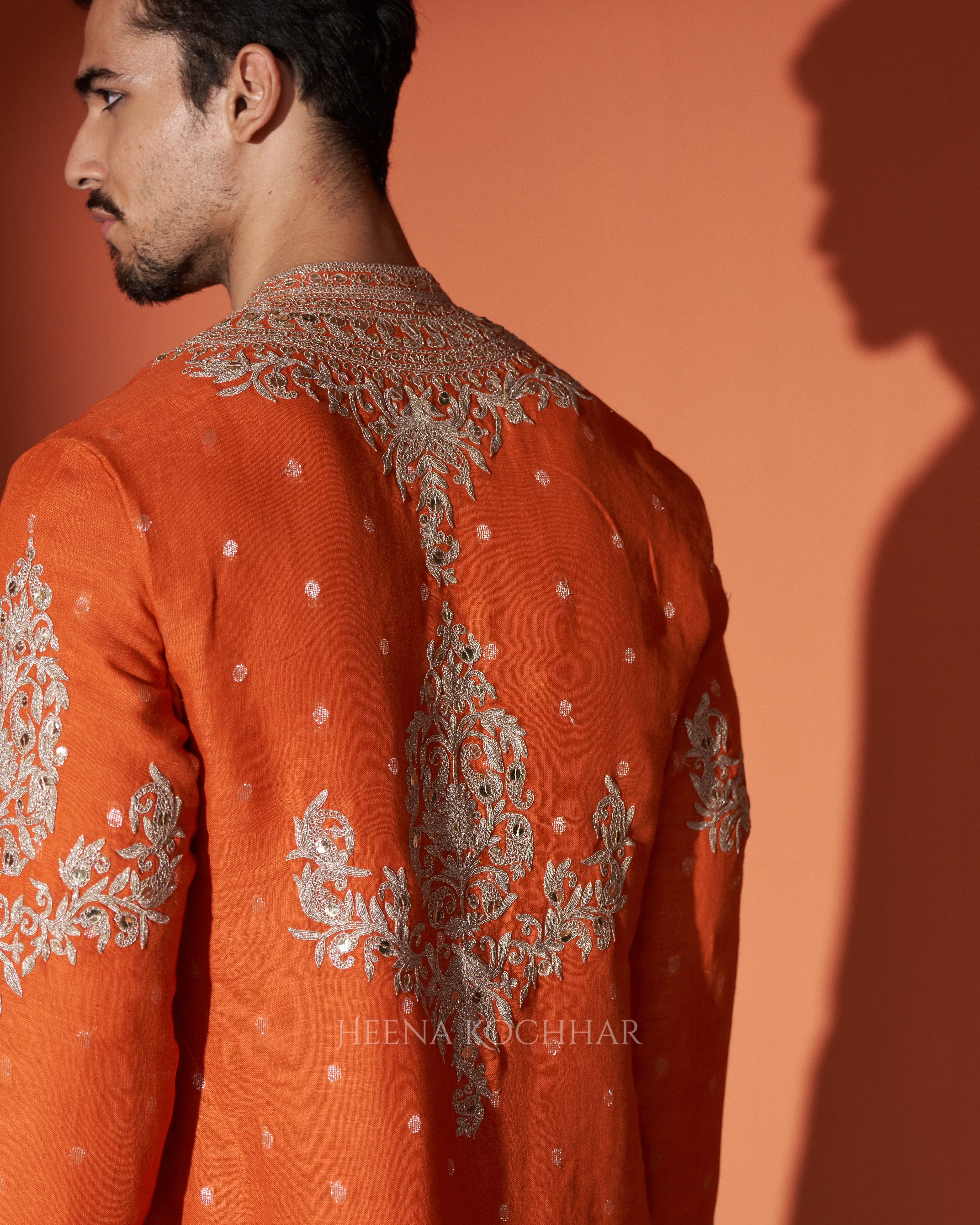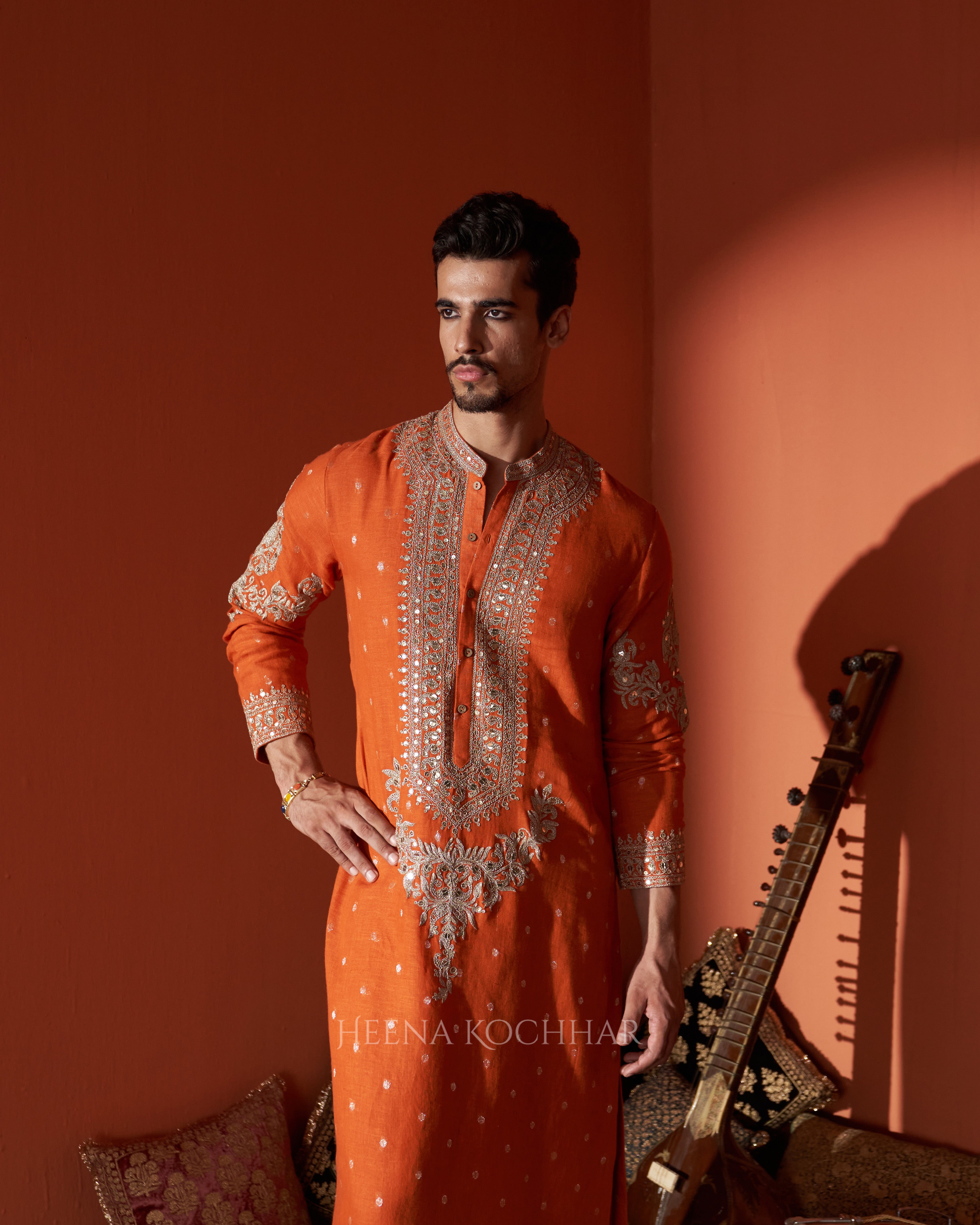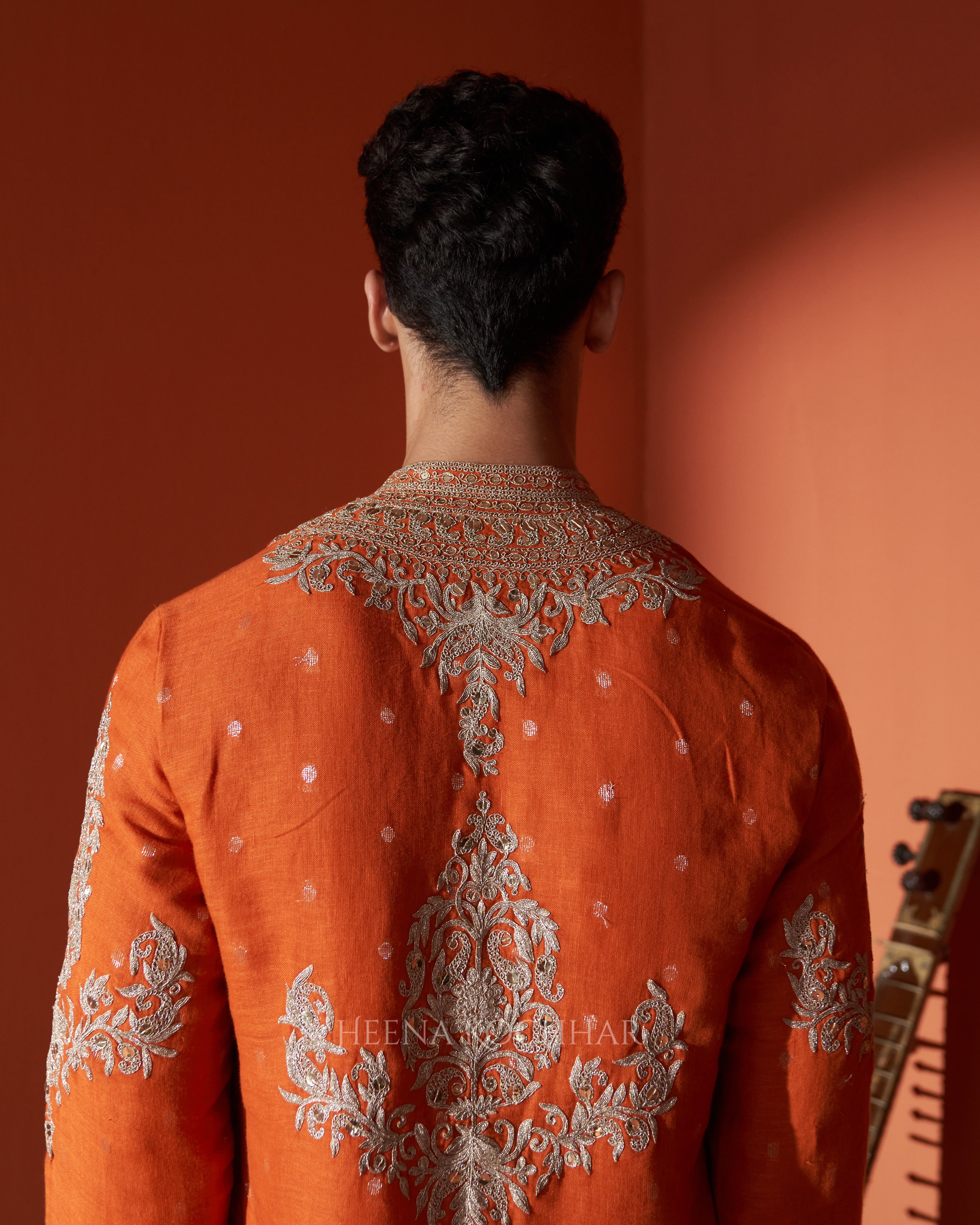 KURTA - Rust Zari Booti Linen